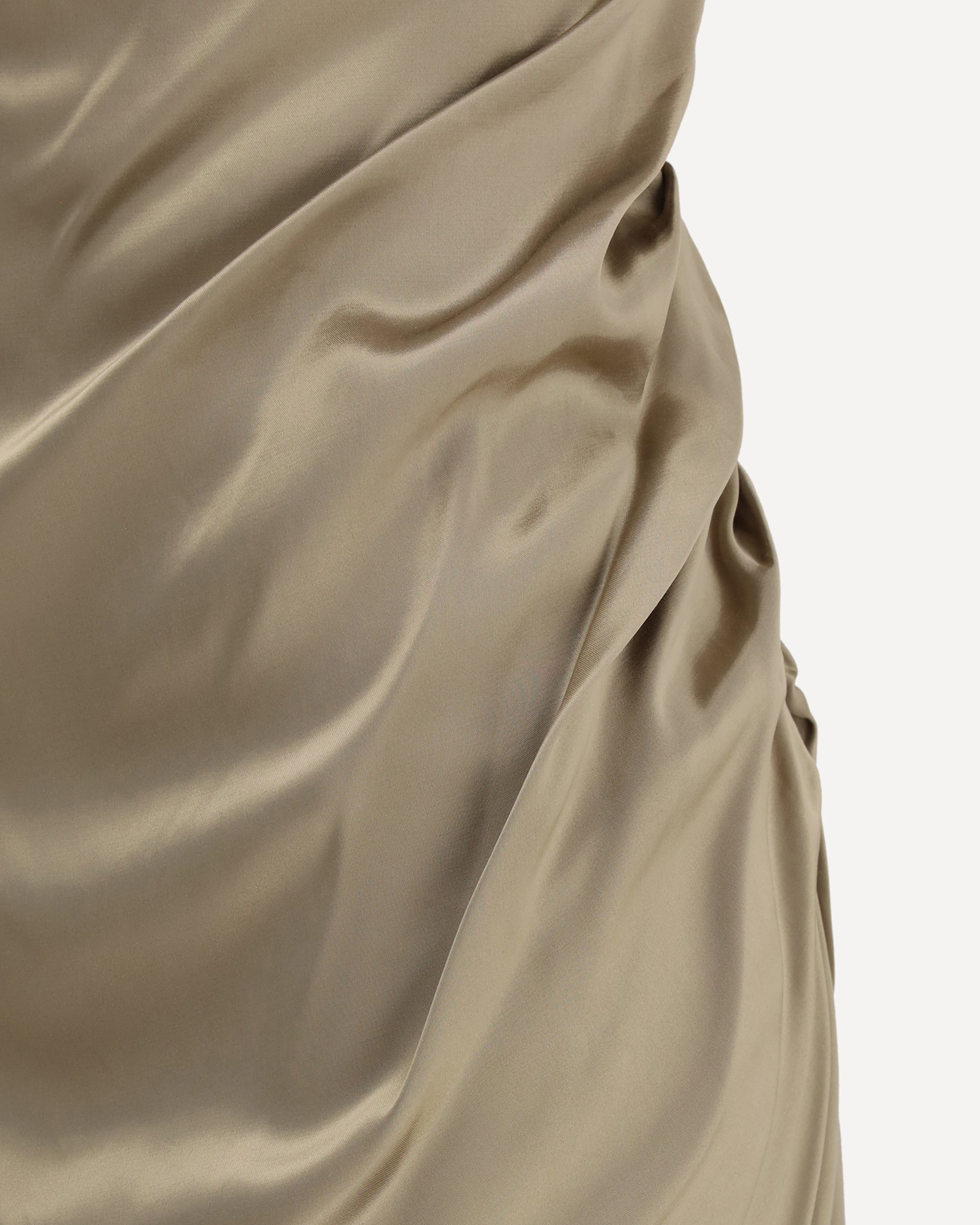 The Ginnie Pencil Long Dress by Vivienne Westwood is an elegant and sophisticated piece featuring a figure-flattering sleeveless design. The draped round neckline gives a fluid, sculptural effect, while the side zipper closure ensures a perfect fit. The satin finish adds brightness and a touch of luxury to the design.