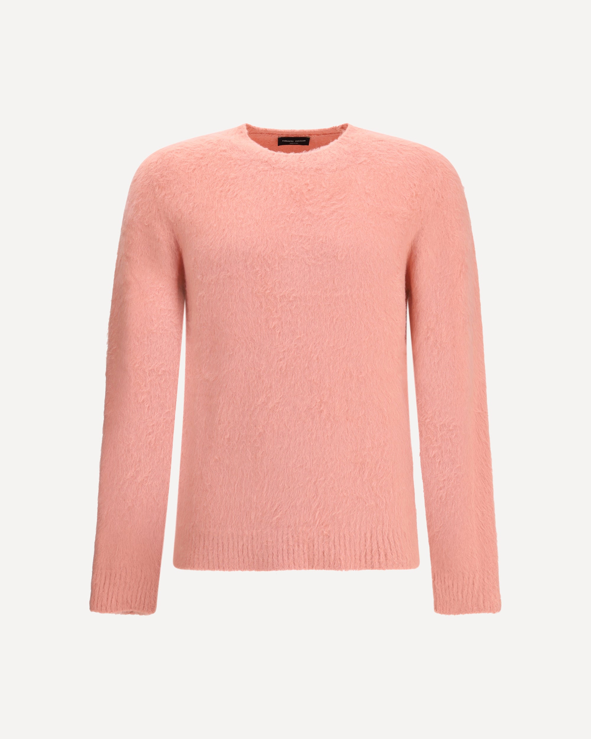 Roberto Collina's plush Effect Sweater is an enveloping garment with a contemporary character. Made with a soft and warm texture, it features a ribbed crew neck, hem and cuffs that define the silhouette with understated elegance. Ideal for adding comfort and style to winter looks.