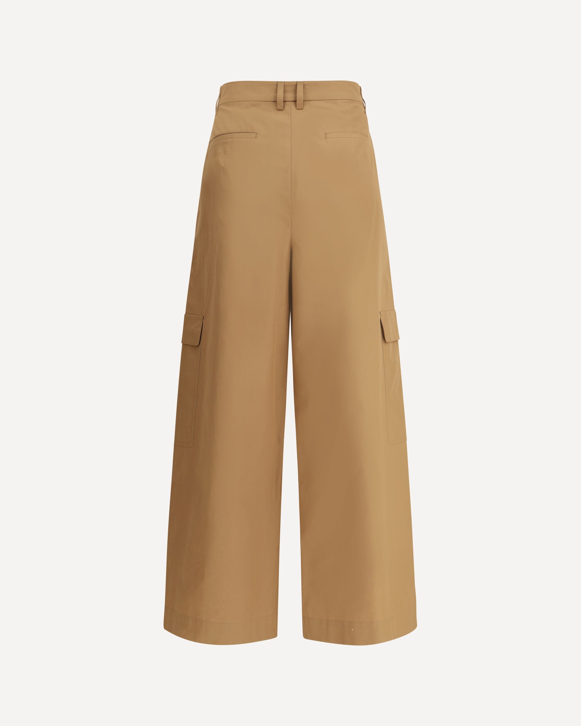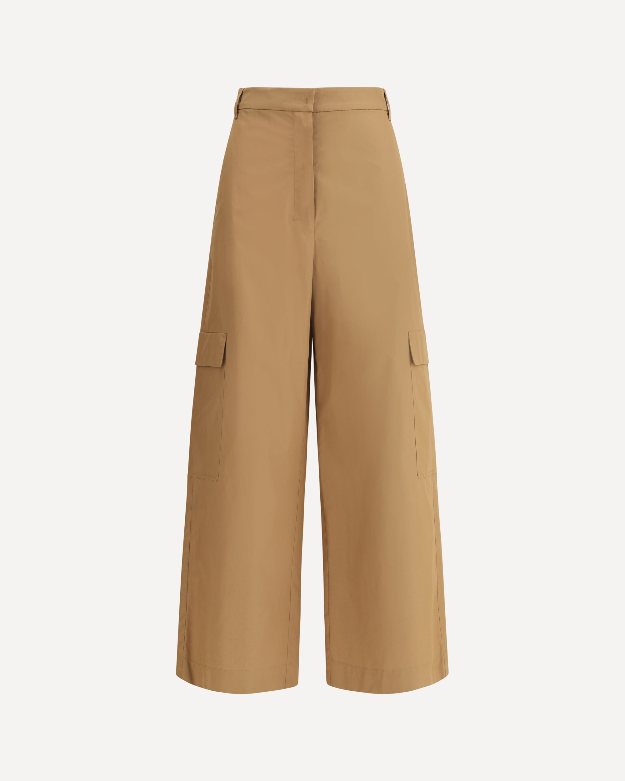 The Gloria cotton Pants by 'S Max Mara are a modern and functional style, with a wide-leg pattern that offers a loose and comfortable fit. The front closure features a zipper and hooks, adding a touch of elegance. The two side welt pockets and two back slit pockets offer practicality, while the two cargo pockets on the side panels further enhance the design with a stylish utilitarian detail.