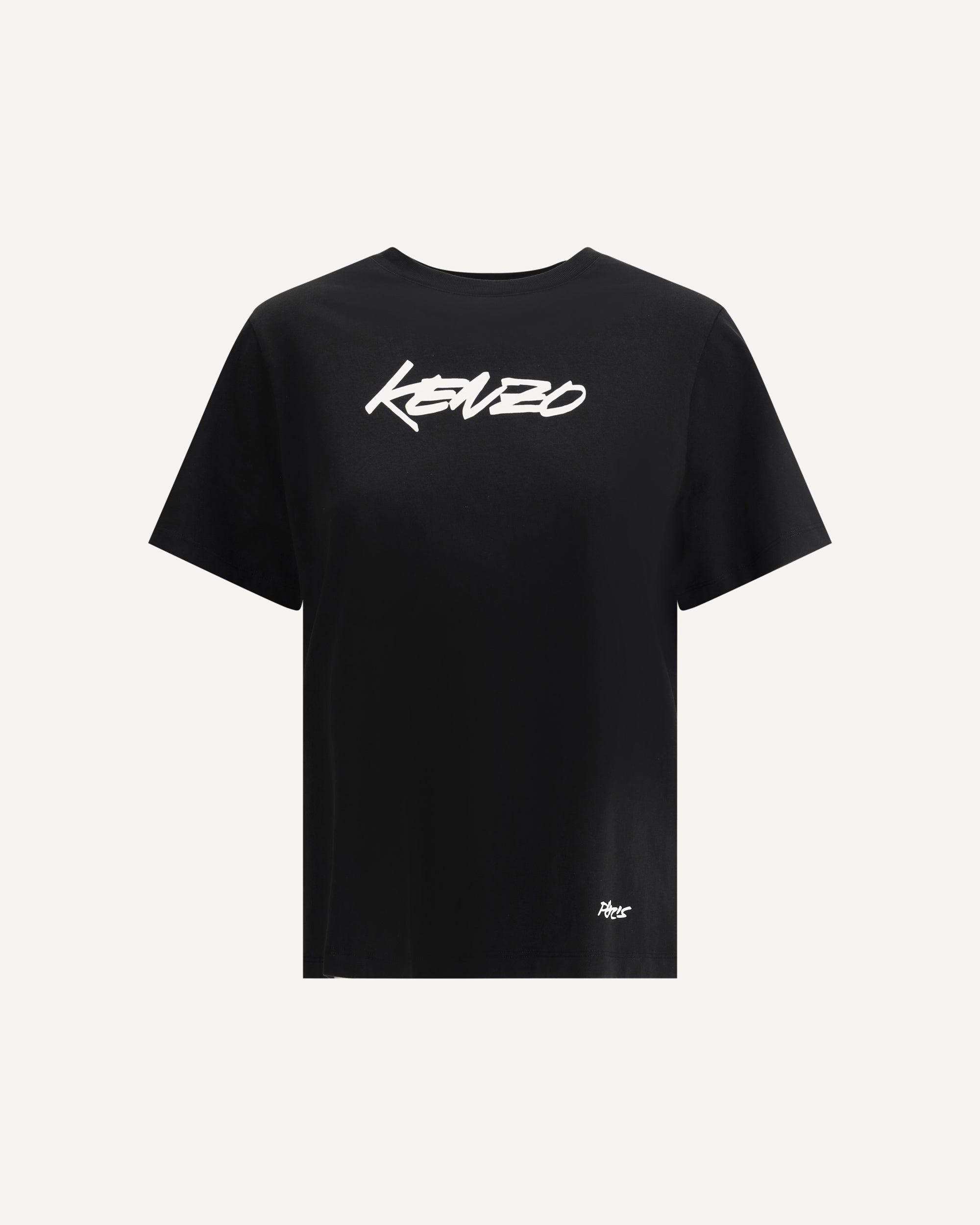 Kenzo's cotton T-Shirt is an essential garment with a strong character. Made from pure cotton, it features a ribbed crew neck that ensures comfort and durability. What makes it unique is the iconic Kenzo signature printed in contrast on the front and back, for a distinctive graphic touch that enhances even the simplest looks.