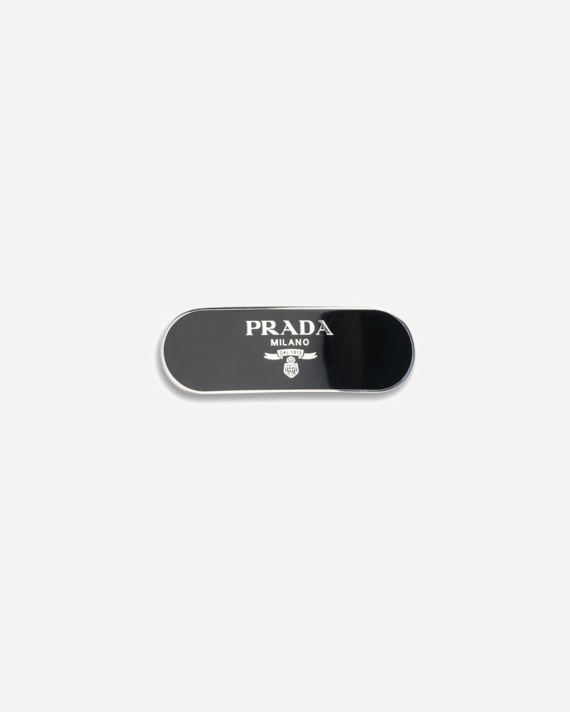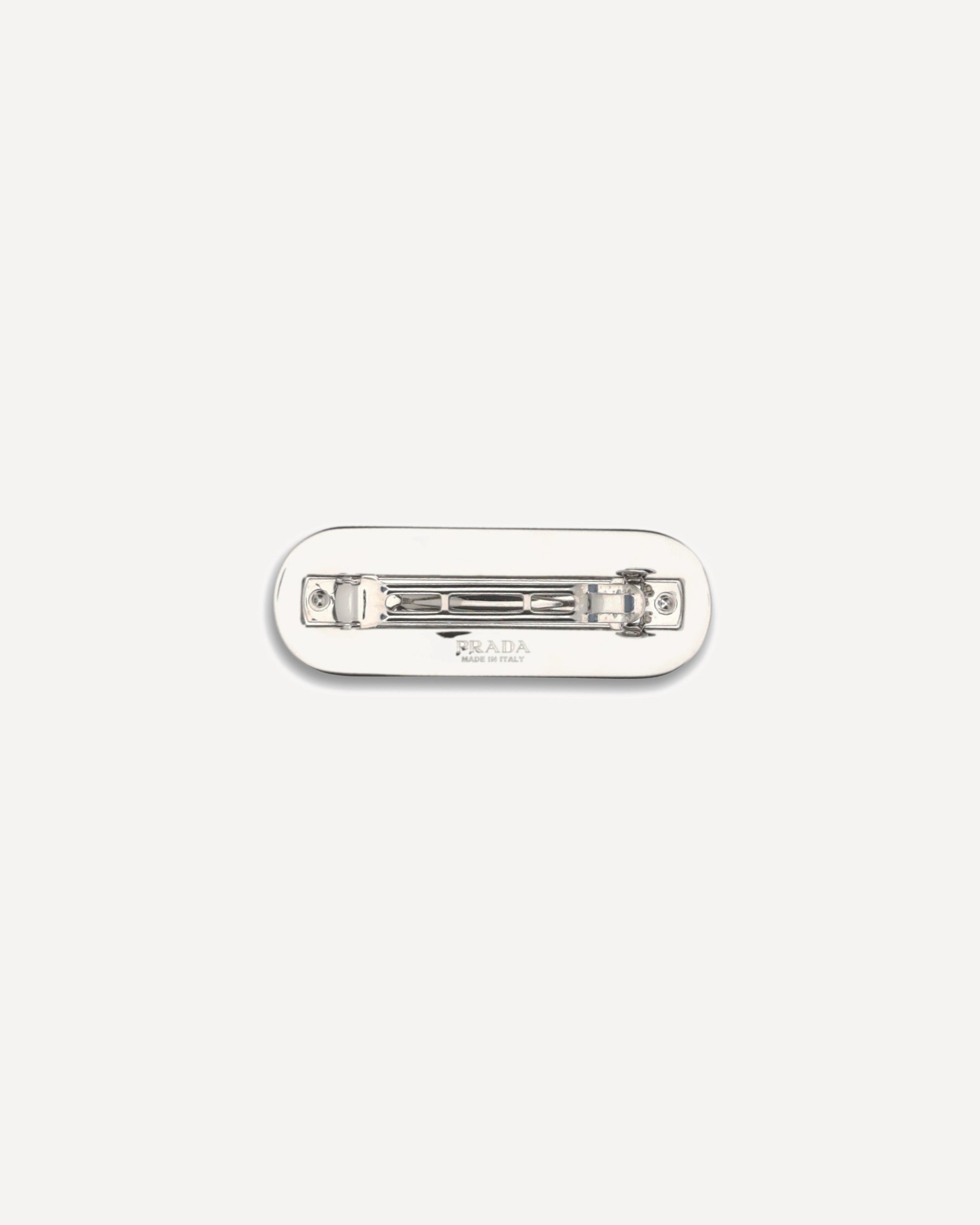 The Hair Clip by Prada is an elegant and understated accessory, featuring an essential yet sophisticated design. The contrasting lettering logo embellishes the clip, adding a distinctive and modern touch. The clip closure ensures a secure hold, while the enameled logo lends a luxurious detail. Made from hypoallergenic and Nickel free materials, it is designed to offer comfort and security, making it a refined accessory for those seeking uncompromising style.