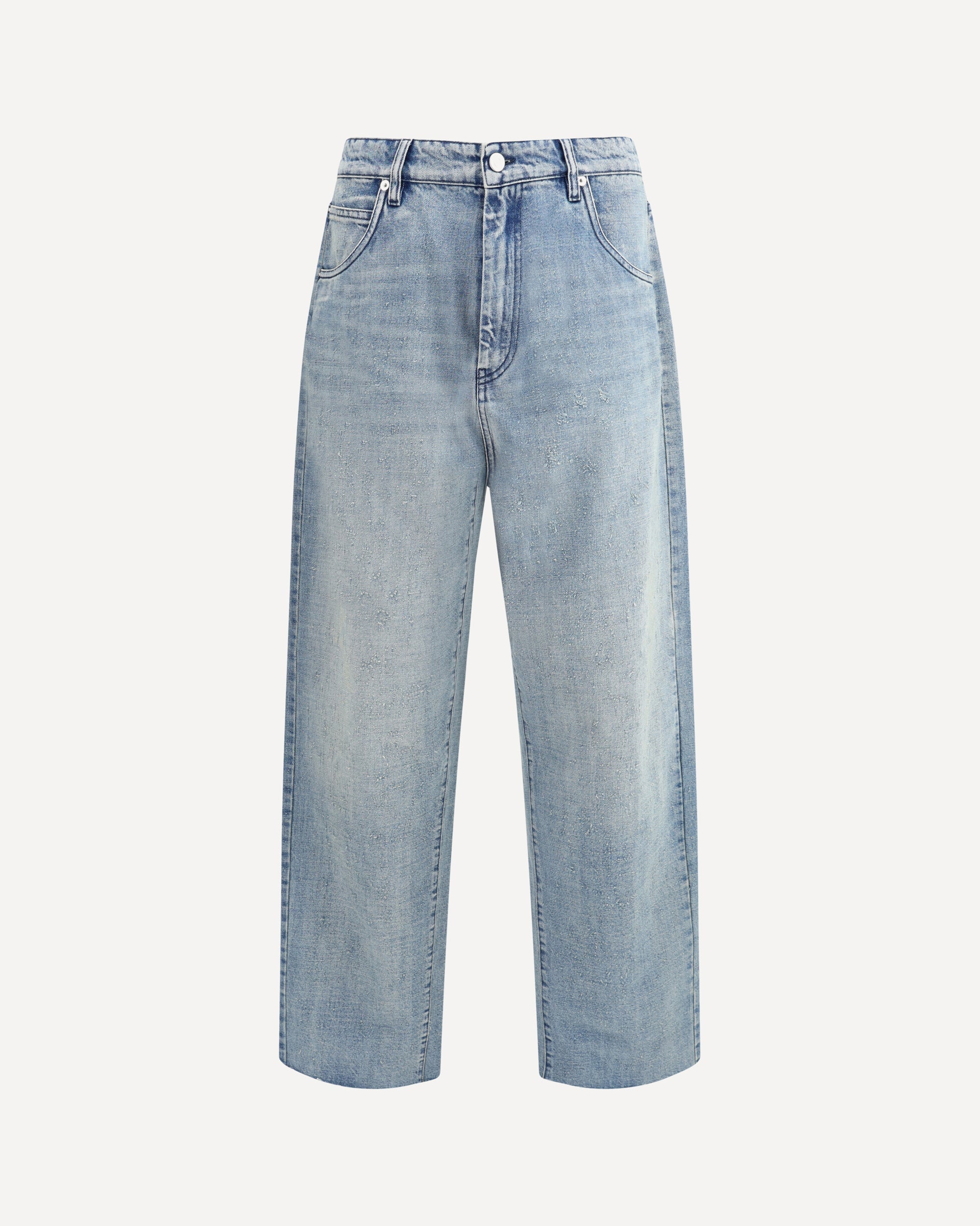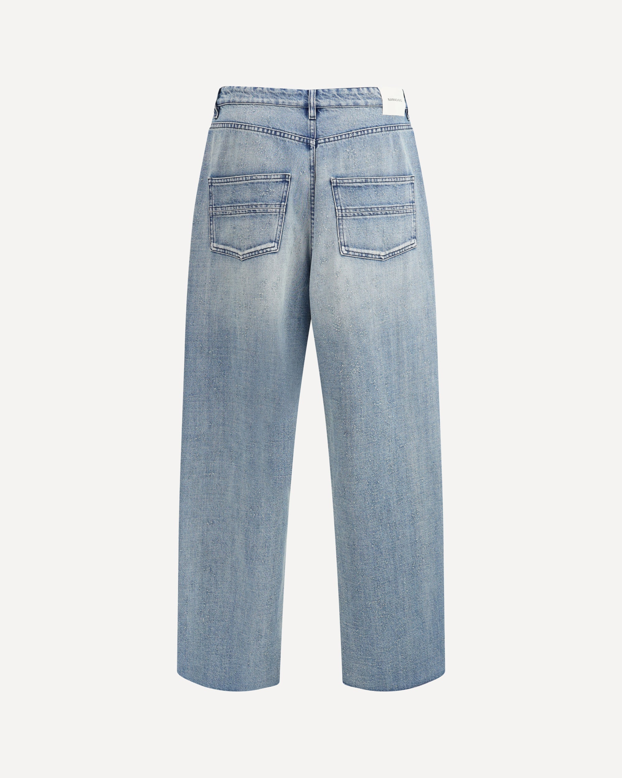 Namacheko's cotton Hand Pilled Jeans are a garment with an urban, contemporary look. The baggy style offers a relaxed, comfortable fit with a classic five-pocket design. Zipper-and-button front closure and belt loops at the waist add functionality. The brand's iconic monogram patch applied to the back lends a distinctive touch.