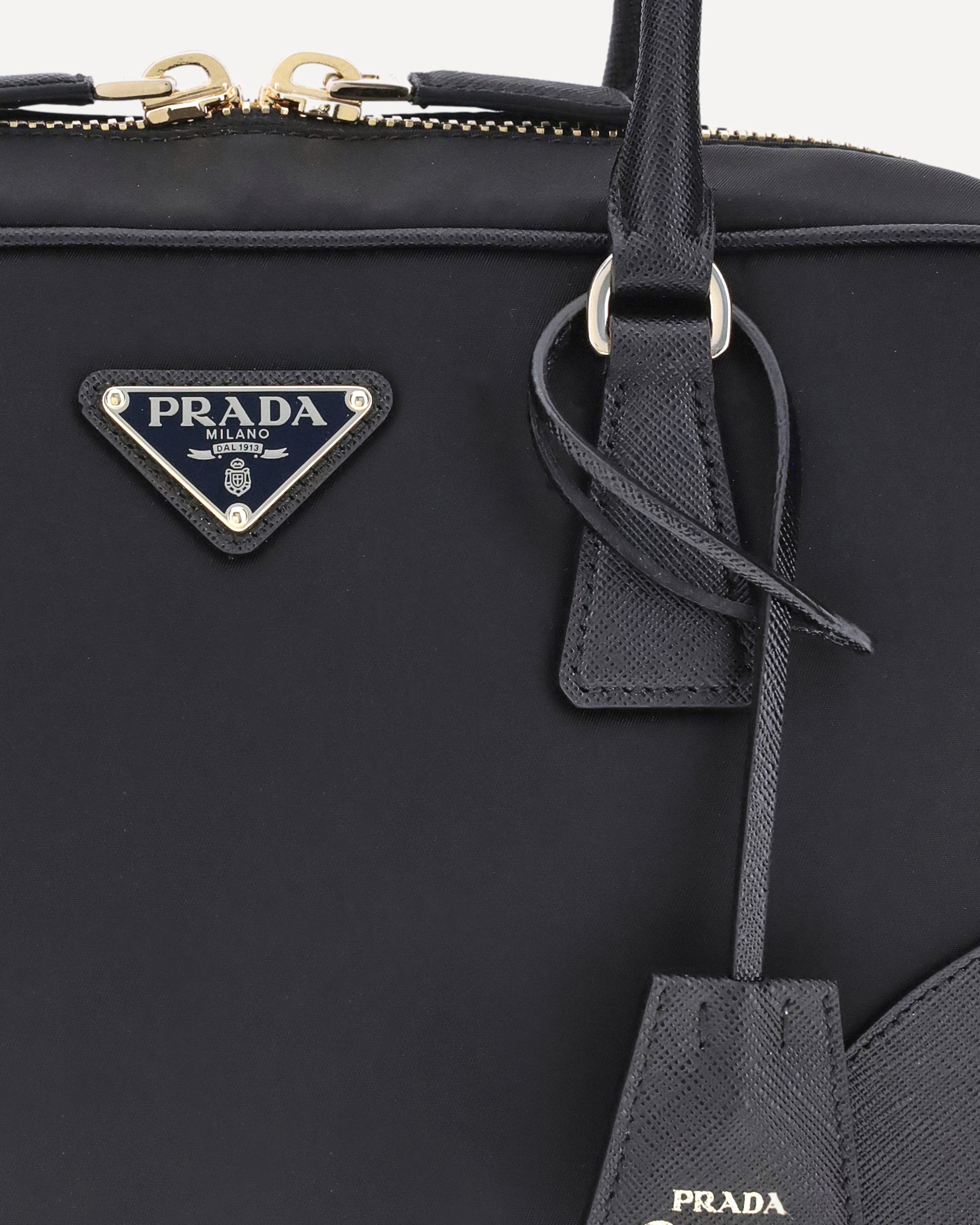 The Prada Re-Nylon Handbag combines sustainability and style in an essential and contemporary design. Made from the innovative Re-Nylon fabric, it features a defined and clean geometric silhouette. The double-slider zip closure ensures practicality, while the two tubular handles on the top offer comfortable and elegant portability. The iconic enameled triangular plaque with the brand's signature stands out on the front, an unmistakable symbol of Prada. The interior, with a single compartment, is designed to contain the essentials with order and refinement.