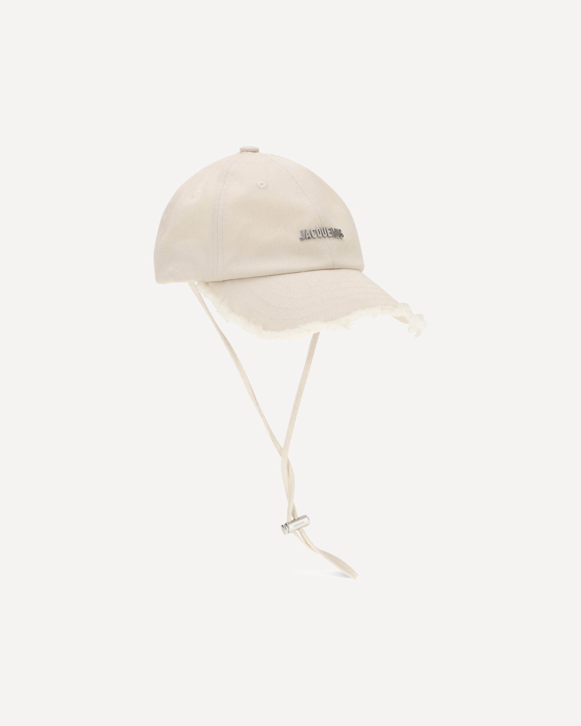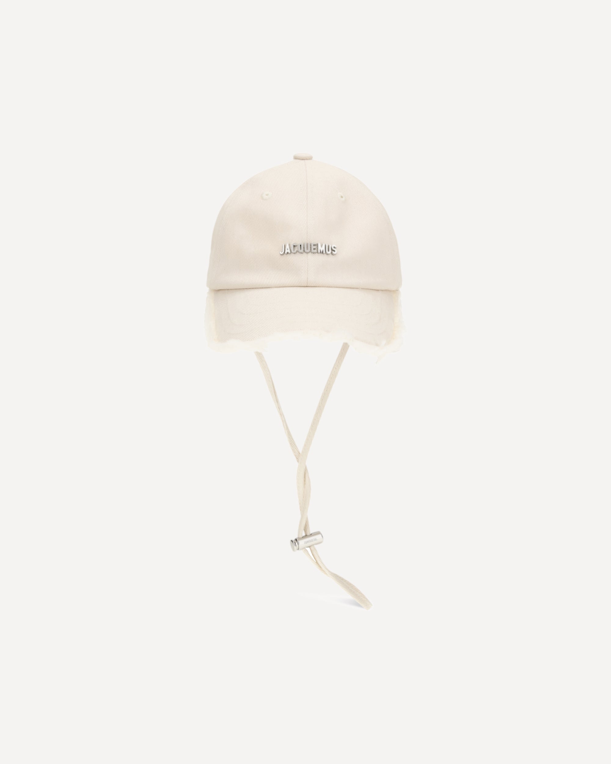 The La Casquette Artichaut Hat by Jacquemus is a fresh and refined accessory, made from pure cotton to ensure comfort and lightness. The brim, with topstitching and frayed edges, adds a touch of character, while the metal lettering logo enhances its minimalist and modern design. The adjustable strap allows for a personalized fit, making it ideal for completing any summer look with style.