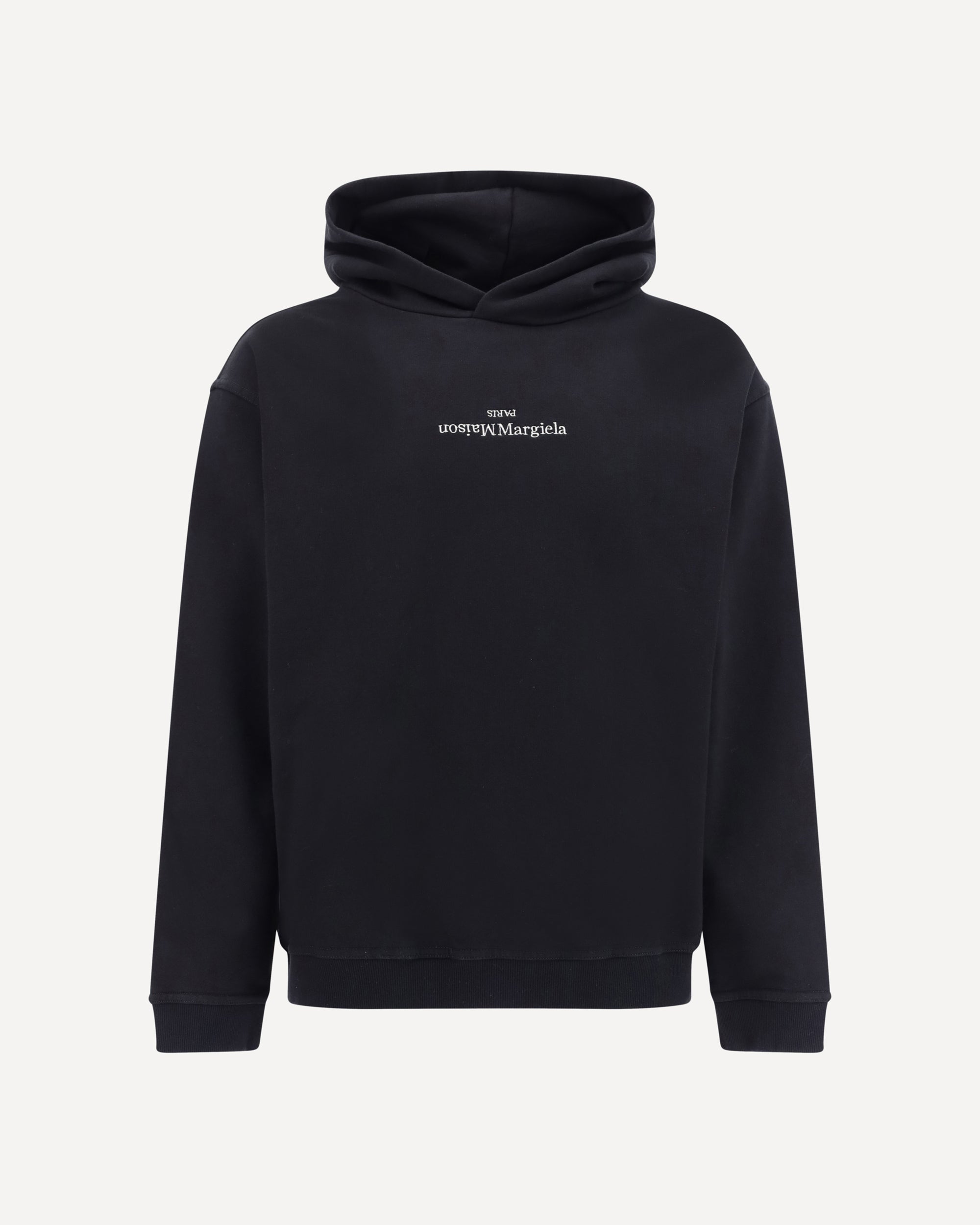 Cotton Hoodie by Maison Margiela, adjustable drawstring hoodie, ribbed cuffs and bottom hem, embroided logo on front, oversize fit.