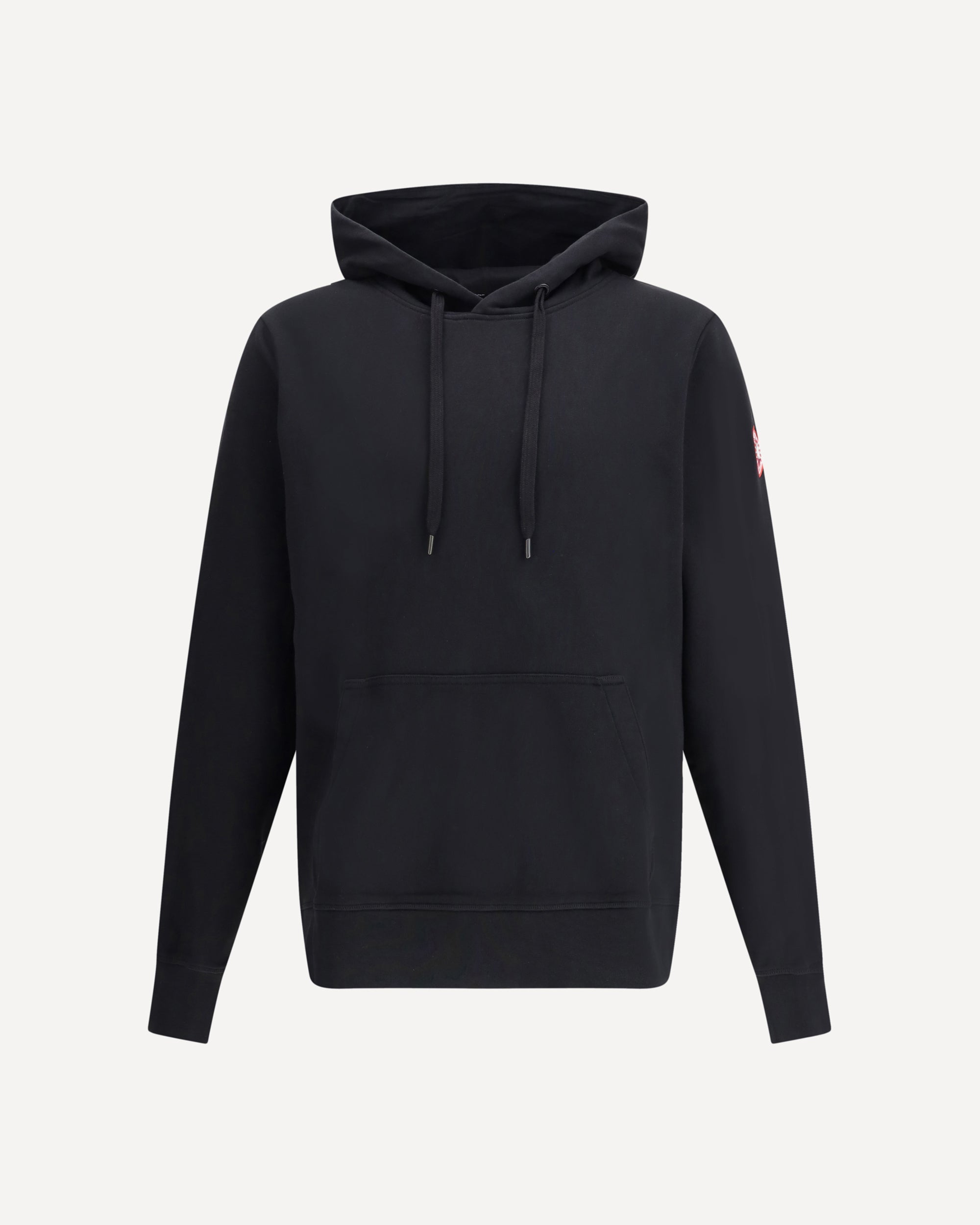 Soft cotton Huron Hoodie by Canada Goose features an adjustable drawstring hood and pouch pocket on the front. It features ribbed cuffs and hem for a comfortable fit and a logo patch applied to the left sleeve, which adds a distinctive touch to the garment.