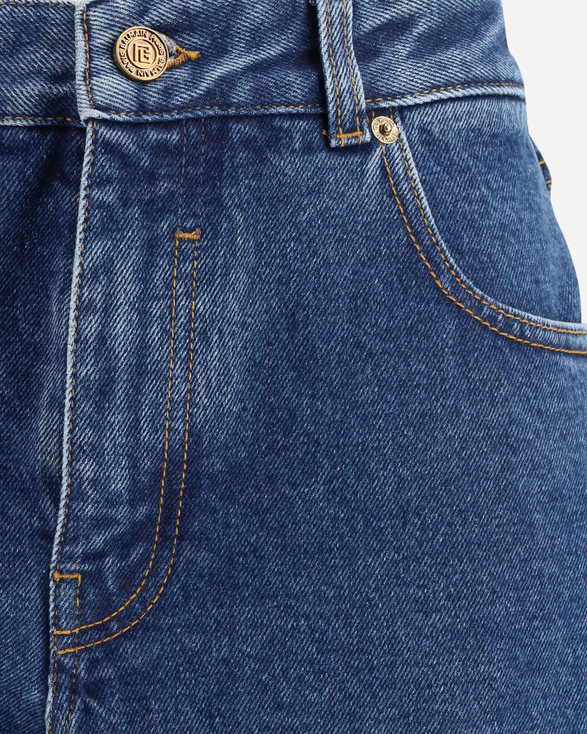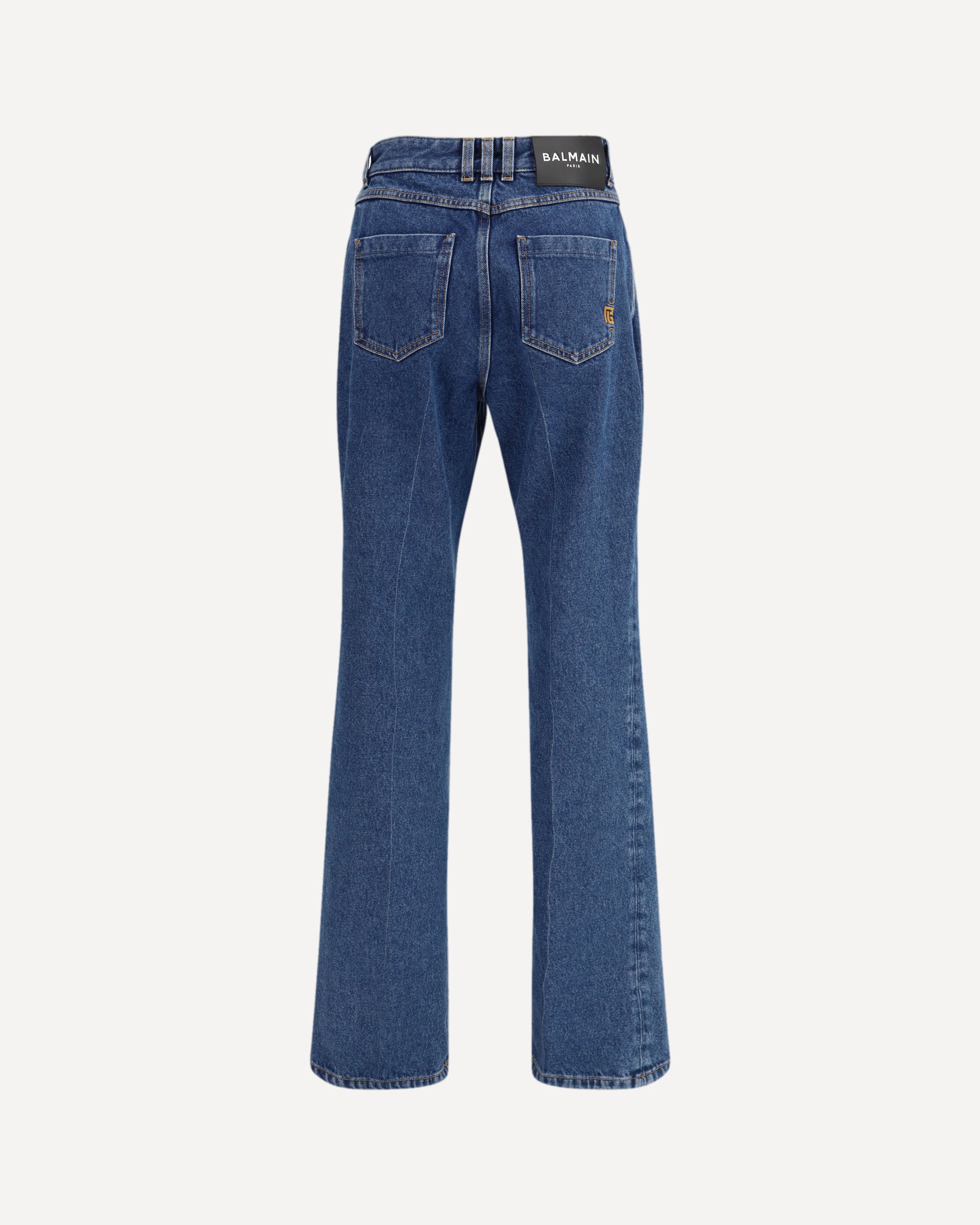 The Straight-leg Jeans by Balmain, featuring the classic five-pocket construction and belt loops at the waist. The zip fly with the “PB Balmain” button adds a signature accent, while the PB embroidery on the back pocket and the leather label with “Balmain Paris” print refine the look. The straight fit delivers a clean, timeless silhouette.