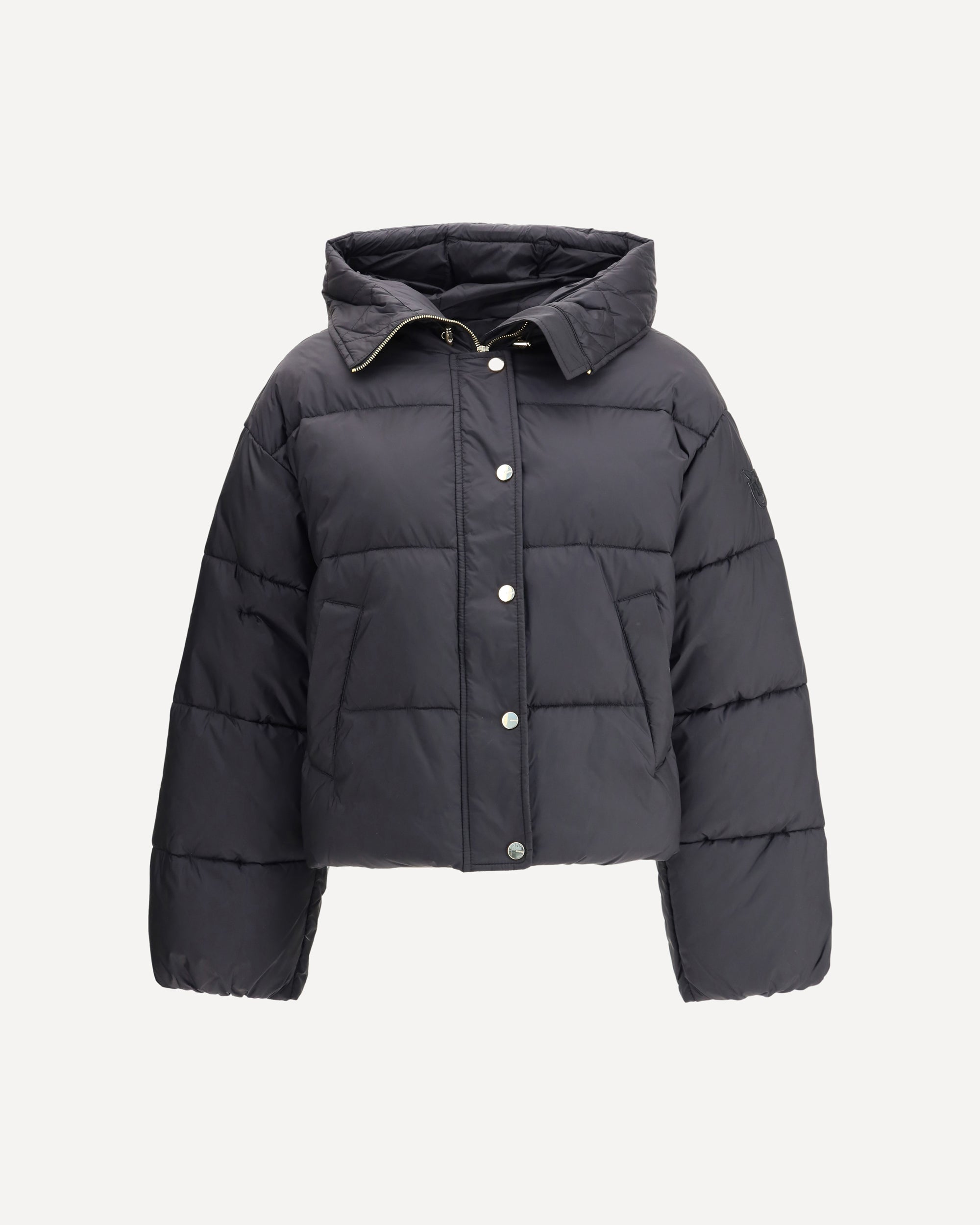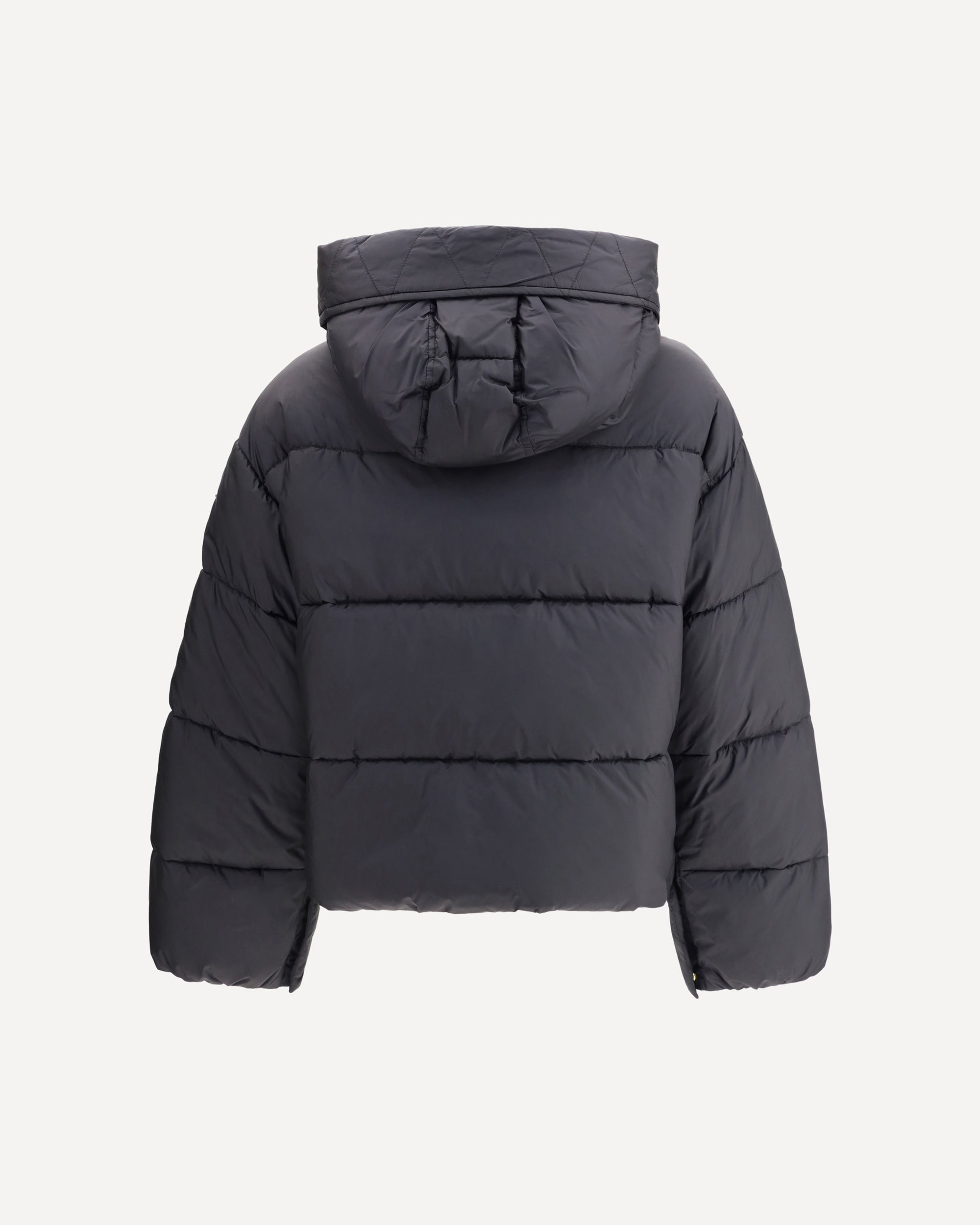 The Padded Down Jacket by Pinko is a short model with a quilted design, designed to combine comfort and style. Equipped with an adjustable hood, it features a front zipper and button closure, complemented by two practical side pockets for an urban and functional look.