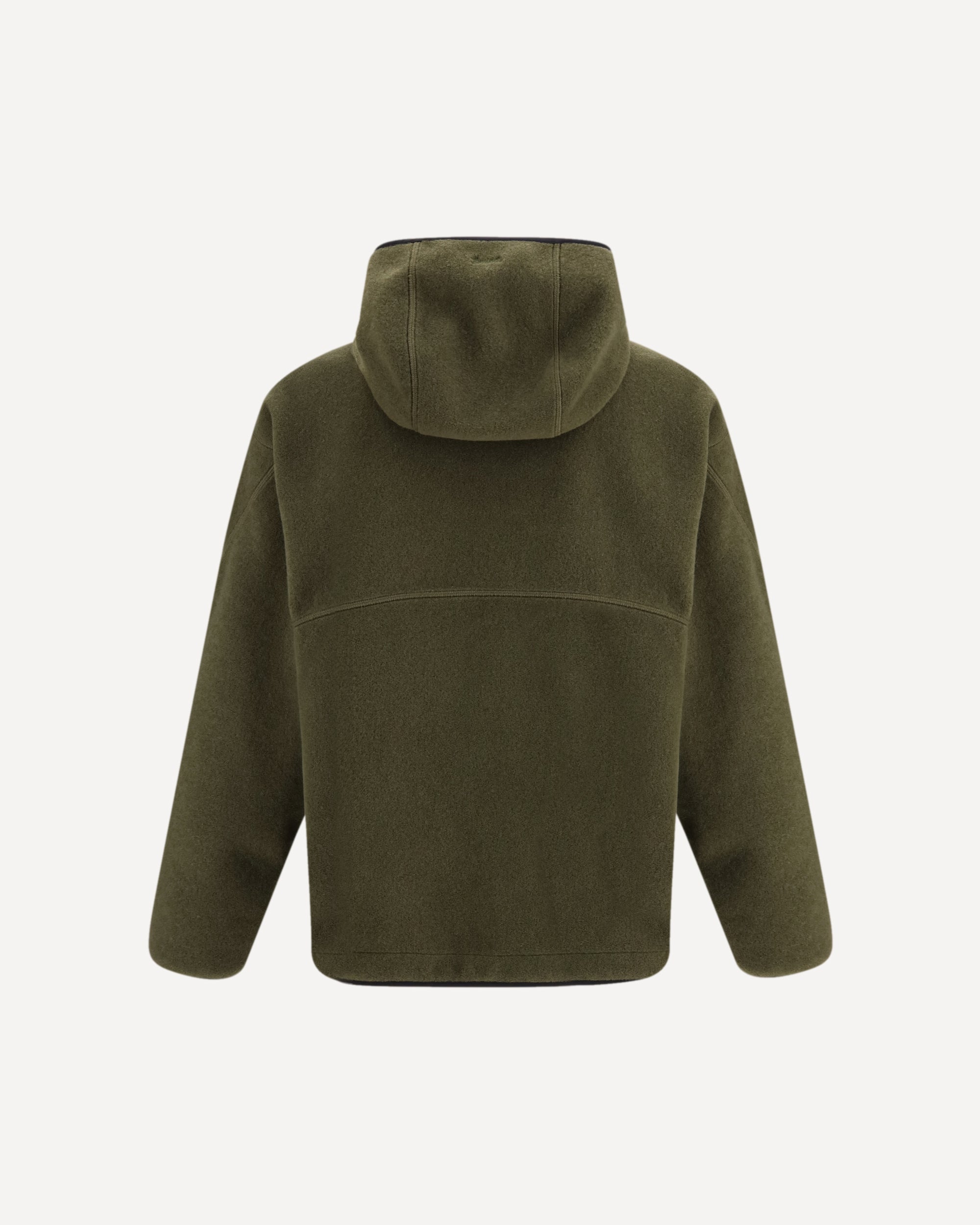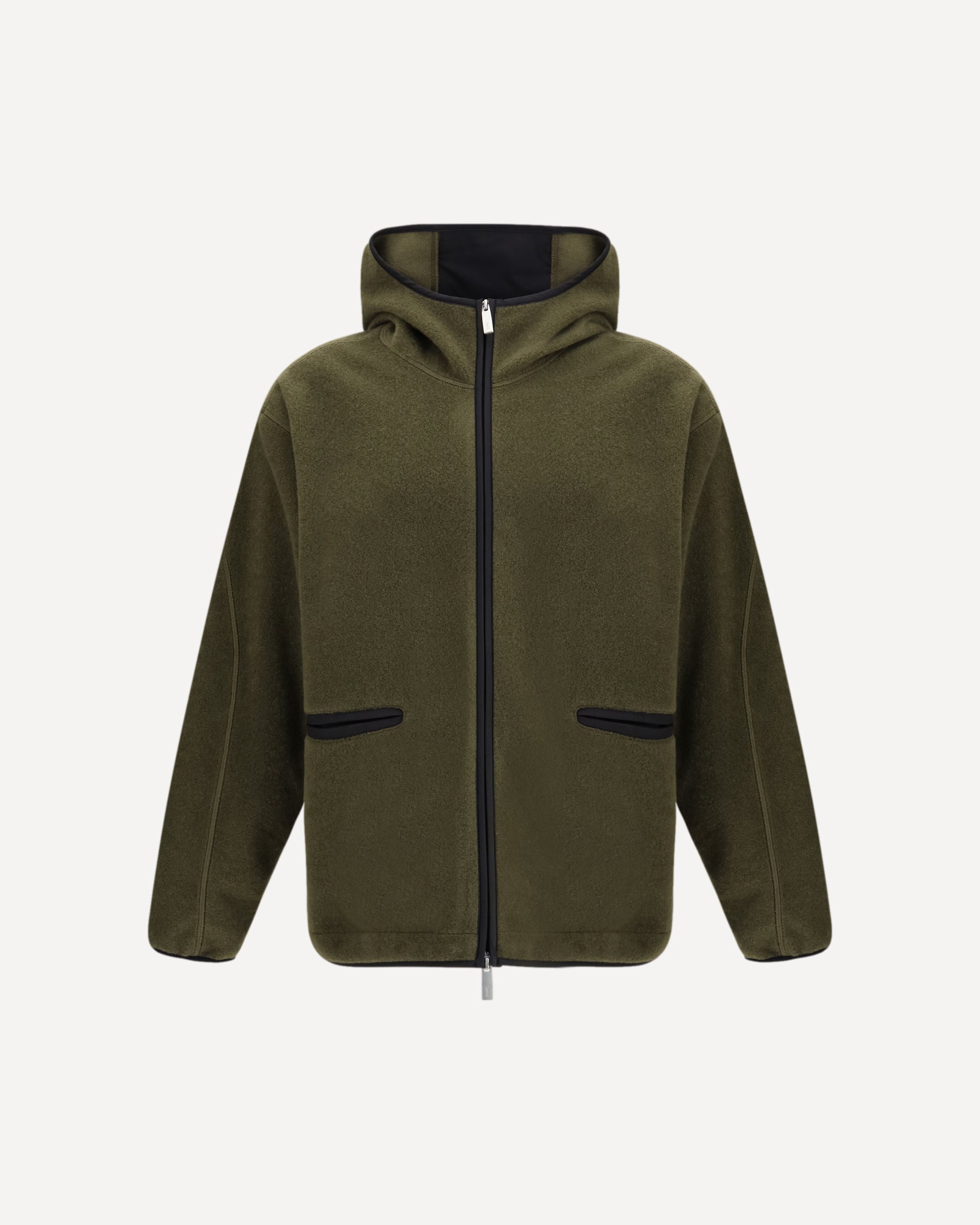 The Hoodie in polar fleece and extra light stretch padded by Laminar combines light warmth and functionality, expressing the brand’s identity through a soft yet technical construction. The fleece-effect fabric offers a warm feel, complemented by new-generation super-matte polyester details. The high collar with hood provides protection, while zipped pockets, double-slider fastening and side drawstrings enhance practicality. The relaxed fit shapes a clean silhouette designed for movement and a functional, contemporary look.