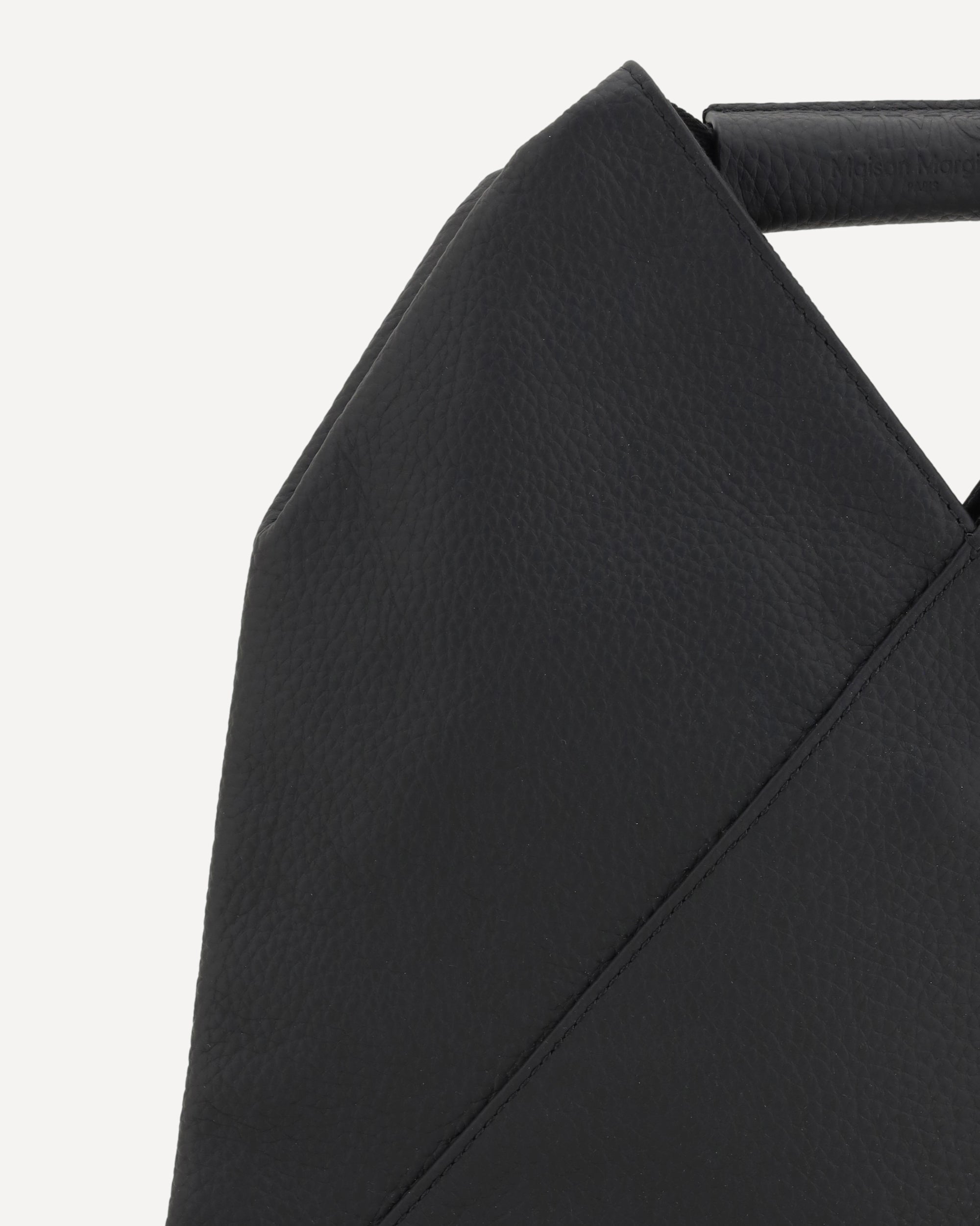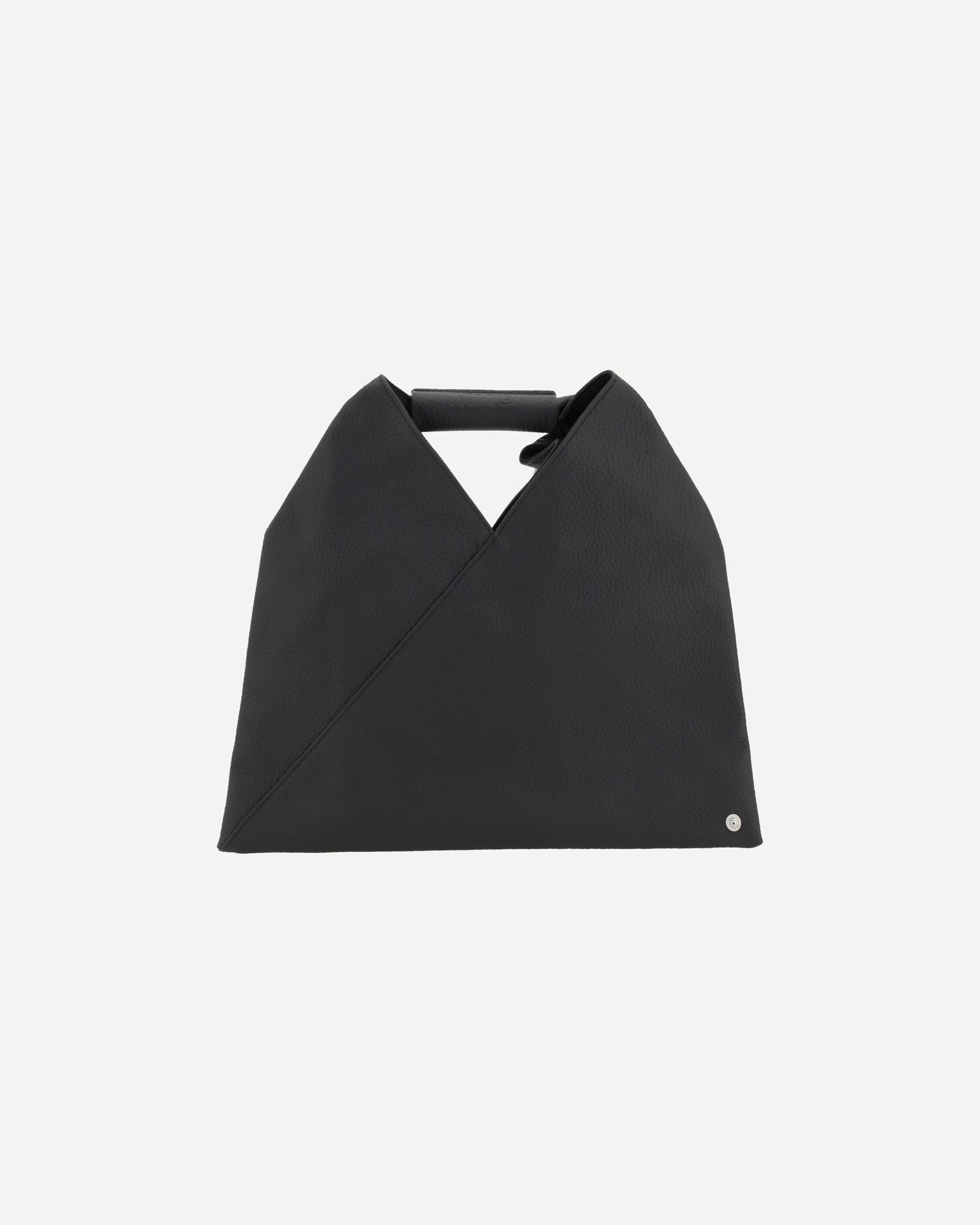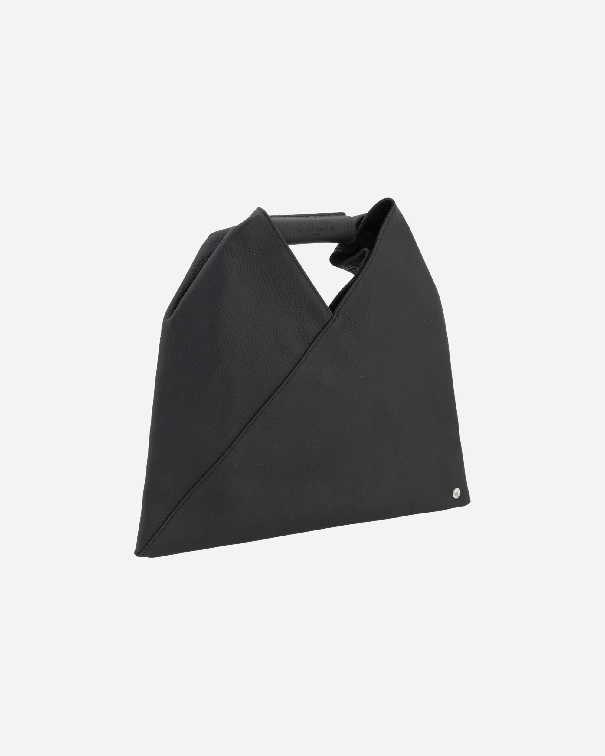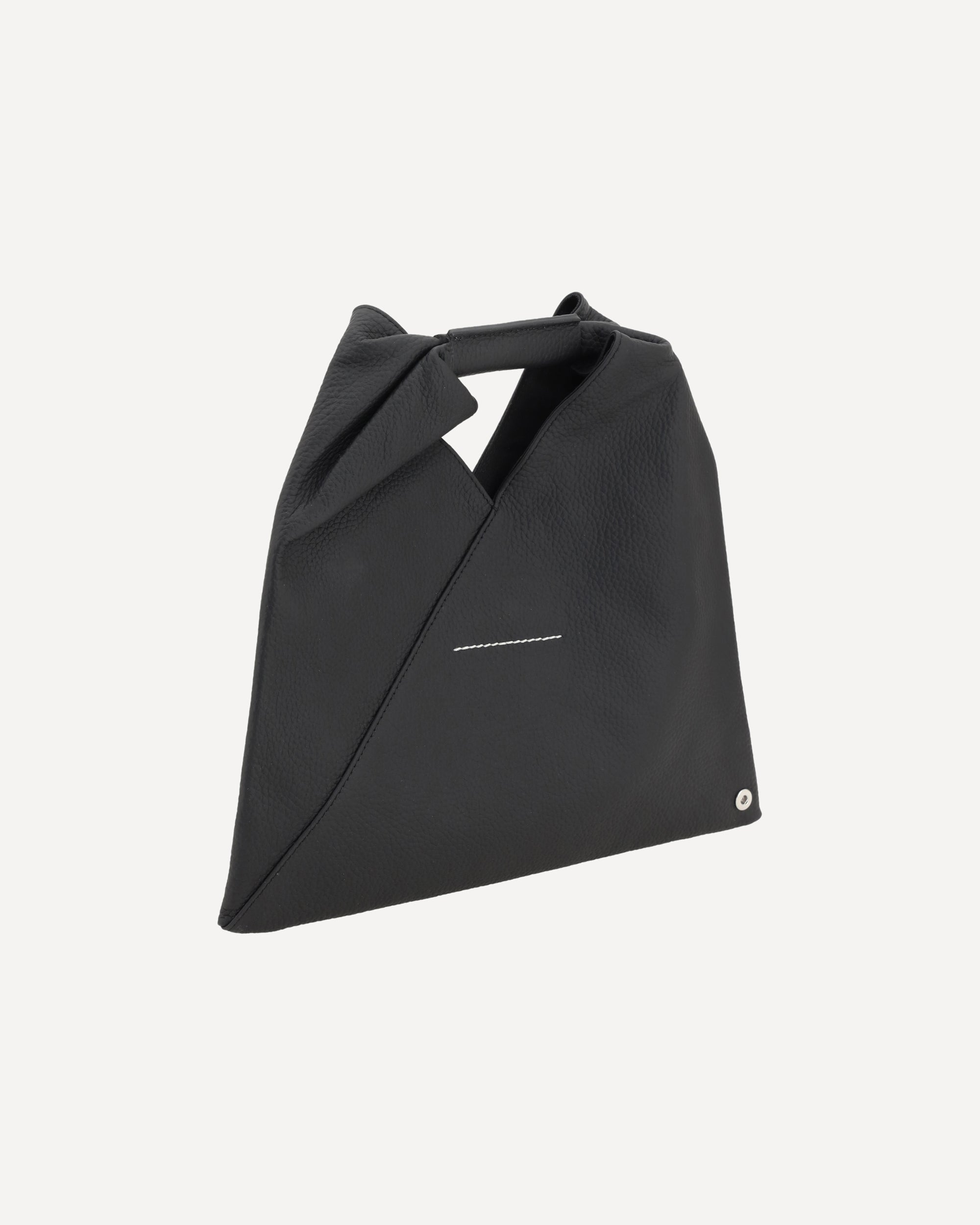 The Japanese Handbag by MM6 is an elegant and functional accessory, featuring a single handle that allows a comfortable and versatile grip. The triangular shape gives the bag a modern, geometric design, while the embroidery detail on the back adds a touch of originality and sophistication. The snap-button closure provides security, while the adjustable snap-button bottom allows you to customize the bag's capacity. Inside, a single compartment provides ample space for essentials, keeping everything neat and well organized.