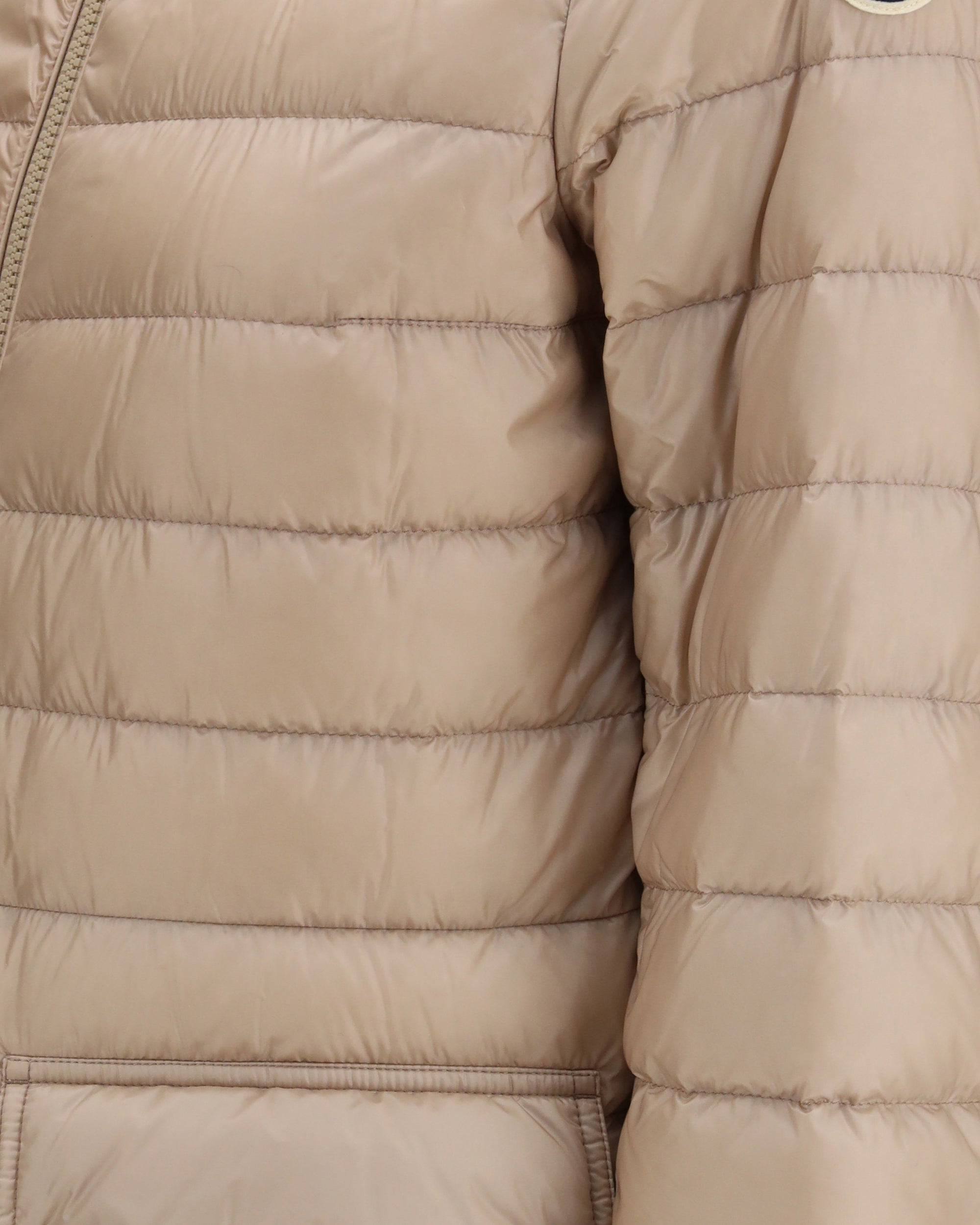 The Jasmin short Down Jacket by Moncler is an elegant and functional garment, made in longue saison with a water-repellent main fabric that protects against the elements. The padded design offers warmth and comfort, while the adjustable hood adds practicality. The zip closure and snap-button pockets ensure security, while the drawstring waist allows you to adjust the fit for a more defined look. Perfect for facing the cold in style, without sacrificing functionality.