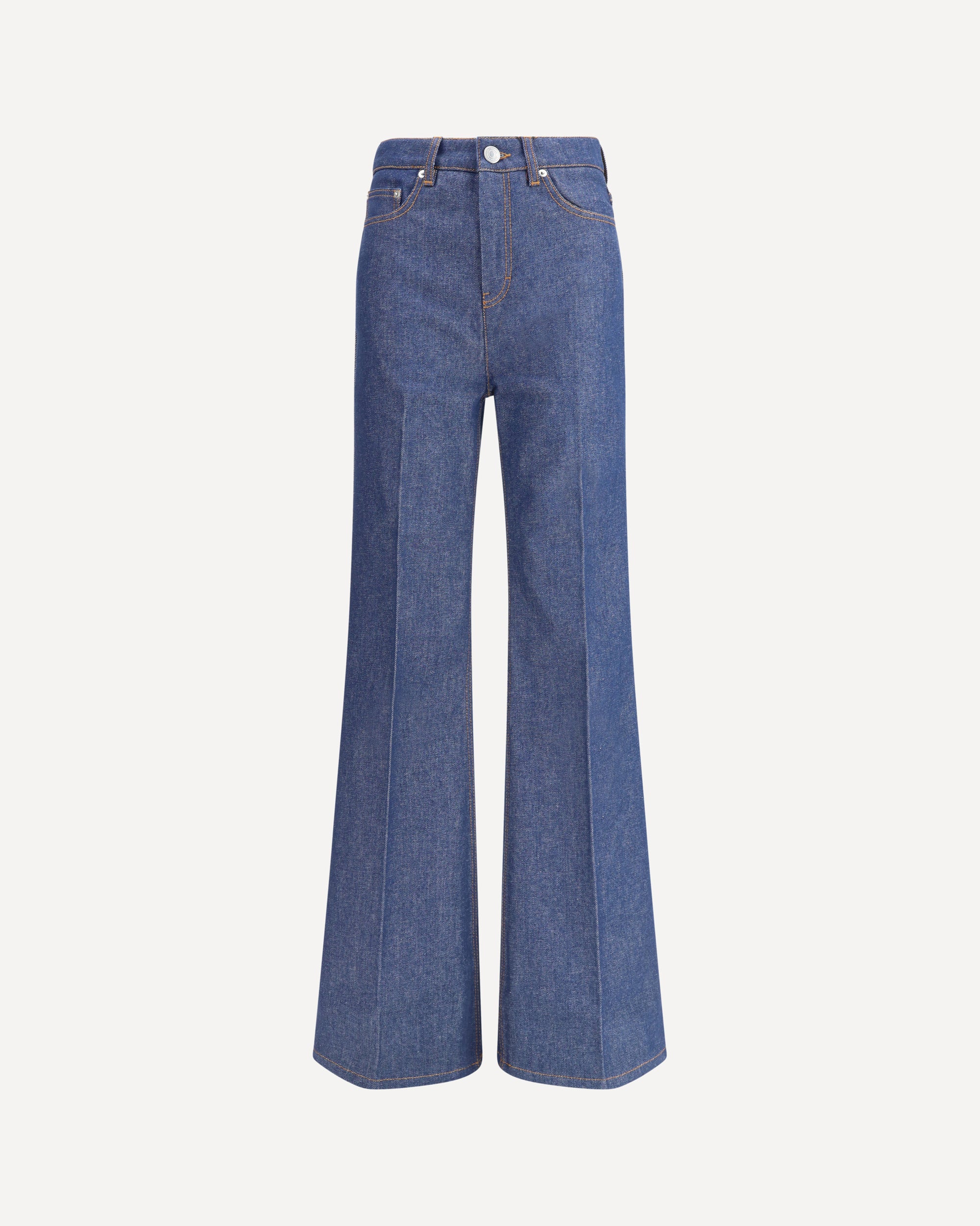 The flare fit Jeans in raw by AMI Paris embody contemporary style with a retro-inspired touch. The high waist enhances the silhouette, while the flared leg adds both movement and character. A five-pocket construction with zipped fly is finished with nickel-colored metal rivets and buttons, contrasting tobacco topstitching, and the signature ami alexandre mattiussi patch at the back for a distinctive detail.