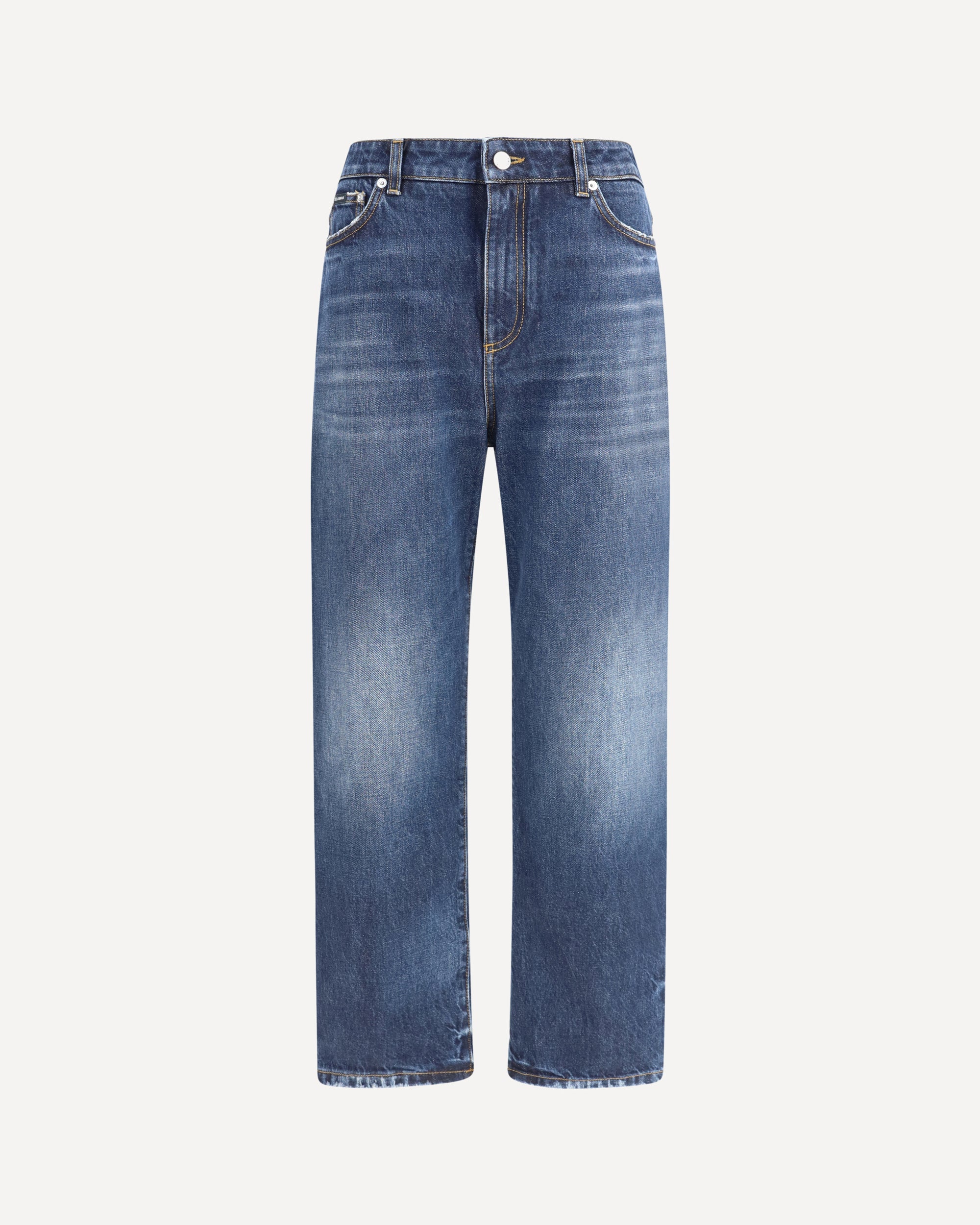 Dolce&Gabbana's boyfriend Jeans offer a relaxed fit and casual style with a strong character. Made in the classic five-pocket style, they feature a high waist with belt loops and a zipper and button closure. The design is completed by the logo plaque on the back, an iconic detail that recalls the brand's identity. Perfect for a casual, urban look without sacrificing Dolce&Gabbana's signature elegance.