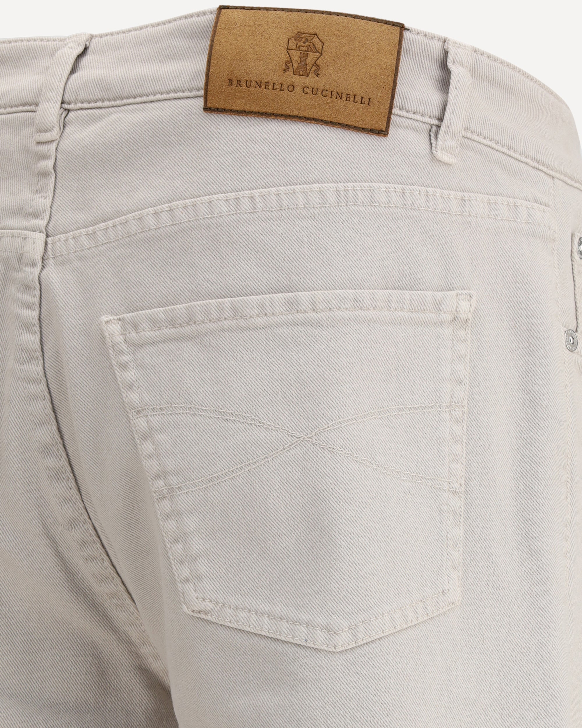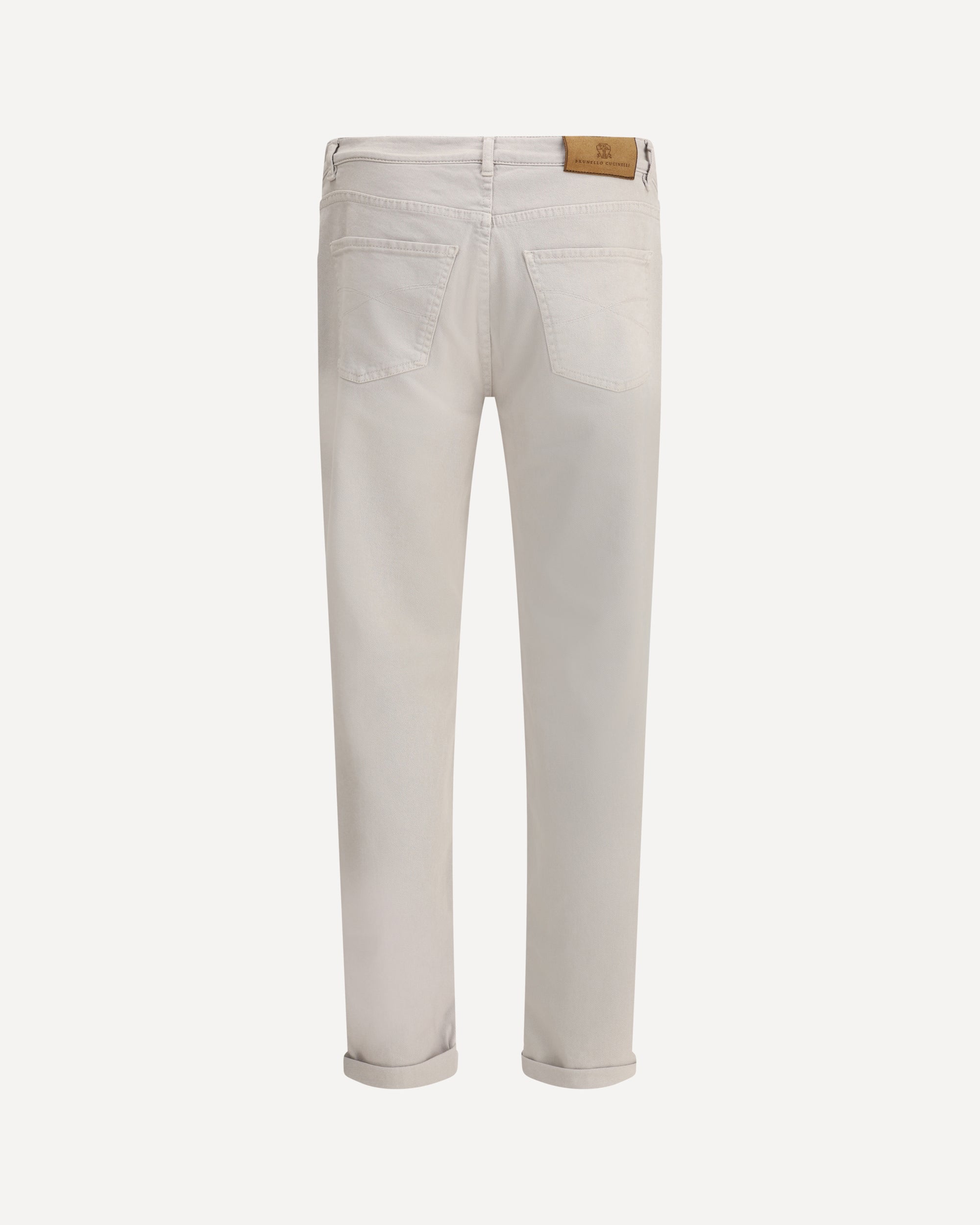The cotton Jeans by Brunello Cucinelli are a timeless and versatile piece with a classic five-pocket design. The front button closure and belt loops at the waistband allow for a comfortable and adjustable fit. The distinctive detail is the iconic leather patch with the brand's signature press-stamped signature, applied to the back, which adds a touch of understated elegance. The embroidered logo on the front breast pocket and turn-up hem complete the design, giving it a refined, polished look.