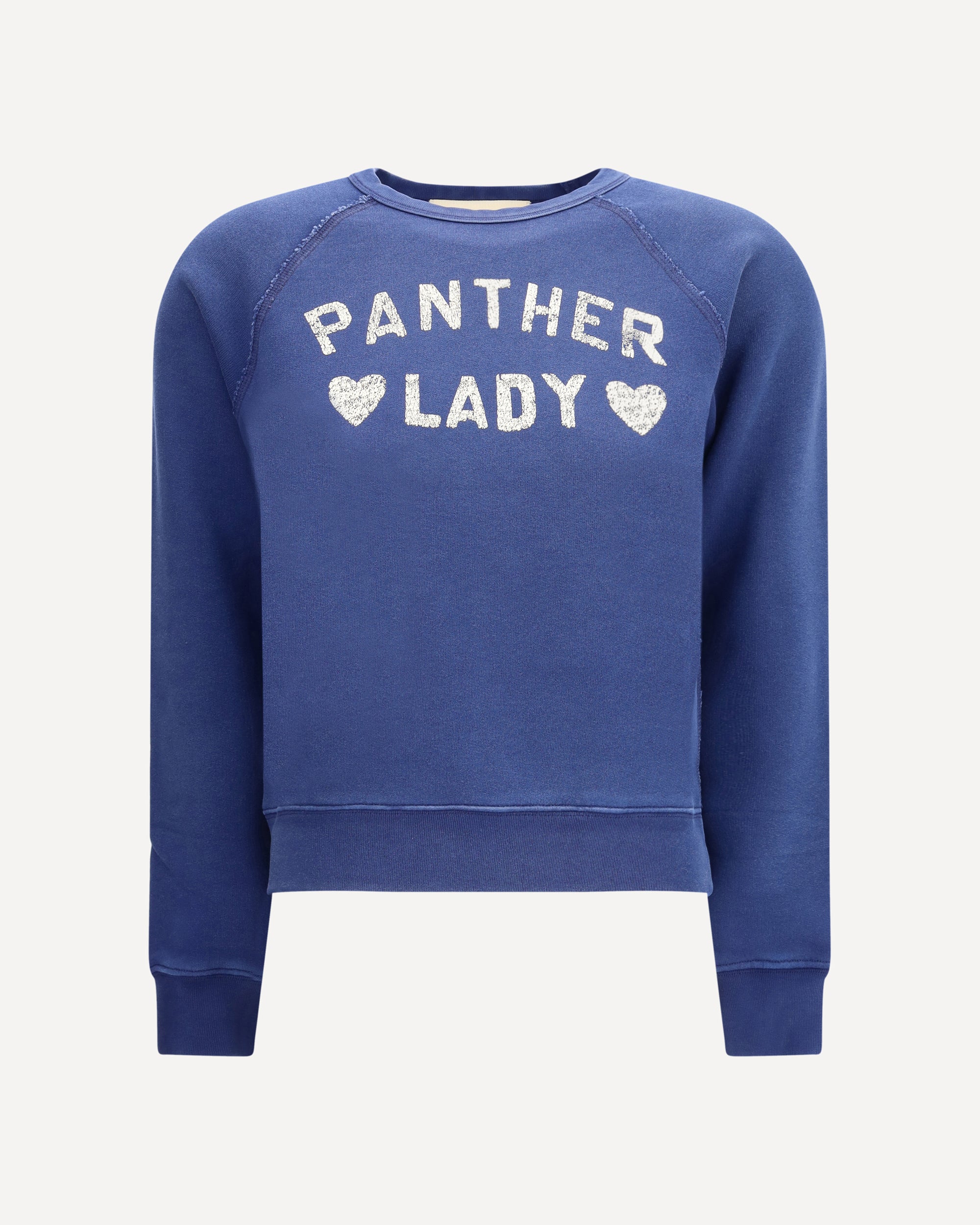 The Panther Lady Sweatshirt by Valentino combines comfort and graphic style. Crafted with a ribbed crew neck, cuffs and hem, it is enhanced by the Panther Lady signature print on the front and the logo printed on the back, for a bold and distinctive look.