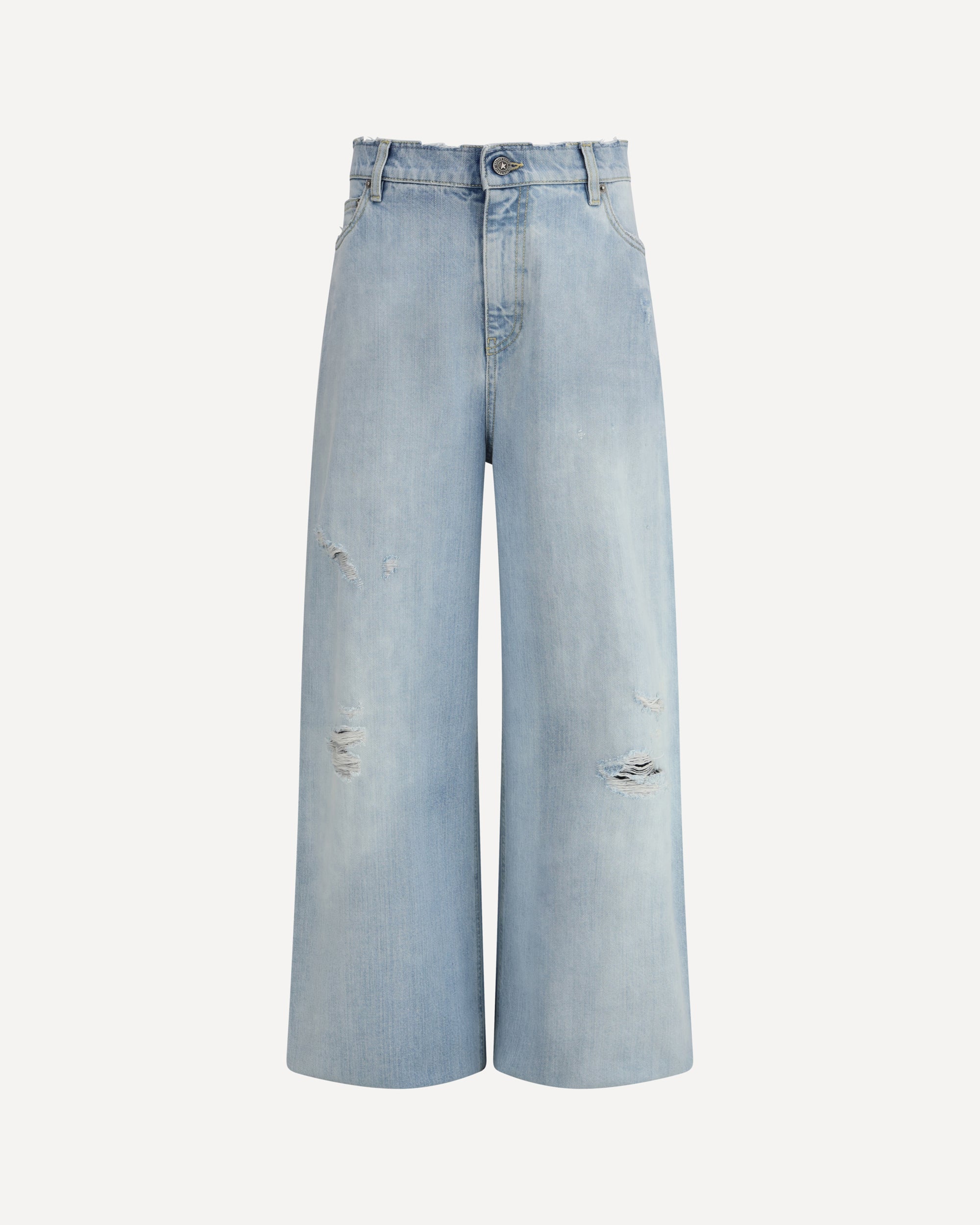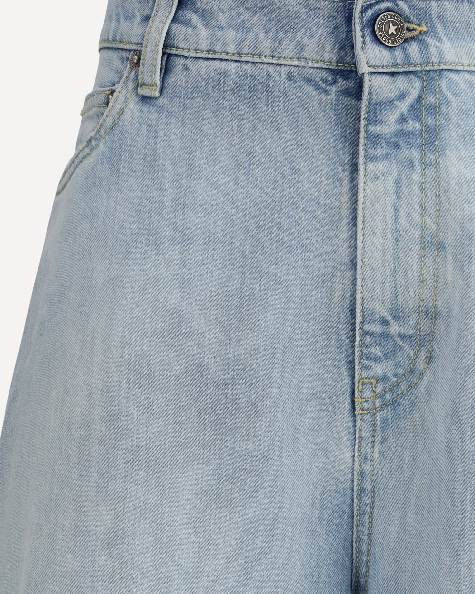 Golden Goose's Melody Boyfriend Jeans express a casual, lived-in aesthetic typical of the brand. Made in a low-waisted style with five pockets and belt loops on the waistband, they stand out for their frayed hem and worn effect, which give the garment an authentic and casual character.