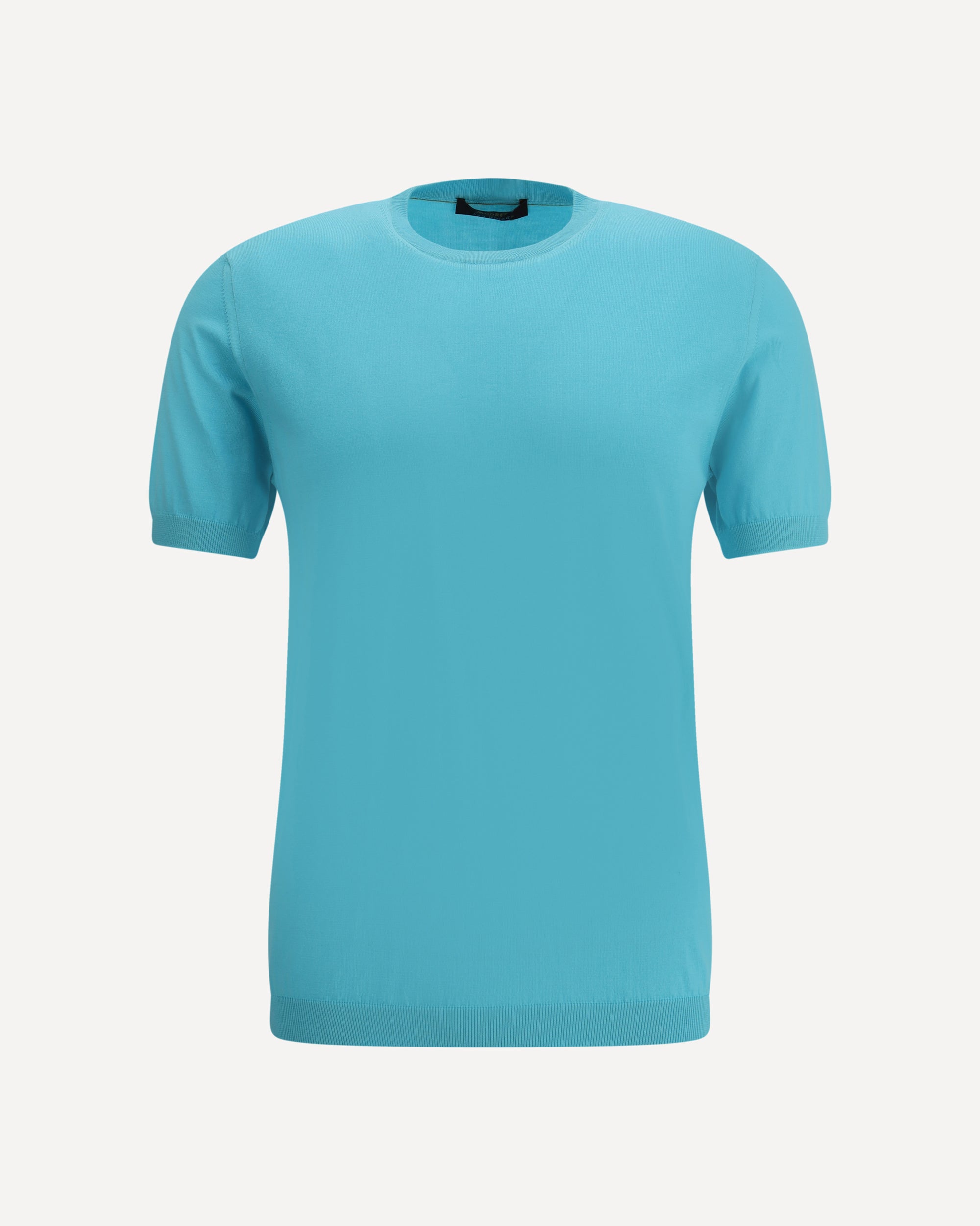 The Jude Knit T-Shirt by Moorer is a refined essential, perfect for those seeking a simple yet sophisticated look. The ribbed crew neck adds a touch of elegant detail, while the ribbed cuffs ensure a comfortable and durable fit. Crafted from high-quality materials, this t-shirt is a great choice for versatile pairings, whether with jeans for a casual look or with dressier trousers for a more refined outfit.