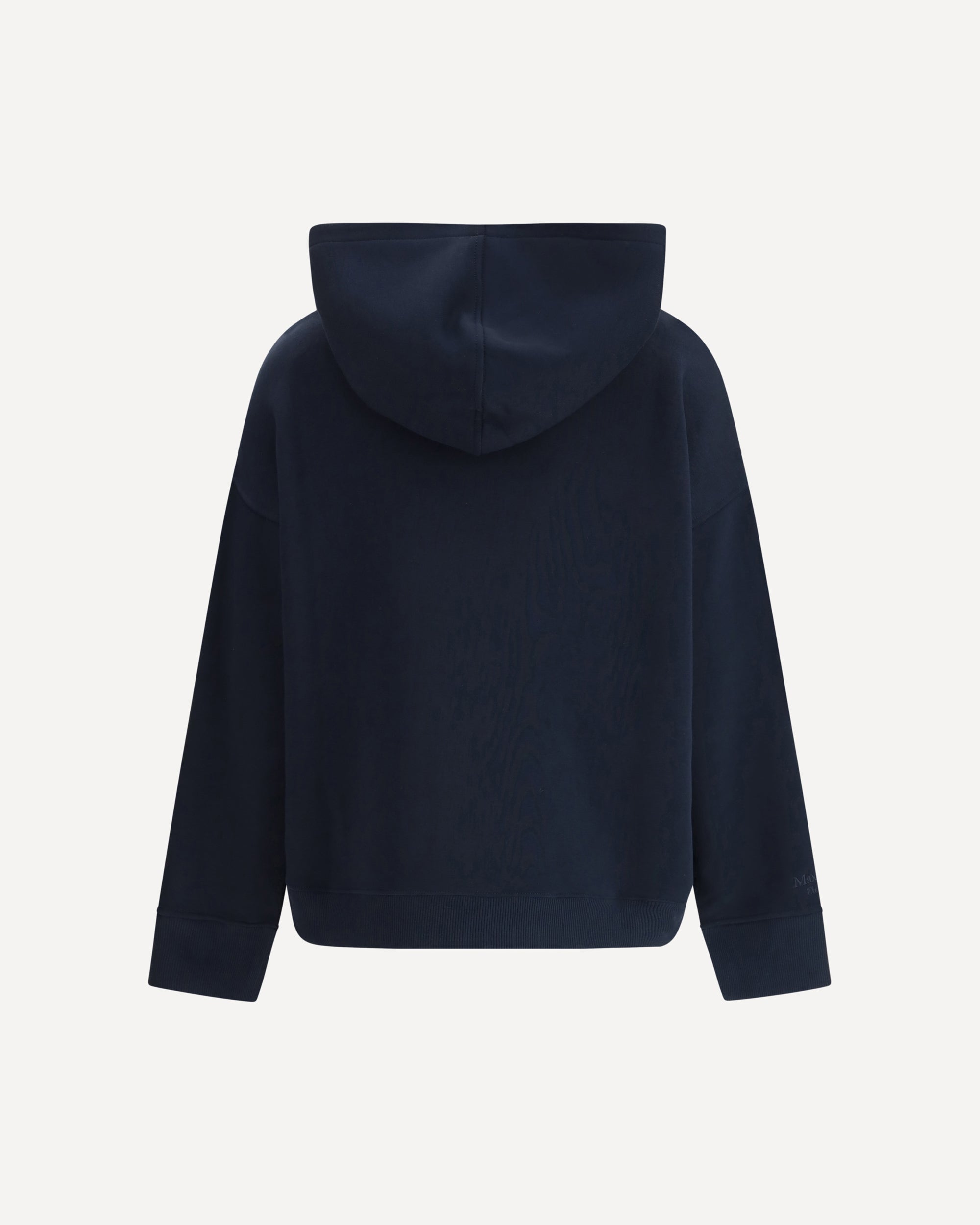 The Julia zip-up hoodie by 'S Max Mara, crafted from brushed stretch cotton-nylon jersey. Designed with a fixed hood, zip closure, and front pockets, it features dropped shoulders for a relaxed feel. Finished with an embroidered logo on the cuff, ribbed hem and cuffs, this piece offers a regular fit with a clean, contemporary look.