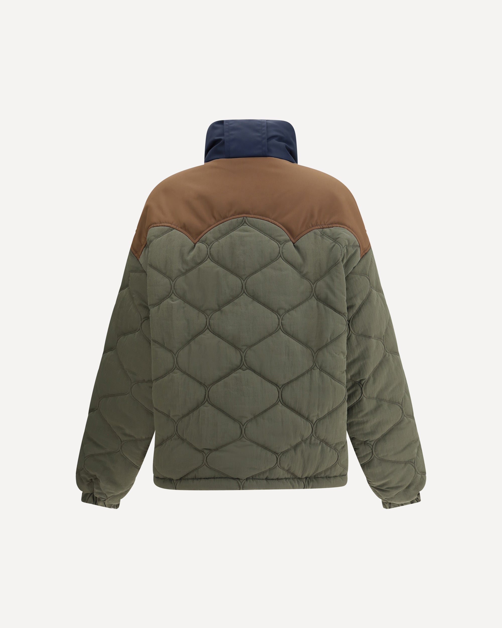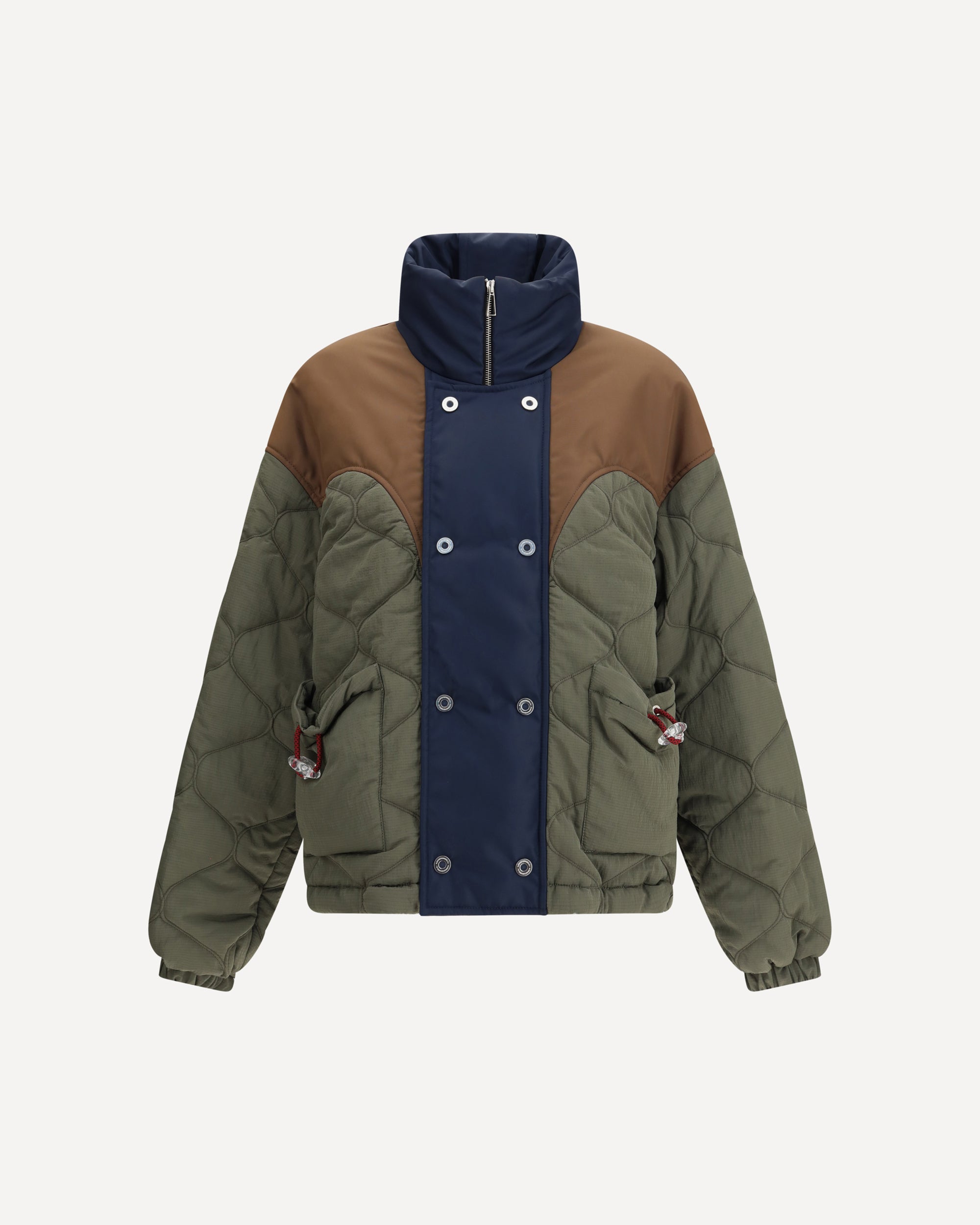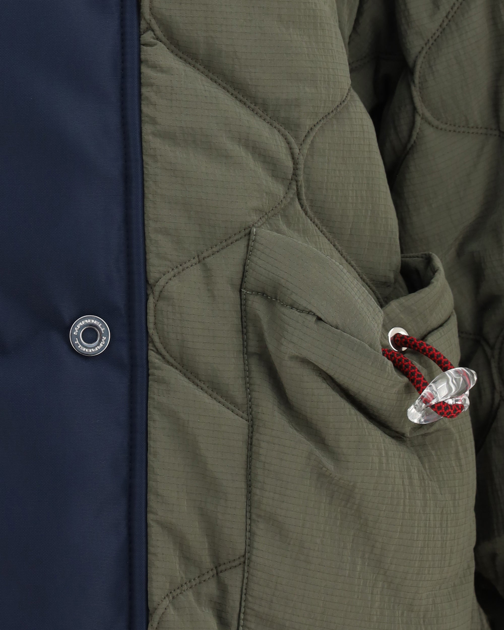 The Down Jacket by Marbell presents a double-breasted closure with a zipper and snap buttons. The contrasting shoulder detail, paired with the jacket’s quilting, creates a dynamic and modern visual effect, adding character to the piece. Clean lines and a structured silhouette convey elegance, while functional details, such as strategically placed pockets and elasticated cuffs, combine practicality and style, making this down jacket a versatile piece for the colder season.
