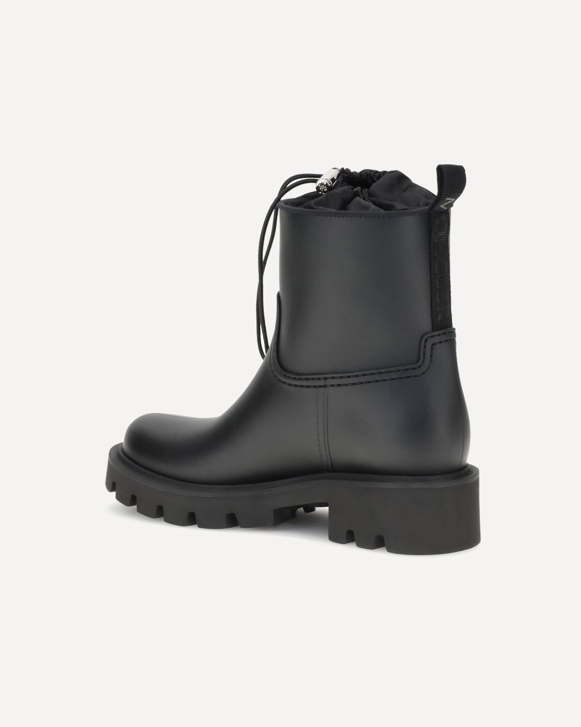 Moncler's Kickstream rubber Boots combine functionality and style with distinctive details. Featuring a round toe, they feature a tonal logo applique on the side and logo fabric inserts on the back. The drawstring closure and back pullback ensure practicality and an adjustable fit, perfect for tackling all conditions with character.
