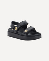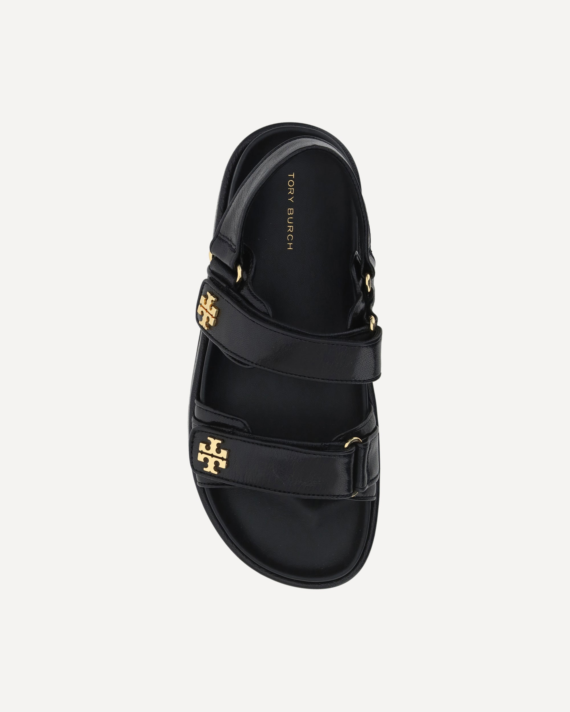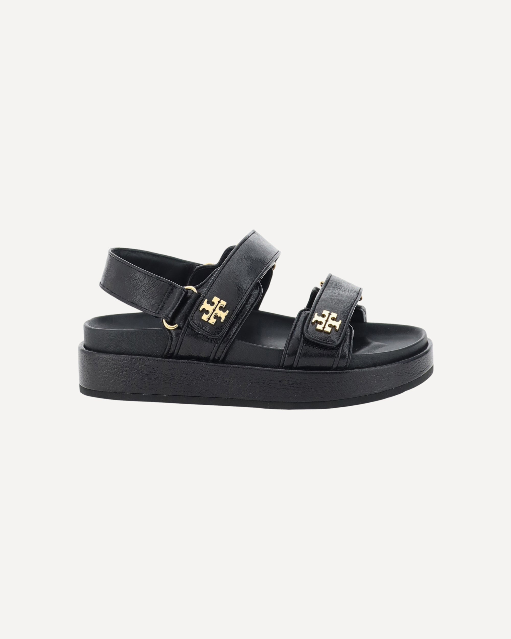 Tory Burch's Kira Sport Sandals combine practicality with contemporary style. Crafted from leather, they feature a Velcro strap closure at the back of the foot and ankle loop for an adjustable, secure fit. The brand's iconic logo plaque applied to the front strap adds a distinctive touch, while the contrasting logoed insole ensures comfort. Completing the design is the rubber platform sole and square open toe on the front, perfect for a sport-chic look.