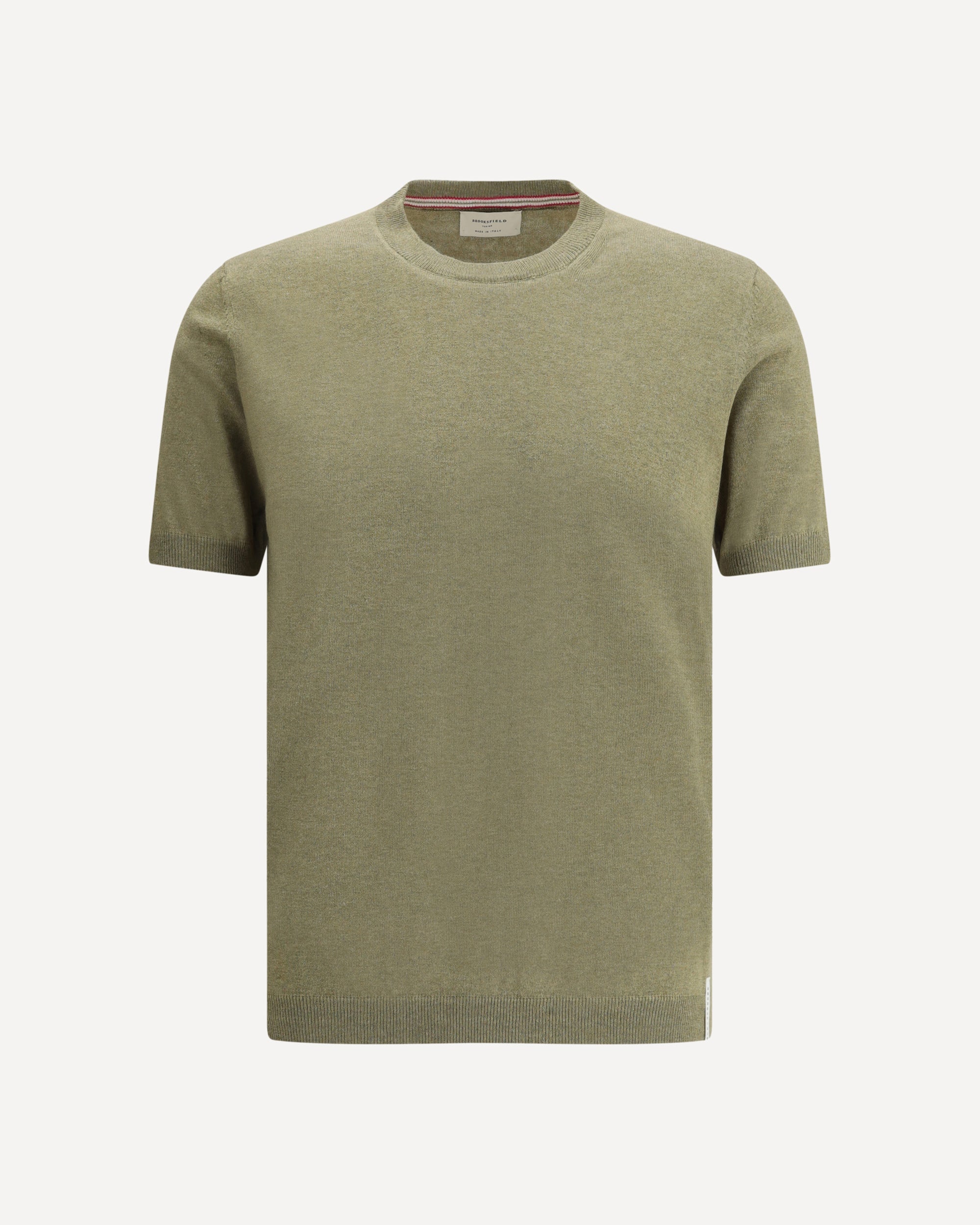 Brooksfield's cotton T-Shirt is a simple, refined garment made from soft cotton for comfort and coolness. It features a ribbed crew neck, giving it a comfortable and modern fit. An iconic monogram patch is applied to the ribbed hem, adding a stylish and distinctive detail. The monochrome pattern makes the T-shirt versatile and easy to pair with a variety of outfits, perfect for a casual but still polished look.