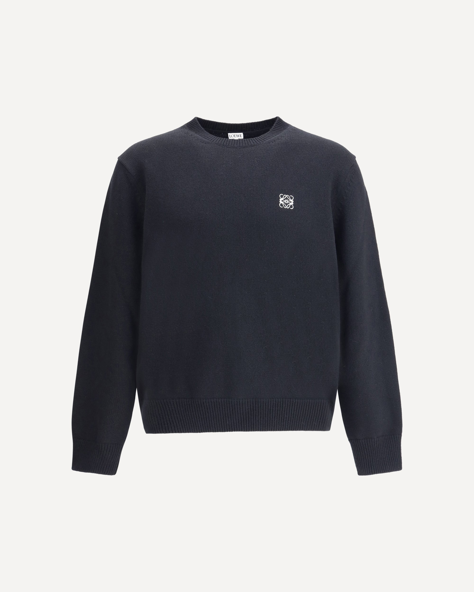 Loewe's wool Sweater with ribbed crew neck and iconic embroidered Anagram is ideal for those seeking elegance and comfort. Made from fine wool, this sweater features a ribbed knit that gives an optimal fit, with a simple and refined crew neck. The iconic Anagram embroidered on the front represents the Loewe badge, adding a touch of class to the garment. Ribbed cuffs and hem complete the design, giving a well-defined structure and a perfect fit.