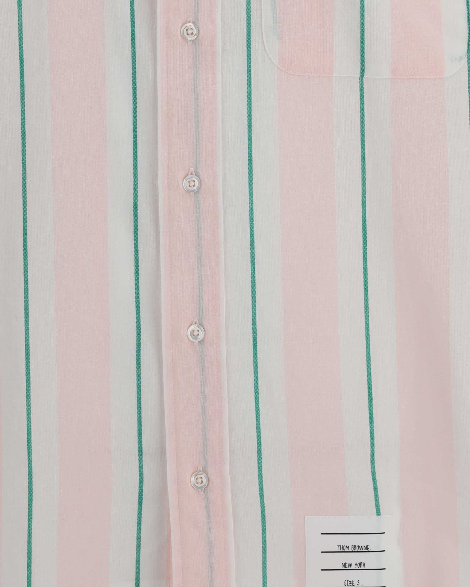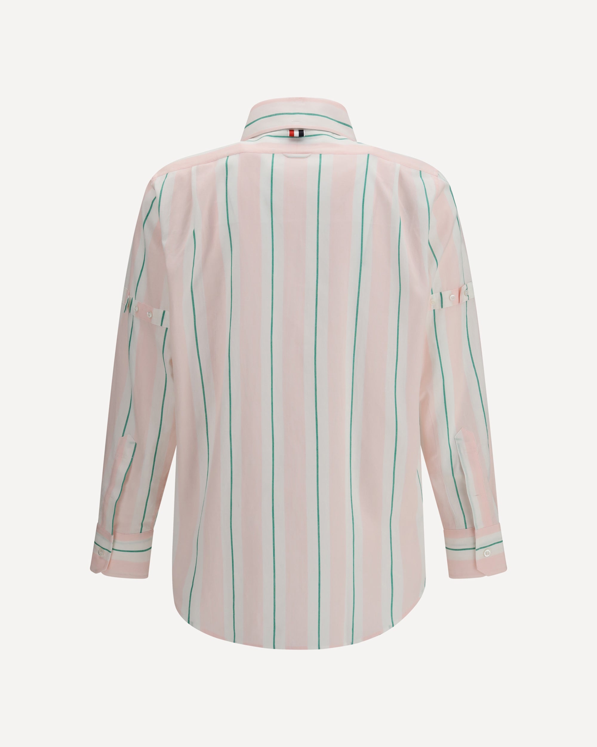 The button-down Shirt by Thom Browne features a classic and refined design. It includes a button-down collar, a chest patch pocket, and a front button fastening. The sleeves are finished with buttoned cuffs, while the curved hem adds a versatile and elegant touch. The piece is completed with a rear locker loop and a logo label, a signature brand detail.