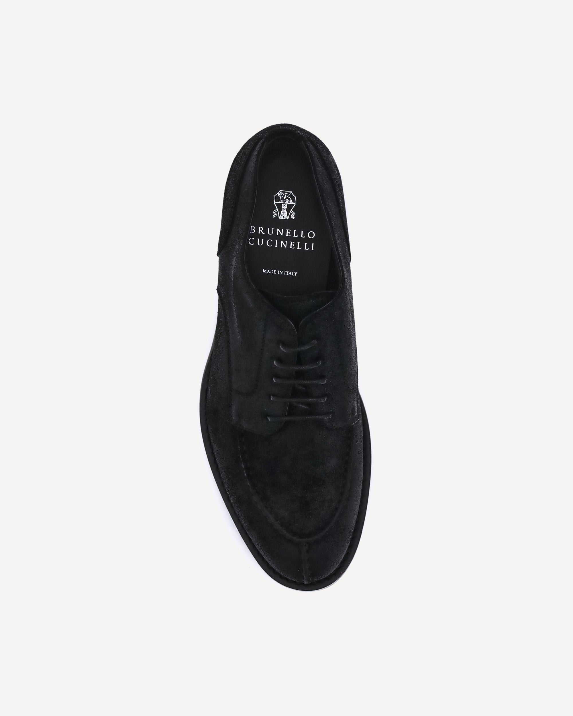 The Suede Lace-ups by Brunello Cucinelli combine essential elegance and artisanal refinement. Featuring a round toe and tone-on-tone laces, they have a flat sole that ensures comfort and versatility. The clean design and fine materials reflect the sober and sophisticated aesthetic of the fashion house, perfect for everyday elegance without excess.