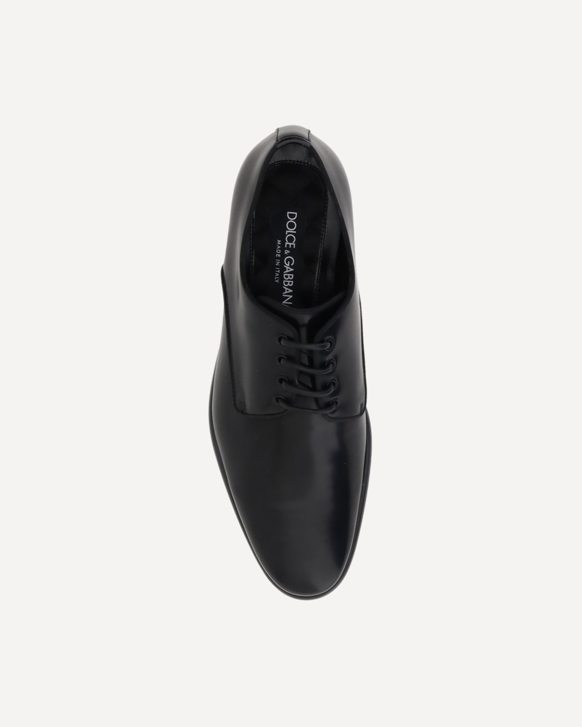 Dolce&Gabbana's leather Lace-Up are a perfect blend of classic elegance and contemporary sophistication. Crafted from fine leather, these shoes feature a lace-up upper closure that ensures a secure and adjustable fit. The beveled toe gives a sophisticated and modern look, lending a distinctive touch to the design. The leather insole, embellished with the brand's logo, adds an additional detail of luxury and comfort