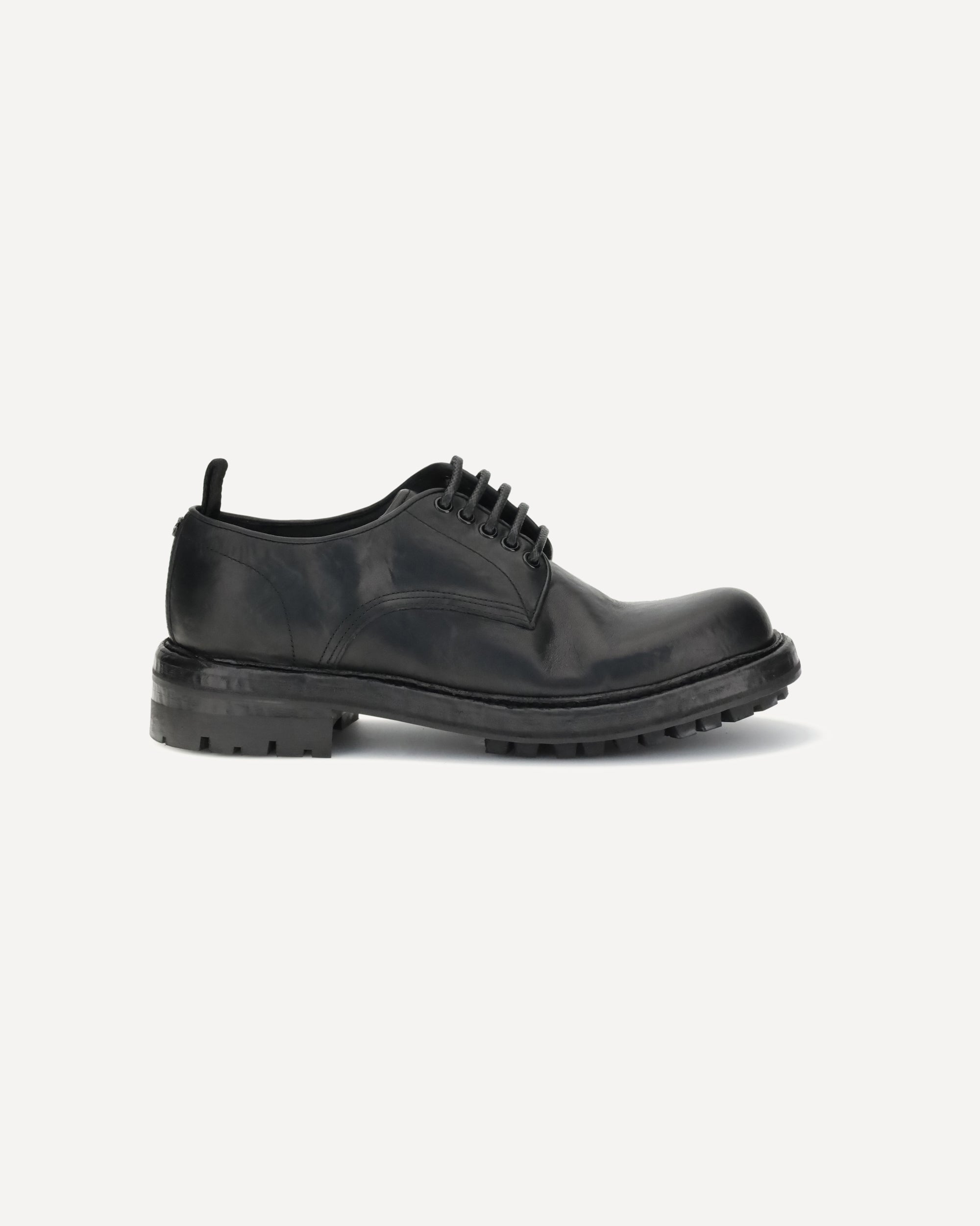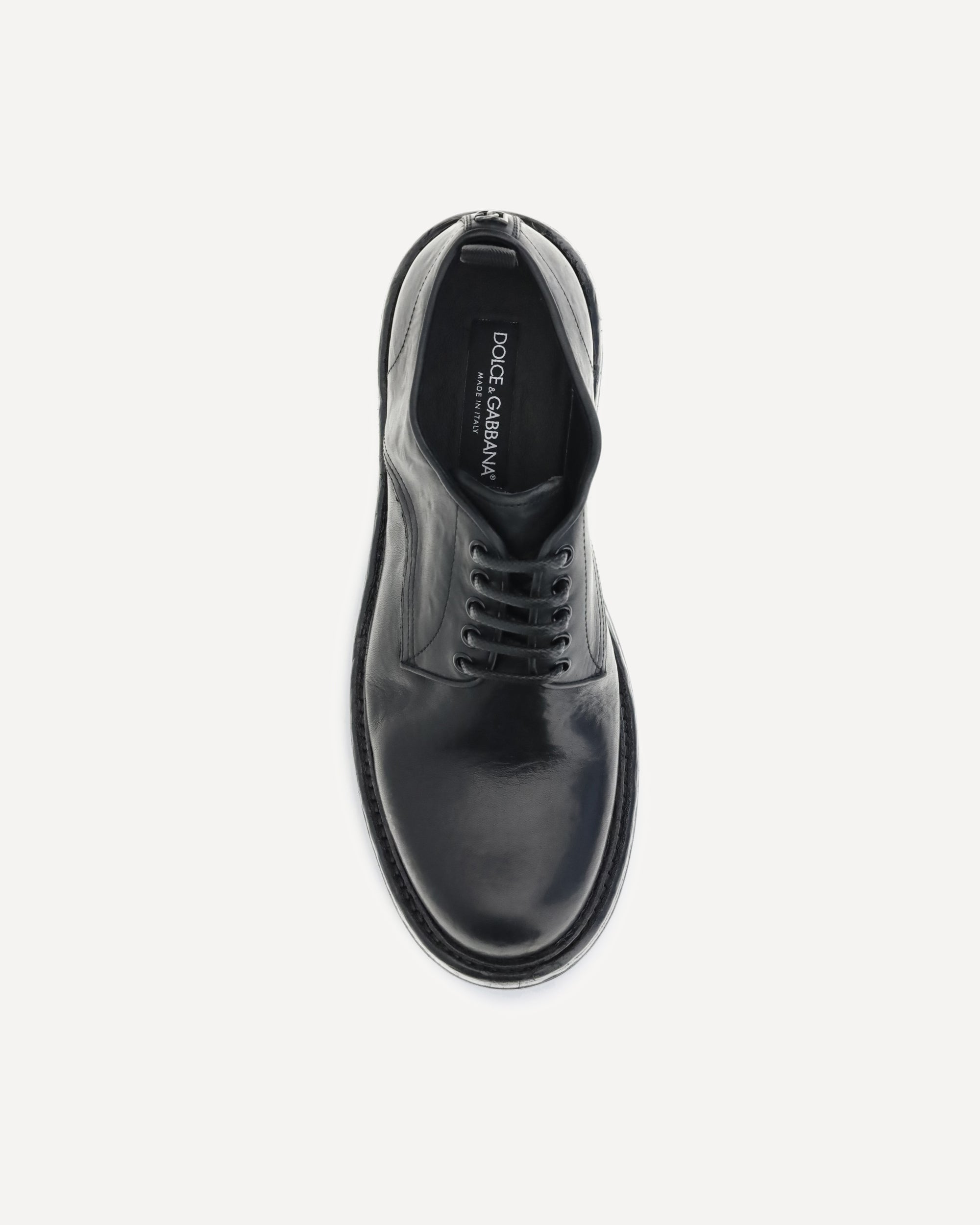 Lace-Up Shoes by Dolce&Gabbana combine elegance and casual style in a refined and versatile design. Crafted with careful craftsmanship, they feature a textured Bernini base, leather insole for natural comfort, and leather sole with TPU bottom for durability. The leather heel detail with custom label adds a distinctive touch, perfect for completing both formal and more casual looks with class.