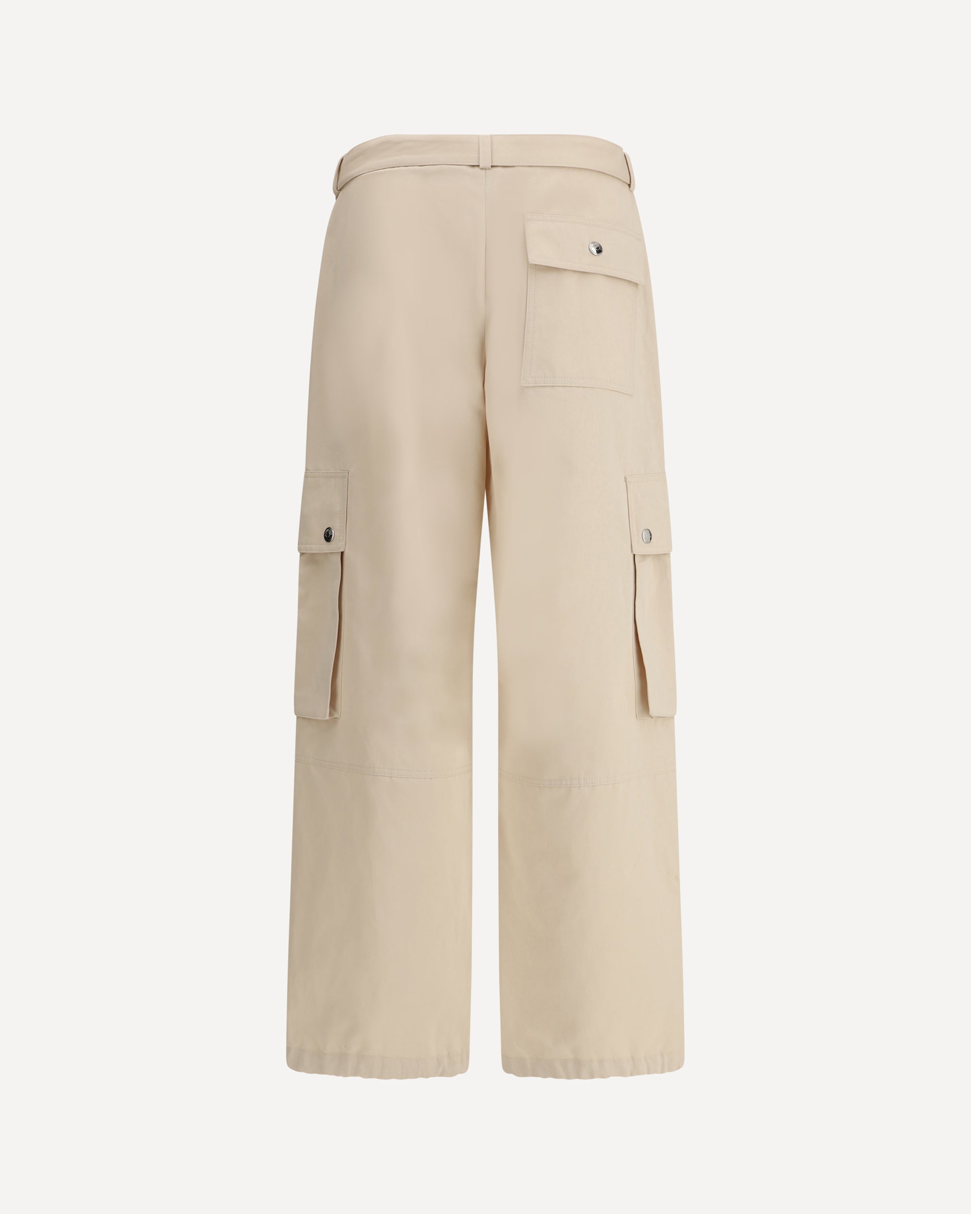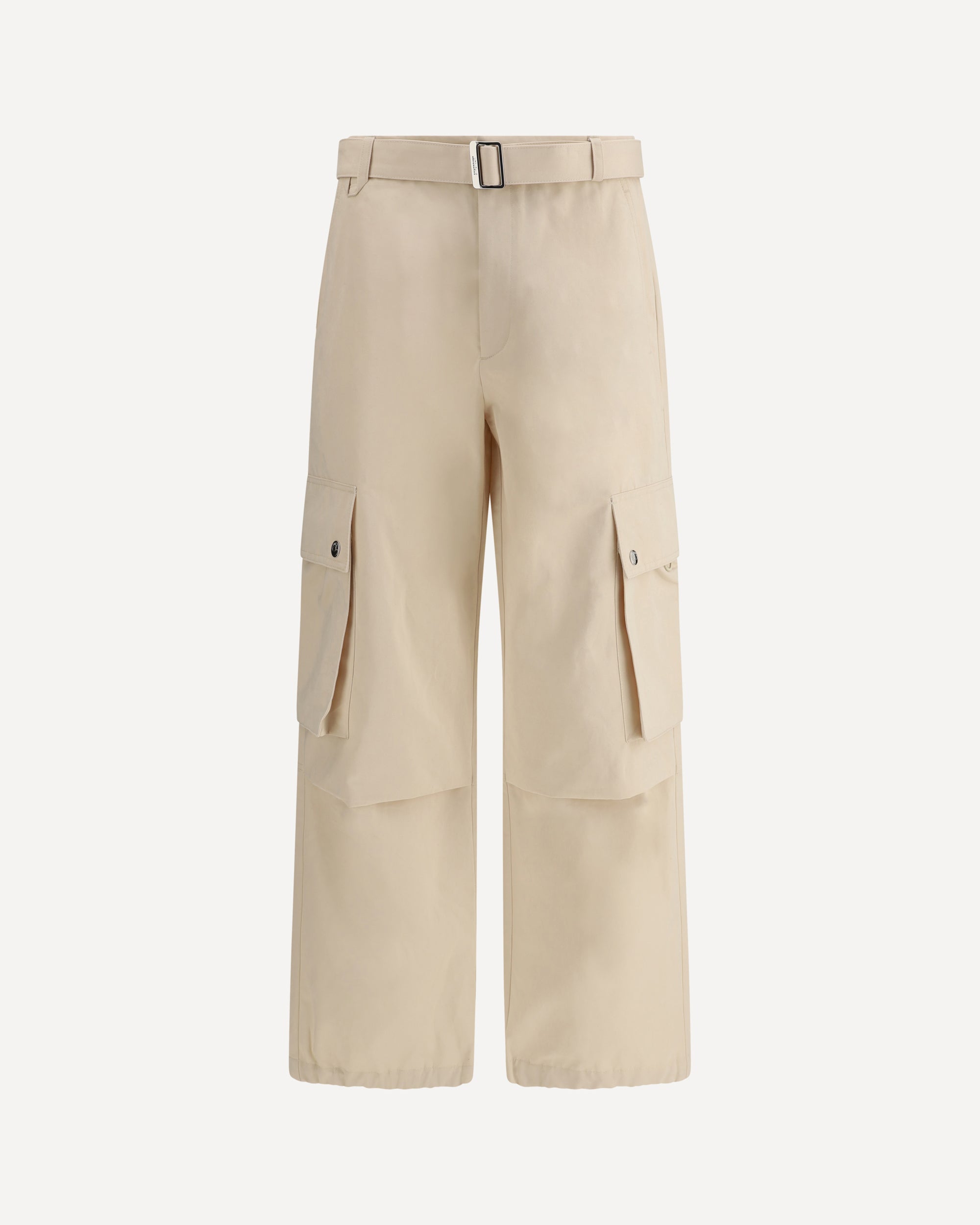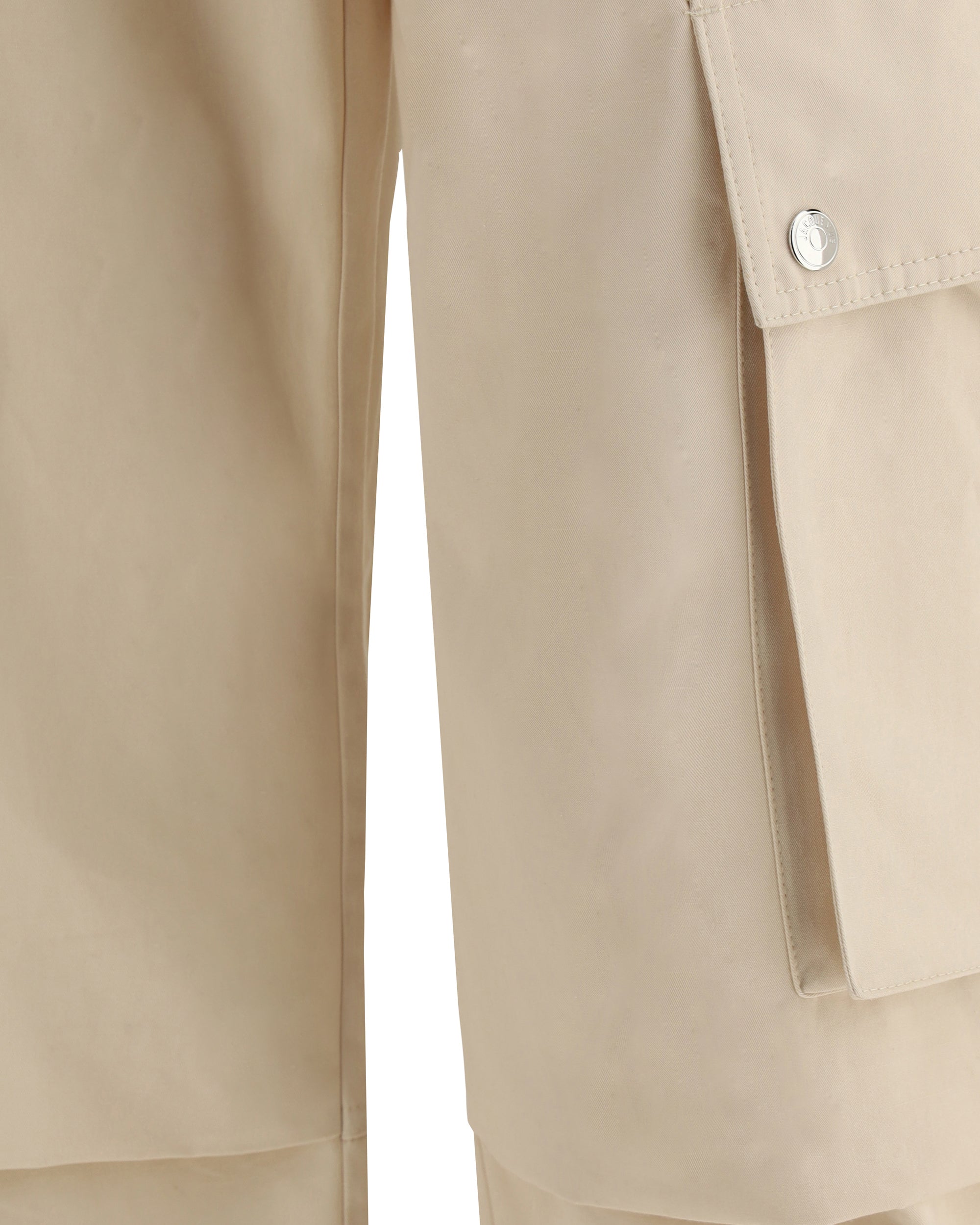 Le Cargo Pants from Jacquemus offer a modern, functional look. They feature a front zipper and button closure, with an adjustable built-in waistband for a customized fit. They feature two side welt pockets, a buttoned back patch pocket and two side cargo pockets, adding a practical and stylish touch.