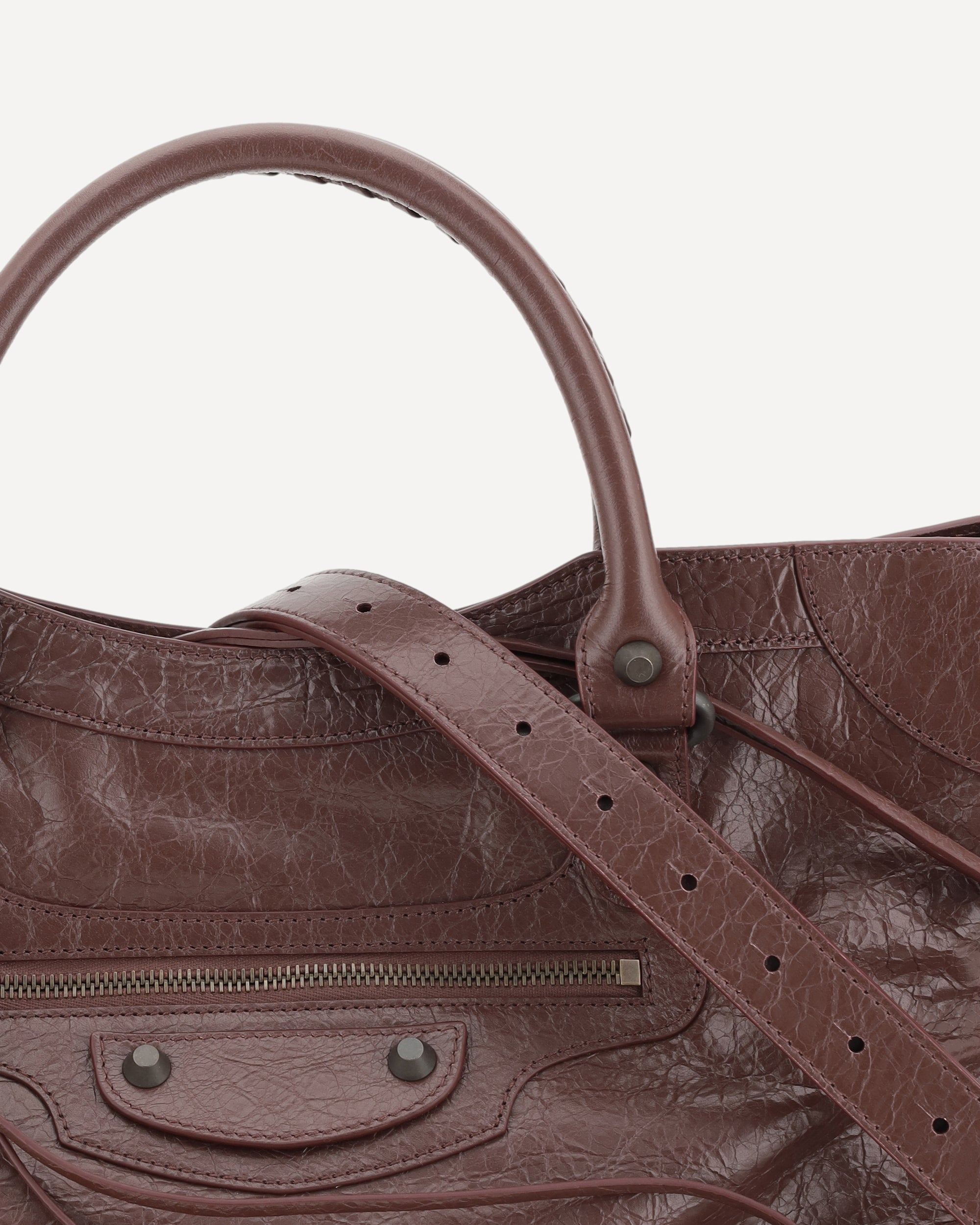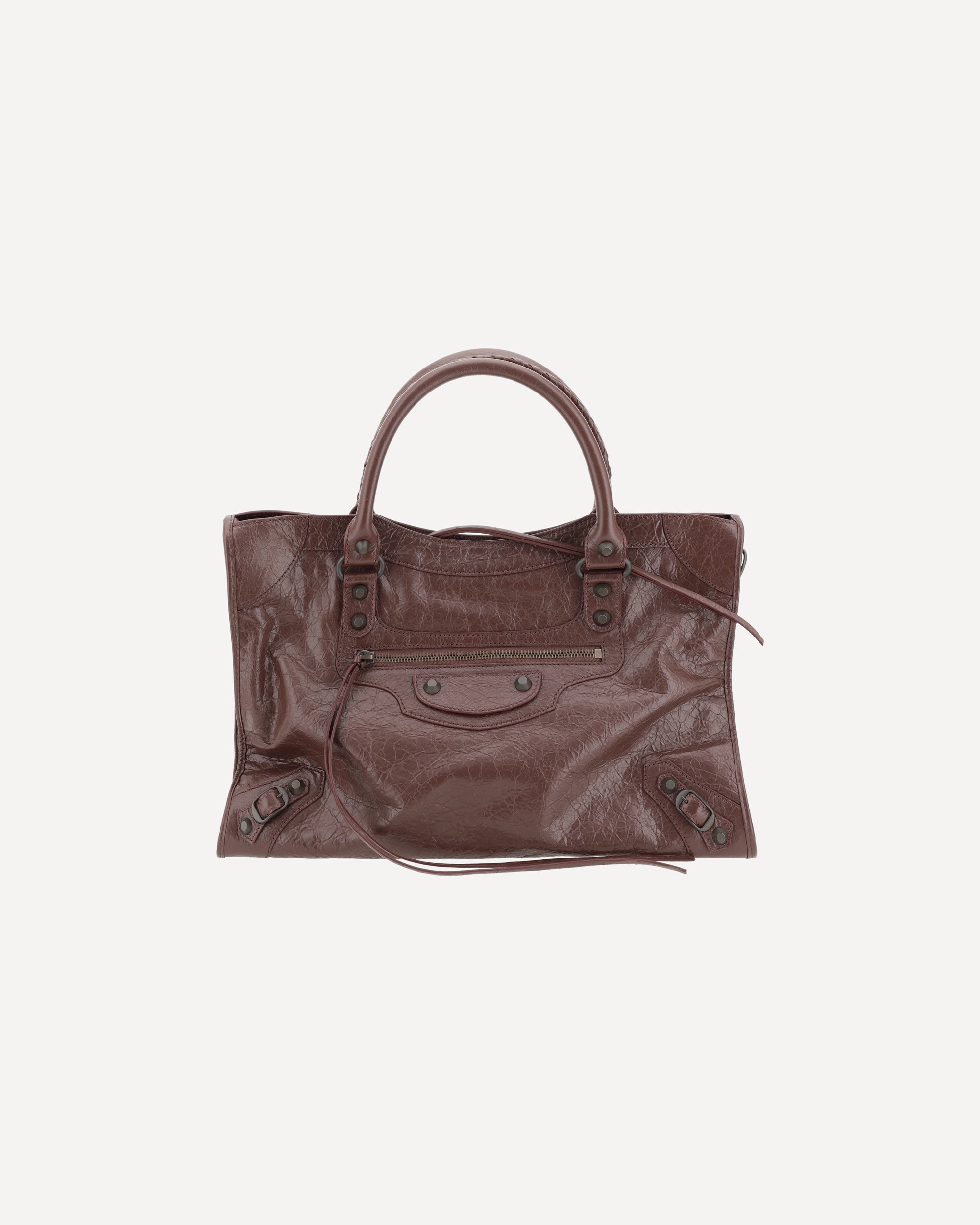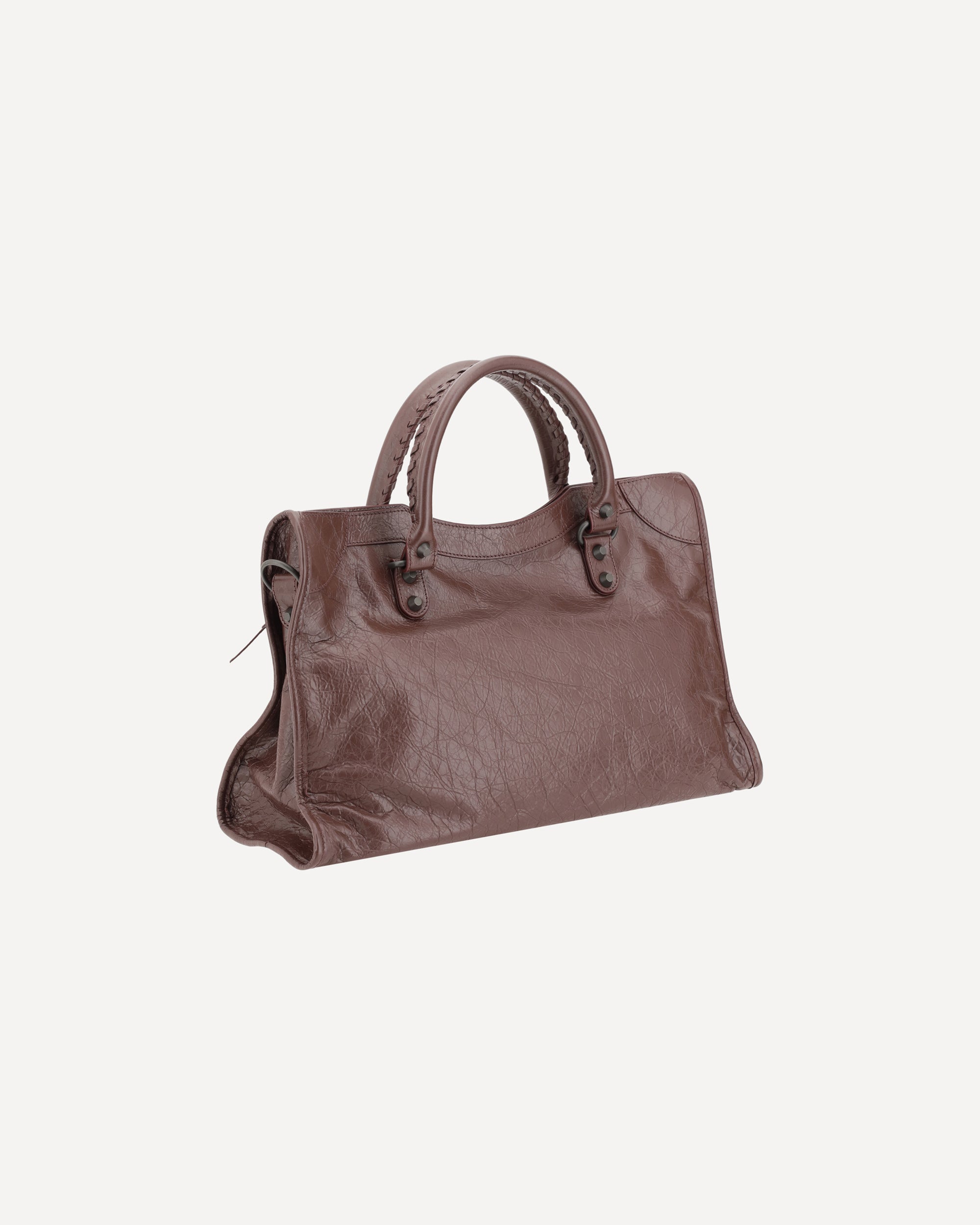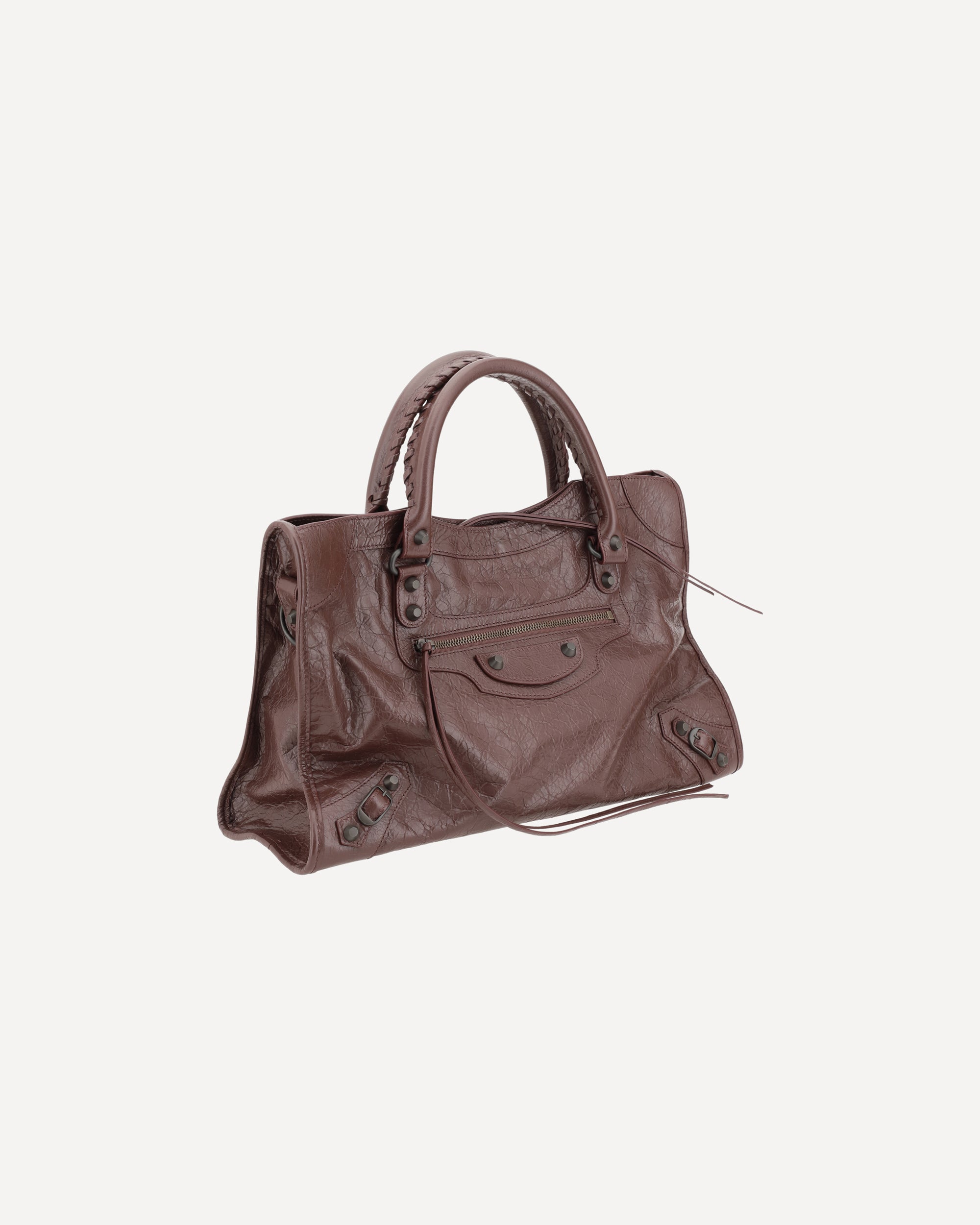 The Le City medium Shoulder Bag by Balenciaga is a high-class item made of fine lambskin leather that combines elegance and functionality. The two hand-woven leather handles lend an artisanal and refined touch, while the adjustable and removable shoulder strap allows it to be worn with versatility, either by hand or on the shoulder. The zippered closure and knotted leather zipper pull add distinctive details, while the front zippered pocket offers convenience for quick access to essentials. Inside, a zippered pocket and cotton canvas lining provide organization and durability. Brass trim completes the look, making this bag a luxurious accessory.