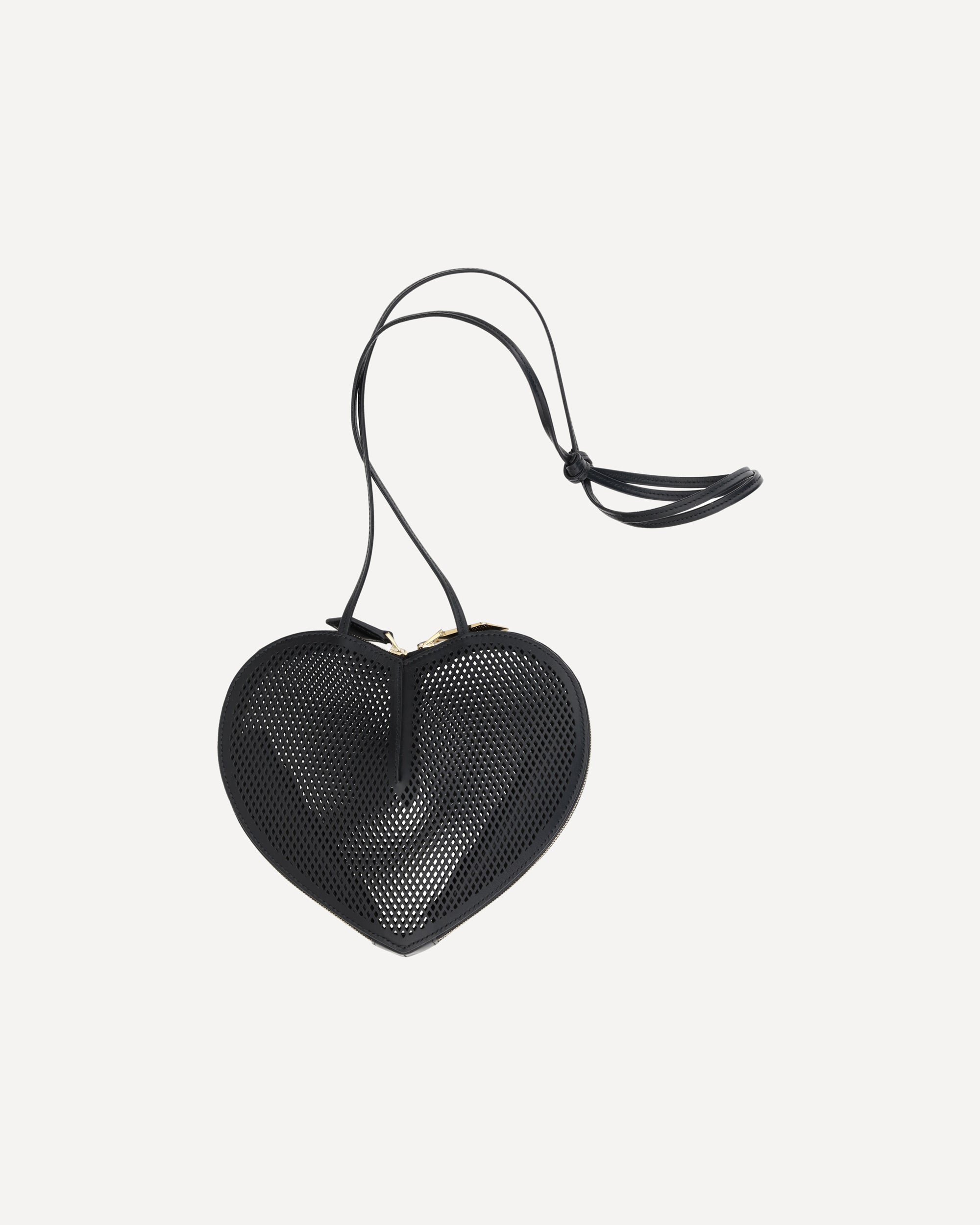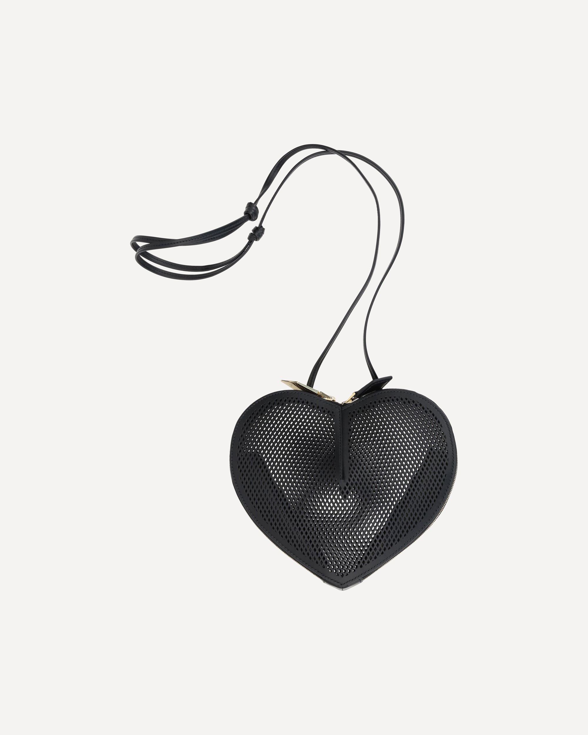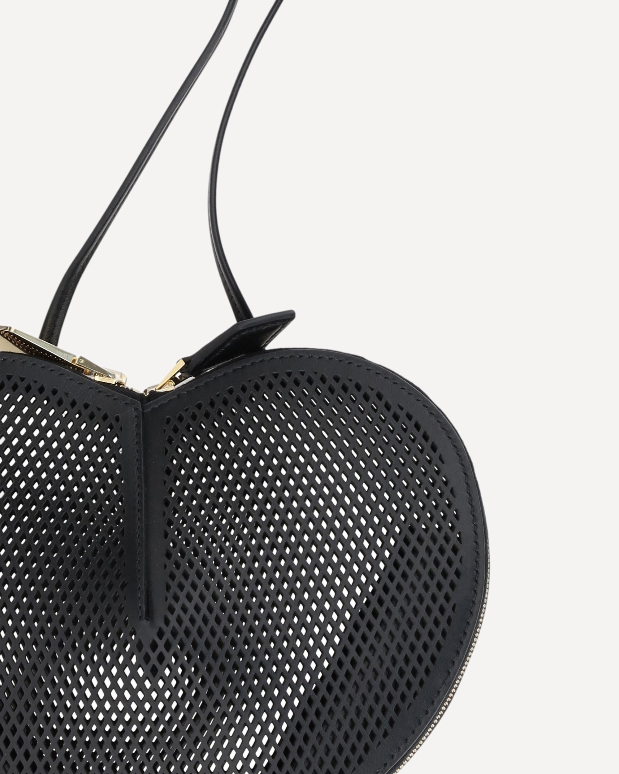 The Le Coeur Shoulder Bag by Alaïa is a piece with a unique and romantic design, featuring a heart shape that enhances its delicate silhouette. Made with a refined openwork pattern, this bag adds a touch of originality and sophistication to any outfit. The zippered top closure ensures convenience and security, while the single compartment offers essential space for your belongings. The slim, adjustable shoulder strap allows you to wear it with comfort and versatility, easily adapting to your daily needs. With its distinctive aesthetic and timeless elegance, the Le Coeur bag is perfect for those seeking an accessory that combines style and functionality.
