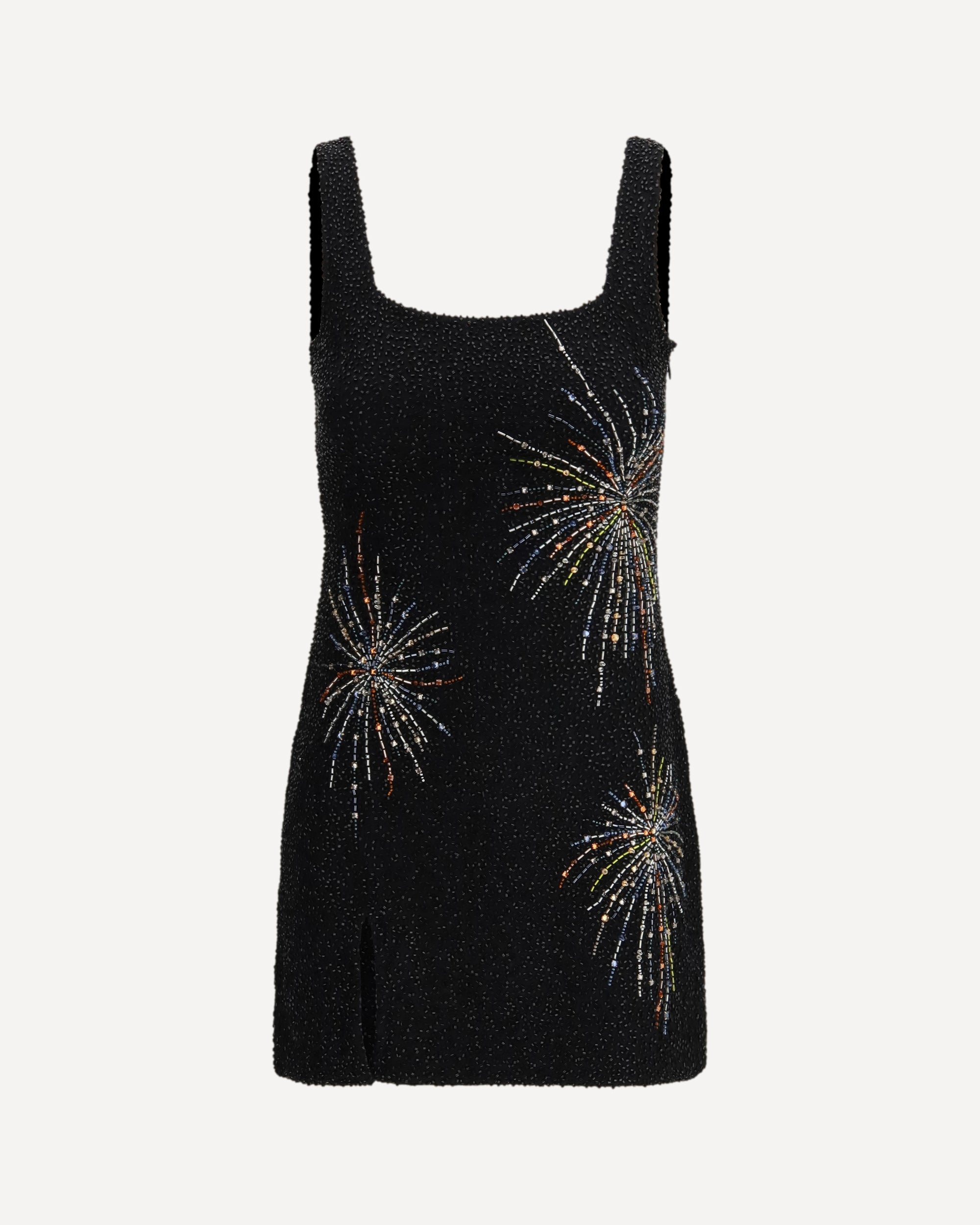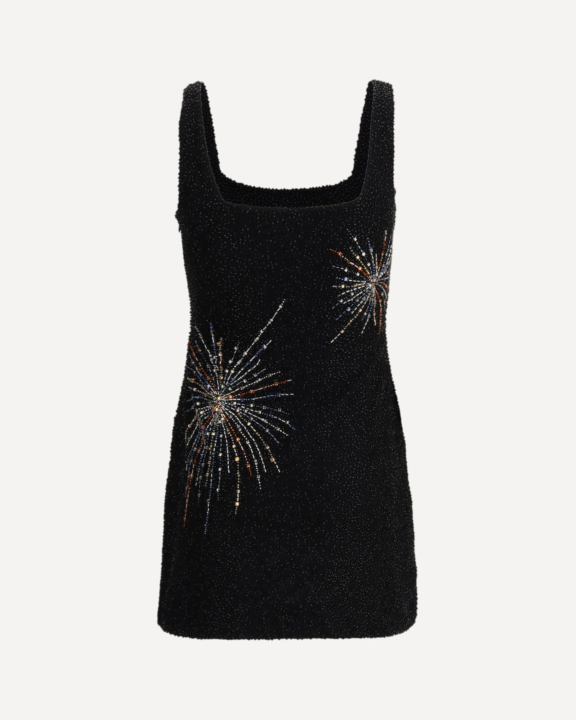 The Sable Dress Firework by Staud reimagines the brand’s signature beaded mini dress with a radiant firework-inspired pattern that brings light and movement to the silhouette. Its subtle stretch ensures a comfortable fit, while the concealed side zipper keeps the profile smooth and refined. A standout dress designed to elevate festive moments with Staud’s signature sparkling elegance.