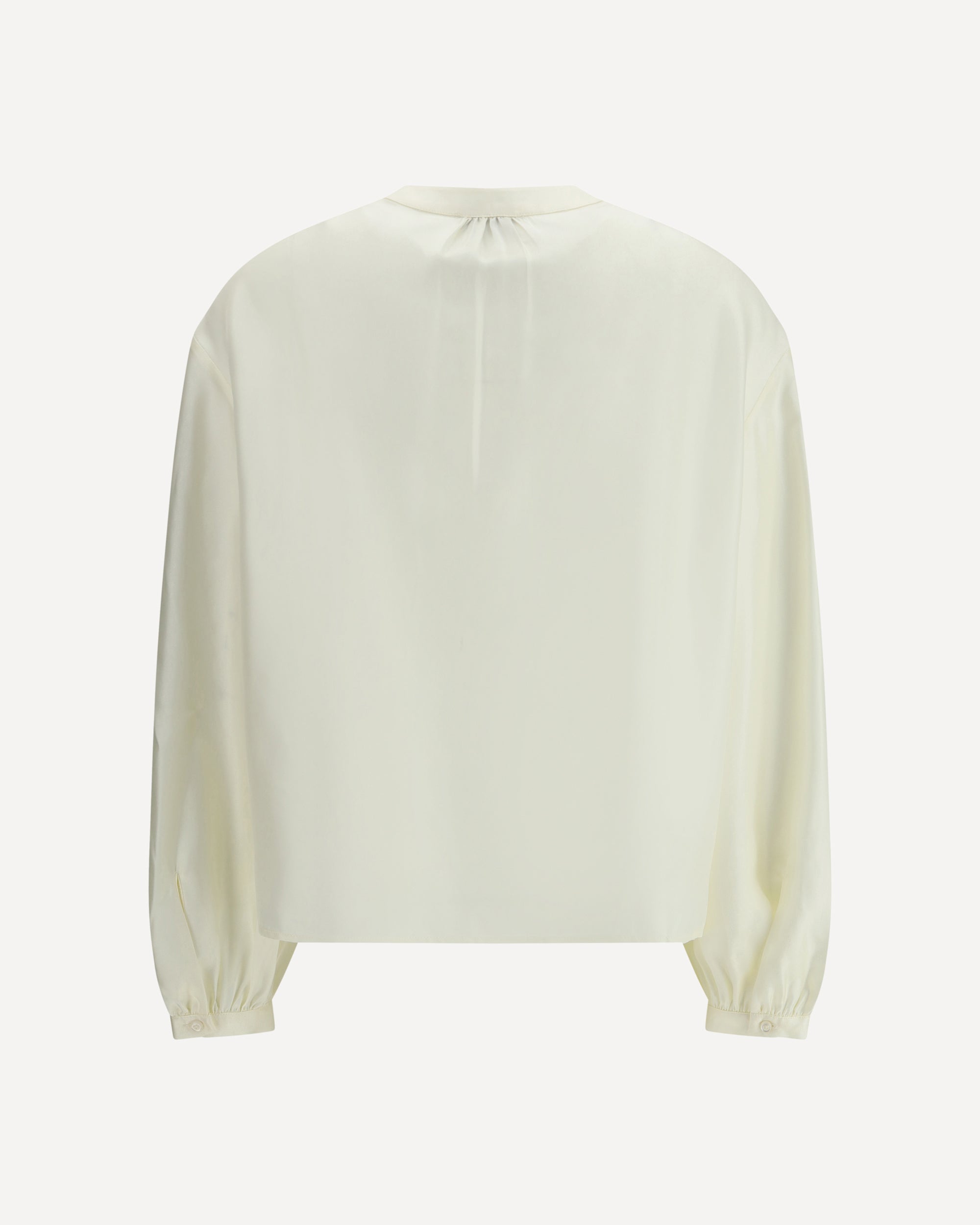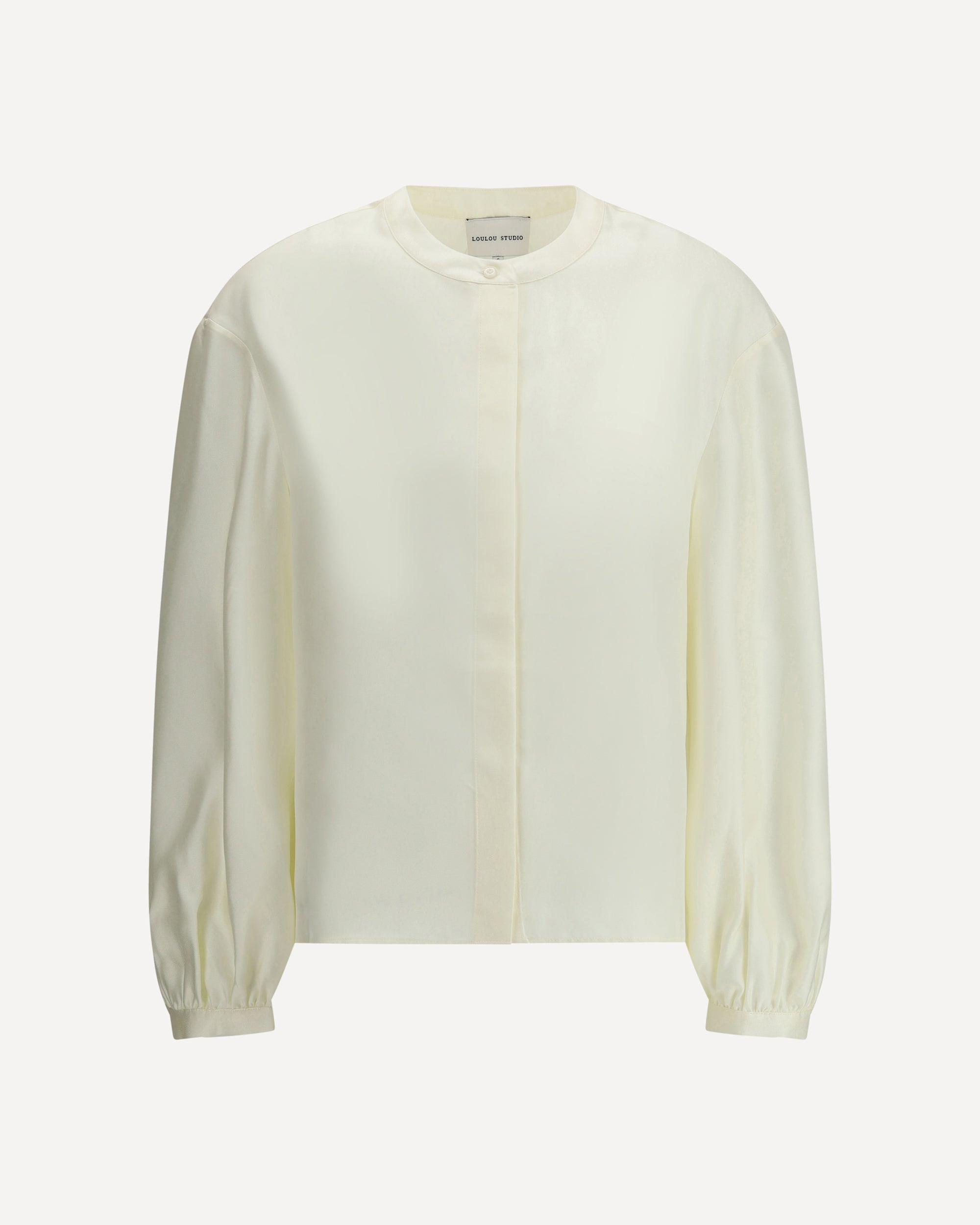 The Lea Satin Shirt by LouLou Studio is an elegant and refined garment. The crew neck collar gives a simple yet sophisticated look, while the front closure with hidden buttons gives a clean, modern finish. The slightly balloon sleeves add a touch of romance and originality, making the design more interesting and feminine. Finally, the satin fabric gives a delicate sheen that accentuates the elegance of the garment.