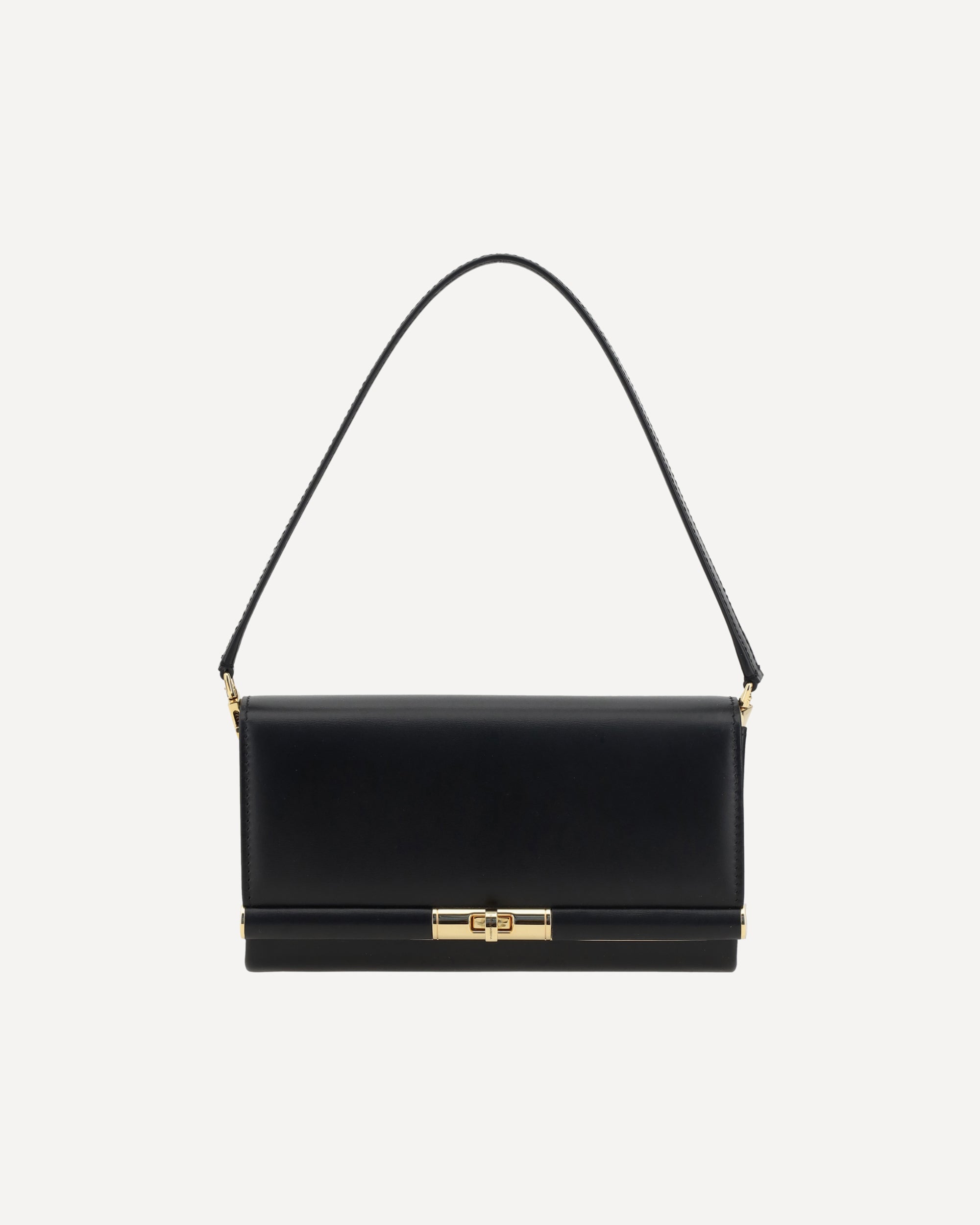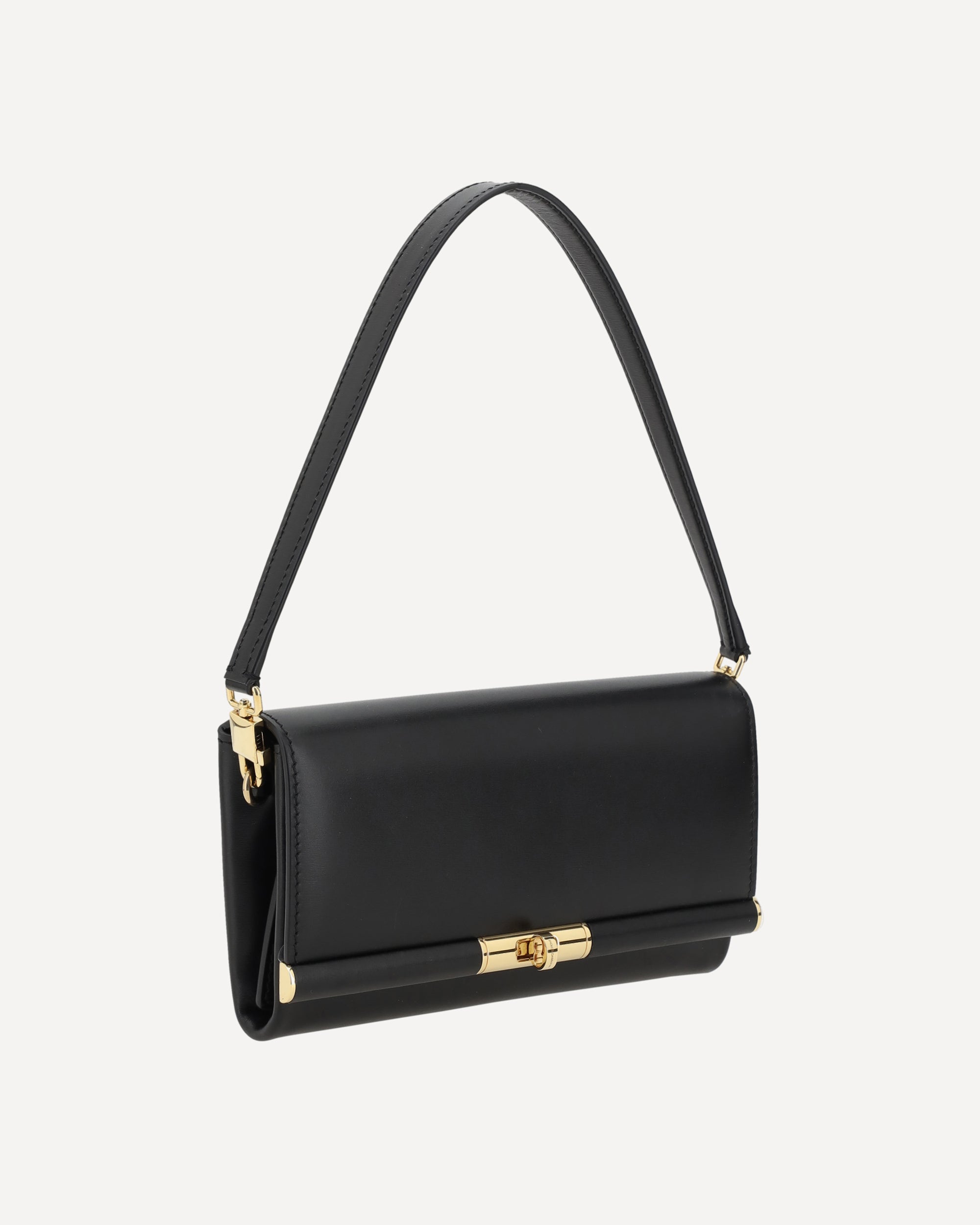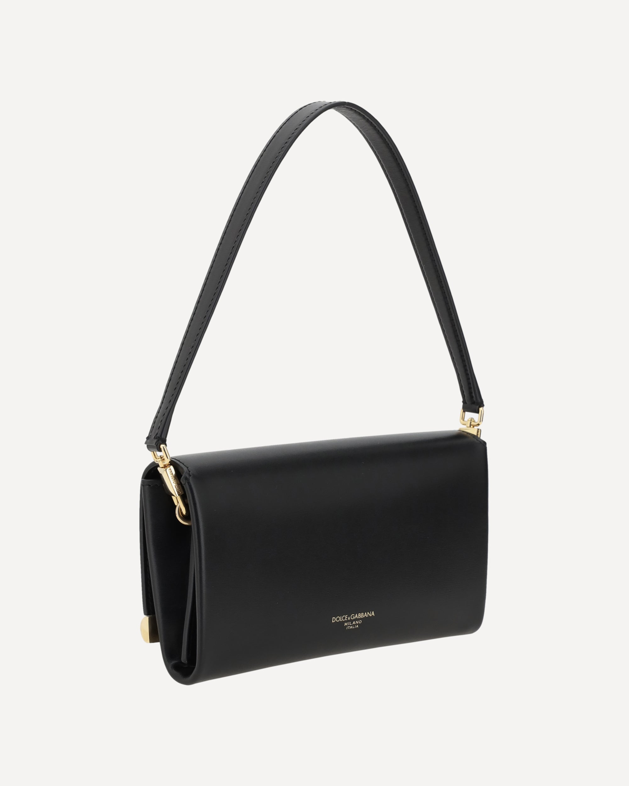 Dolce&Gabbana's leather Shoulder Bag is an elegant and versatile accessory. The removable flat handle offers the option of using it as a carry-on or shoulder bag. The front flap and swivel closure adds a touch of class, while the single interior compartment provides minimalist practicality. The iconic press-stamped monogram on the back makes the design easily recognizable and sophisticated.