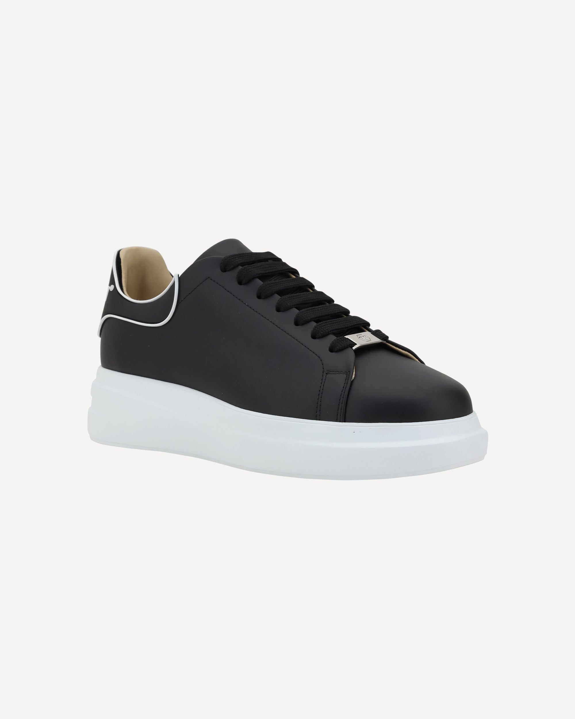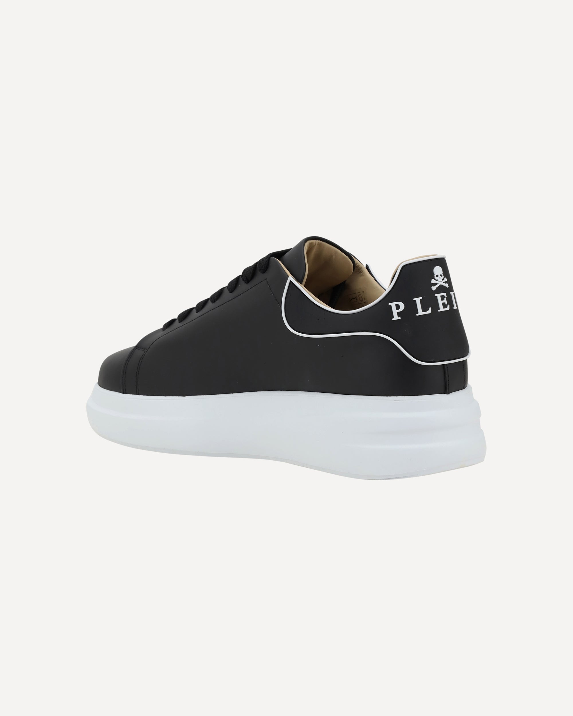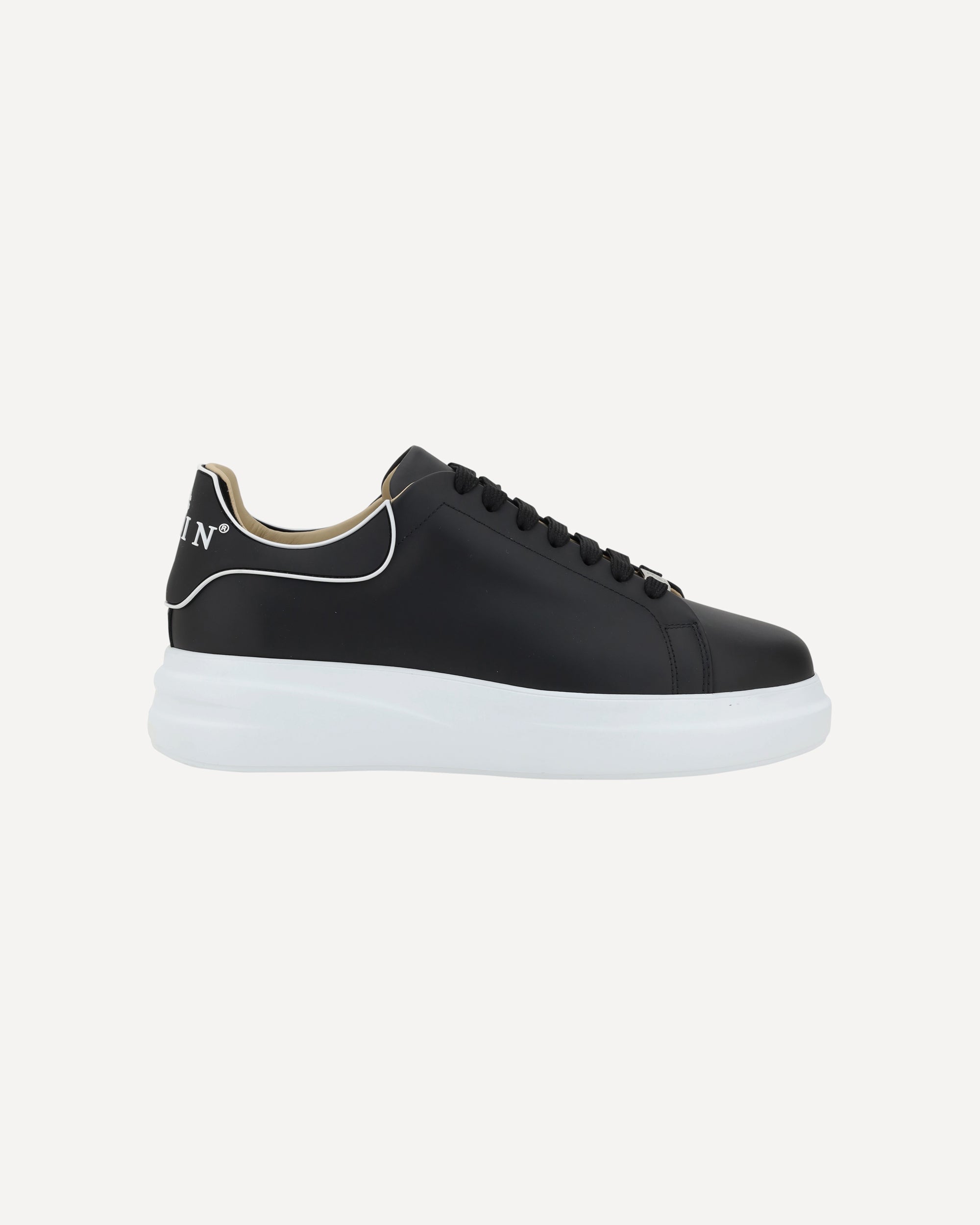 Philipp Plein's leather Sneakers combine elegance and boldness with their distinctive design. The front lace-up closure ensures a secure fit, while the round toe offers comfort and practicality. The iconic contrasting monogram on the heel adds a recognizable brand touch, while the textured sole ensures stability and a modern look. The branded insole completes the design, making these sneakers perfect for those seeking style, comfort and a touch of luxury in everyday wear.