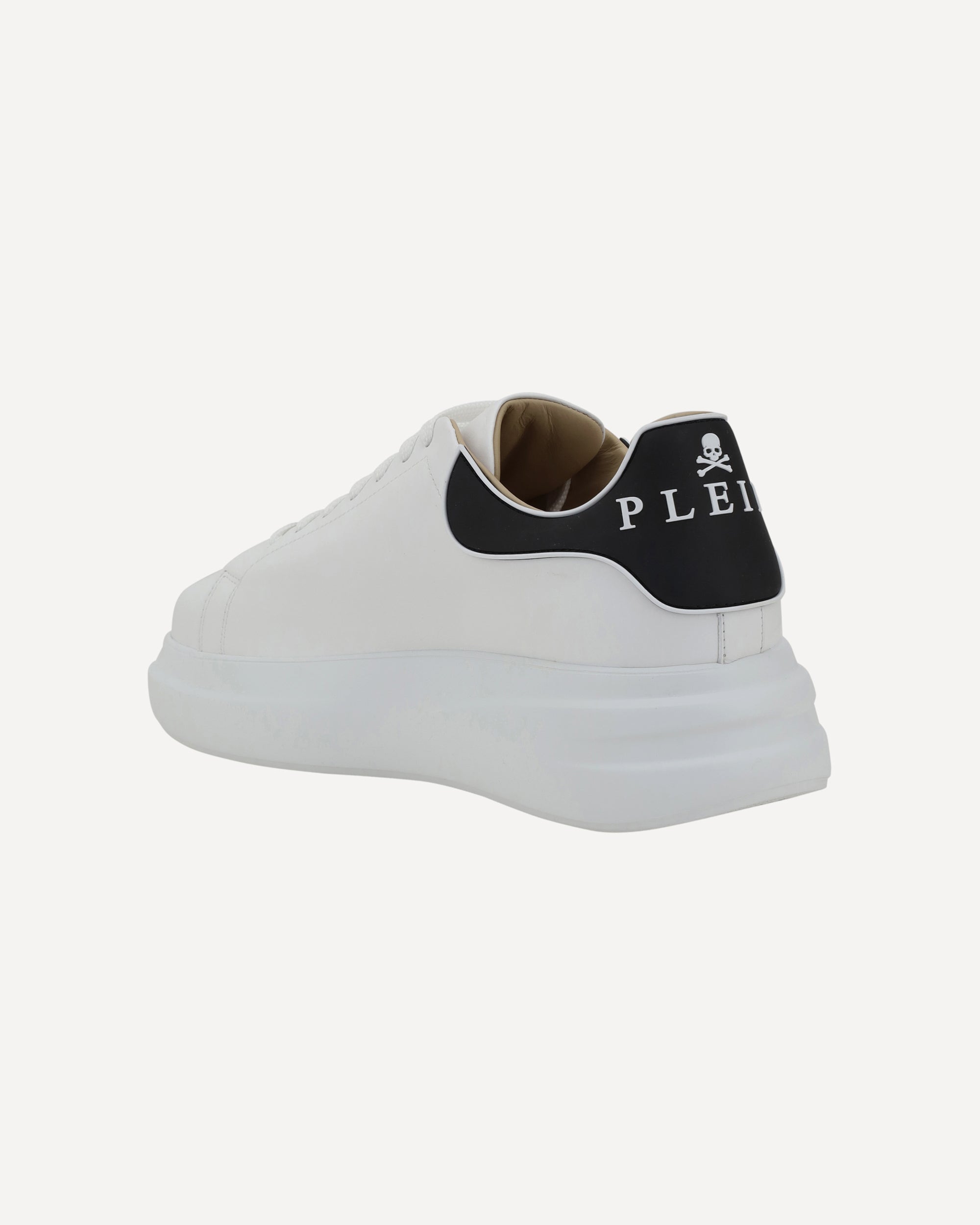 Philipp Plein's leather Sneakers combine elegance and boldness with their distinctive design. The front lace-up closure ensures a secure fit, while the round toe offers comfort and practicality. The iconic contrasting monogram on the heel adds a recognizable brand touch, while the textured sole ensures stability and a modern look. The branded insole completes the design, making these sneakers perfect for those seeking style, comfort and a touch of luxury in everyday wear.