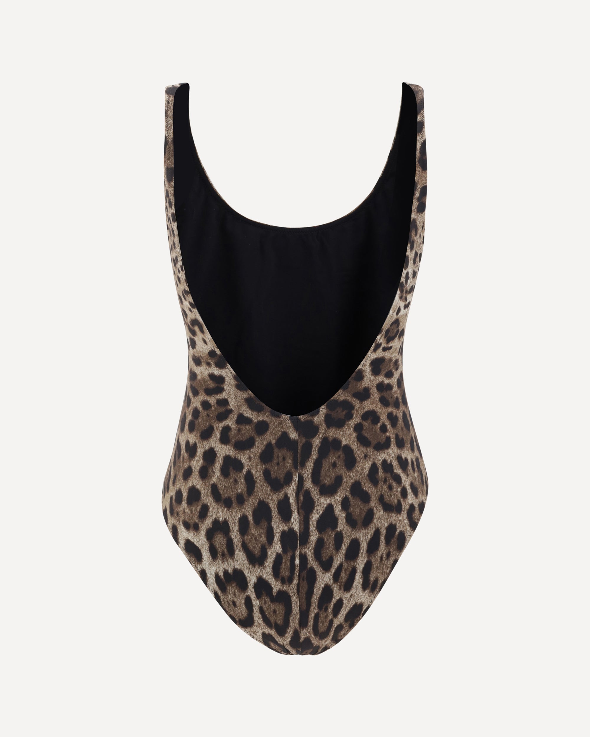 Dolce & Gabbana's Leopard one piece Swimsuit is a bold and sophisticated garment featuring a leopard pattern that immediately catches the eye. The round neckline on the front and back gives an elegant and feminine cut with a silhouette-enhancing design. An additional distinctive detail is the gold plaque on the front with the iconic Dolce & Gabbana logo, adding a luxurious touch to the look.