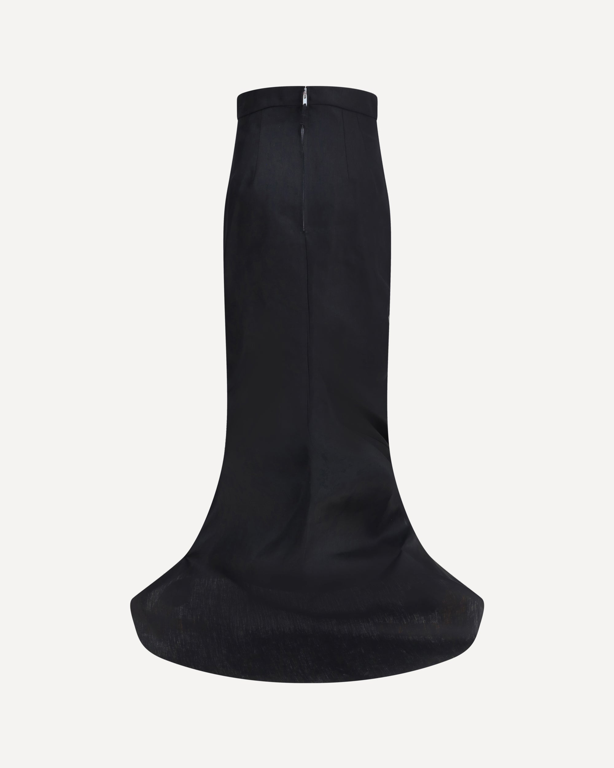 Rick Owens' Lido Long Skirt is a sharply styled, minimalist piece that enhances the silhouette with an essential pencil design. Featuring two side welt pockets and a back zipper closure, it is distinguished by an asymmetrical raw-cut hem and back slit, elements that add movement and a distinctive touch to the brand's bold aesthetic.