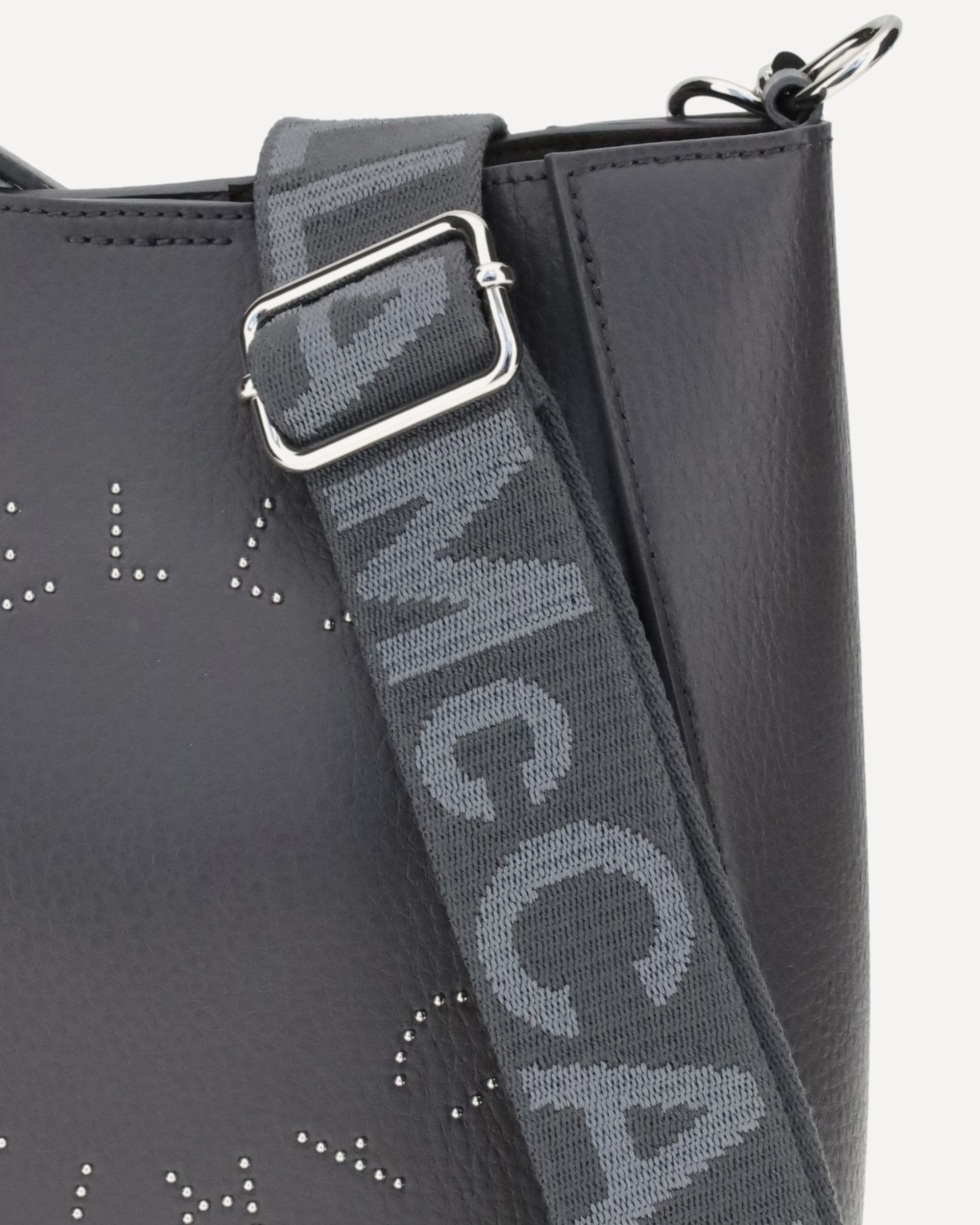 Stella McCartney's Shoulder Bag is a sustainable and distinctive accessory that reflects the brand's commitment to responsible elegance. Made from innovative materials, it features stainless steel and recycled brass details, while the Stella McCartney logo studded on the front adds a gritty touch. Contrasting single topstitching enhances the essential silhouette, complemented by a logo canvas shoulder strap made of GRS-certified post-consumer recycled polyester. Inside, an envelope pocket provides space for essentials, while a magnetic snap closure ensures practicality and security. A contemporary, self-conscious pattern perfect for everyday wear.