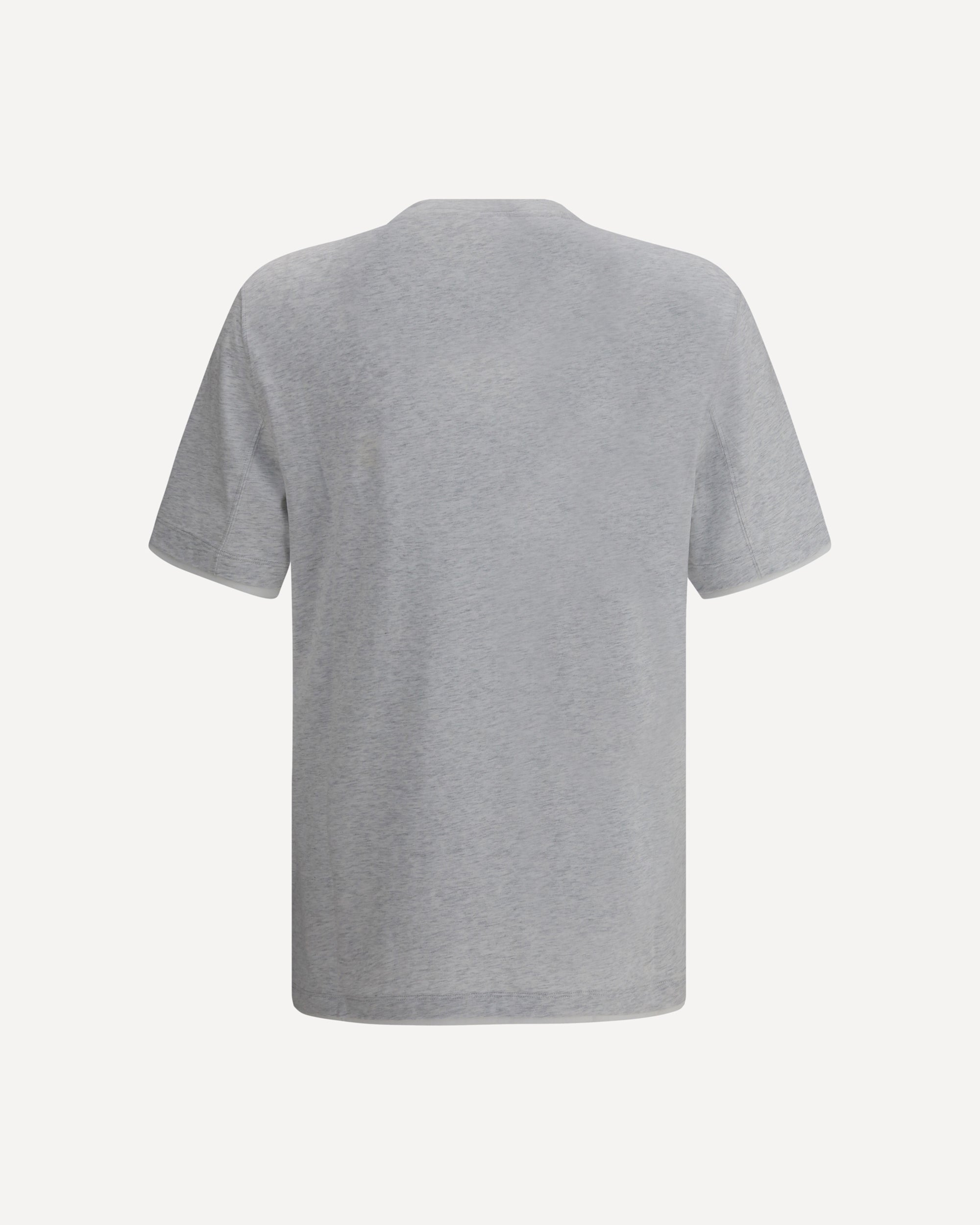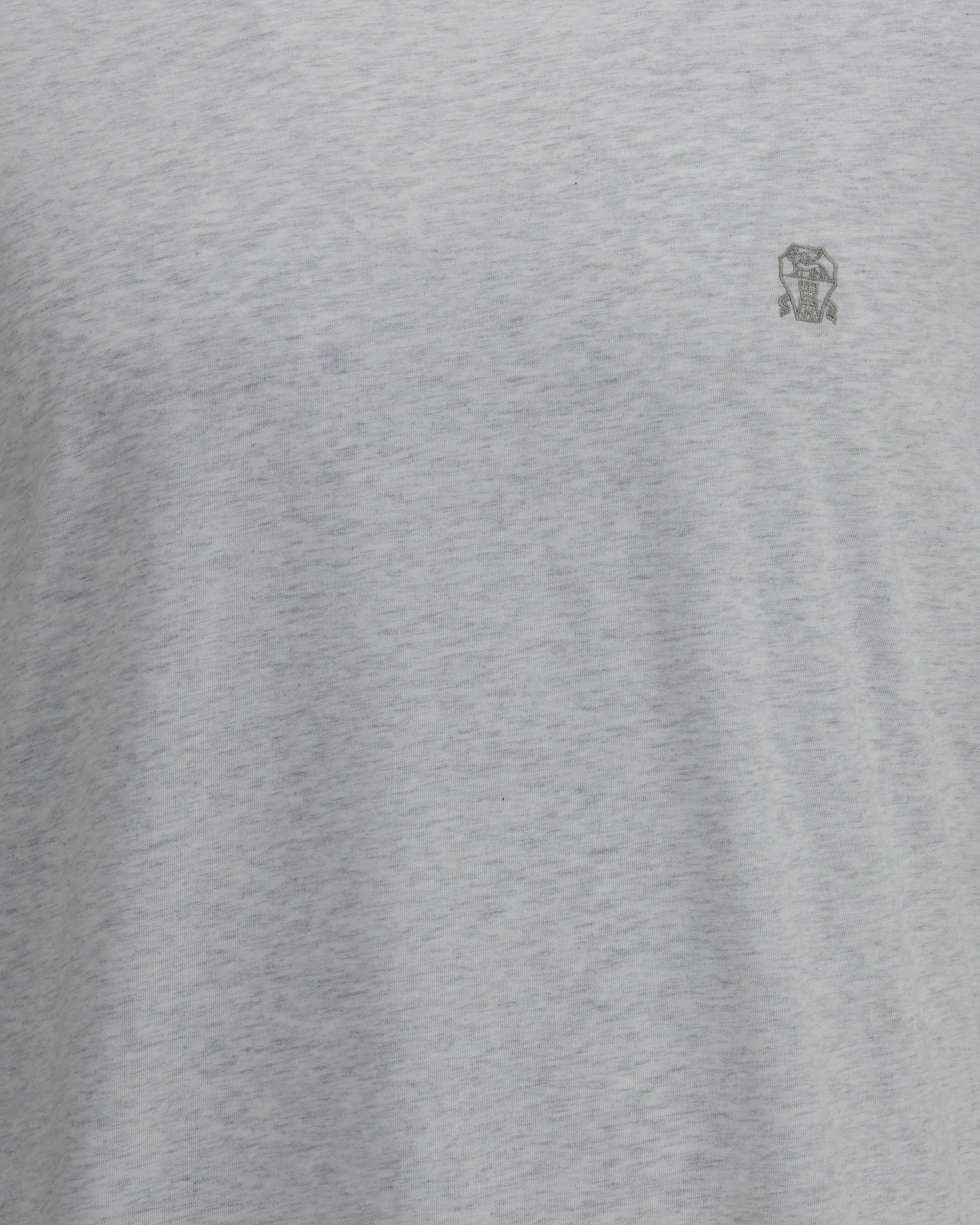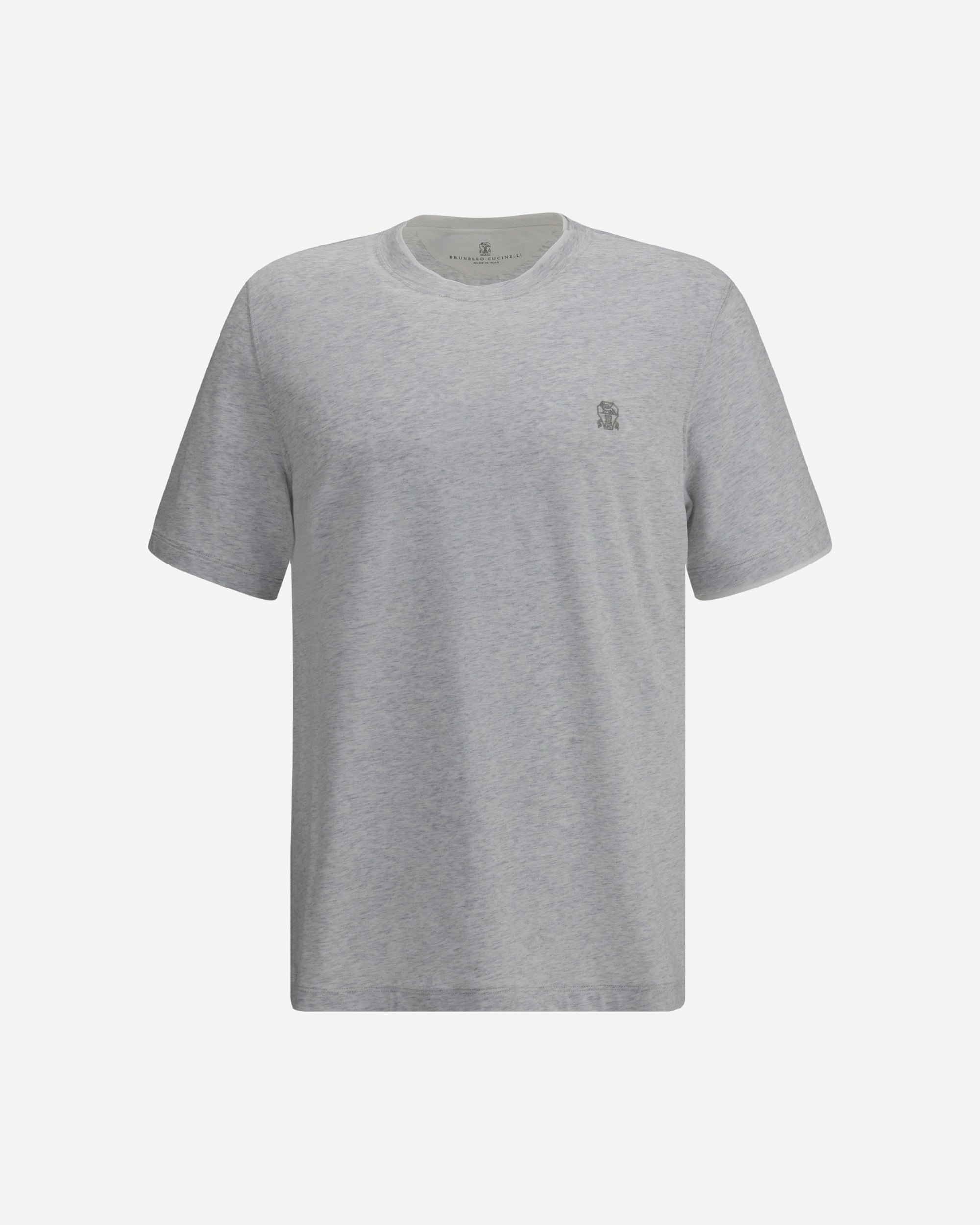 Brunello Cucinelli's cotton T-shirt combines comfort with refined details. The soft cotton fabric is enhanced by the presence of the iconic embroidered logo on the front, discreet yet recognizable. The design is distinguished by double-layered details on the crew neck, hem and sleeves, which add structure and a contemporary touch to the garment.