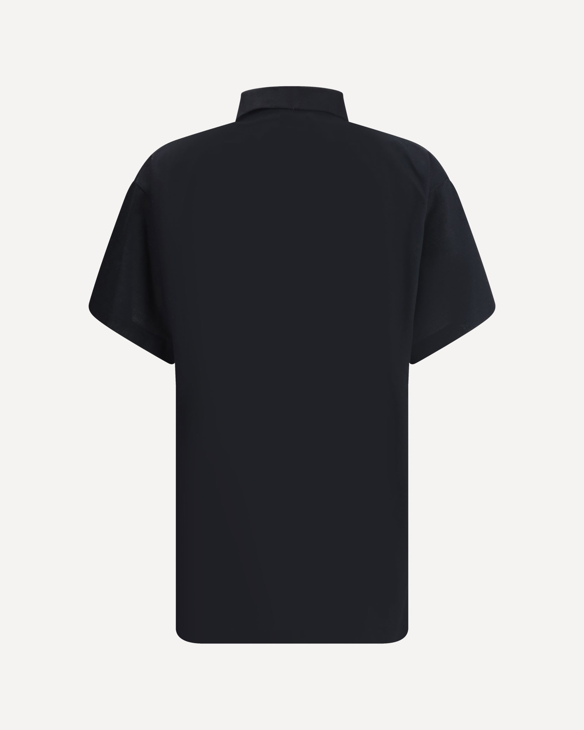 Balenciaga's Polo Shirt features a classic ribbed collar and a three-button front closure, enhancing its elegant and traditional design. The brand's iconic logo is stitched on the front, tone on tone, for an understated and refined effect. This garment combines the versatility of a polo shirt with the brand's distinctive style, perfect for casual yet sophisticated looks.