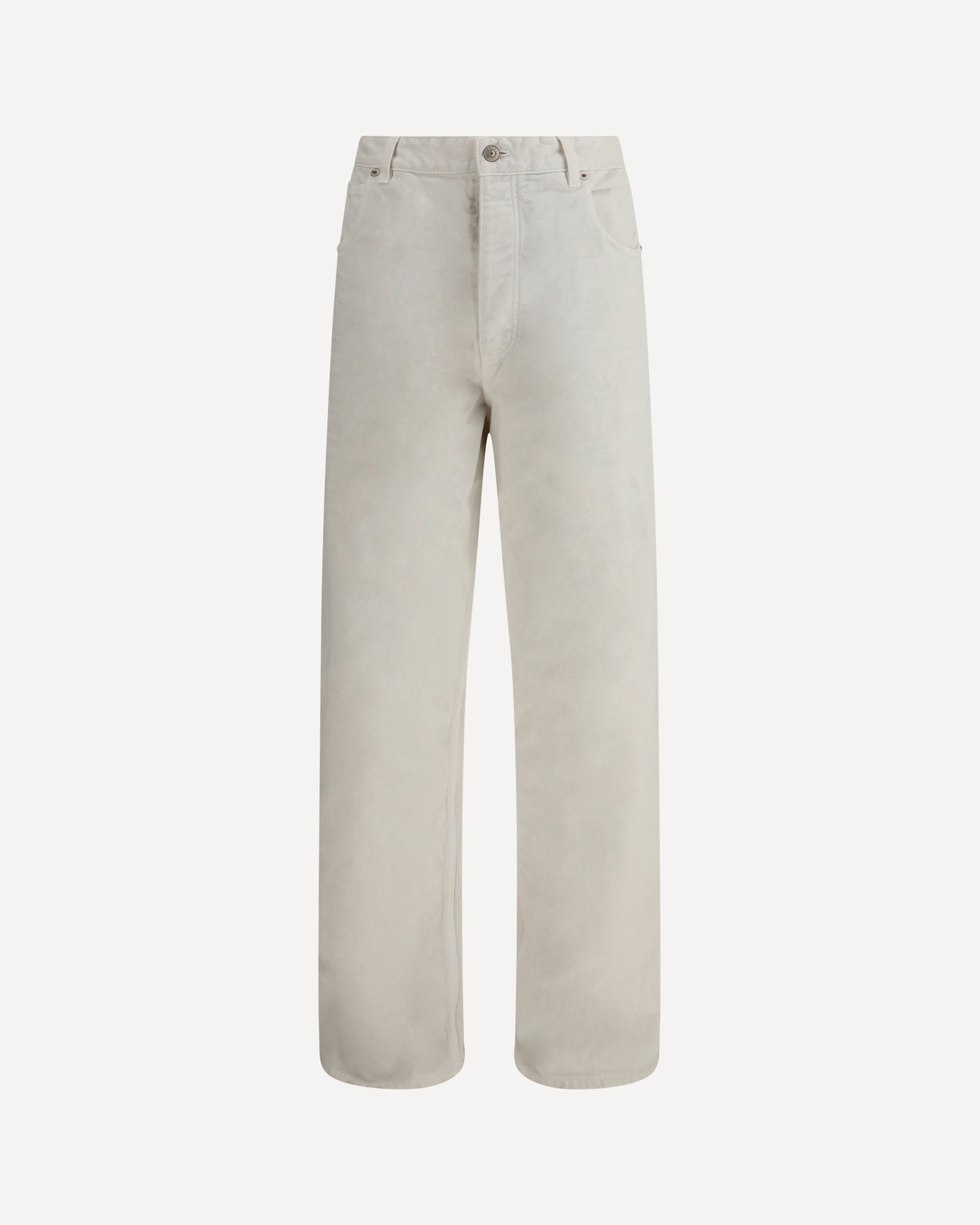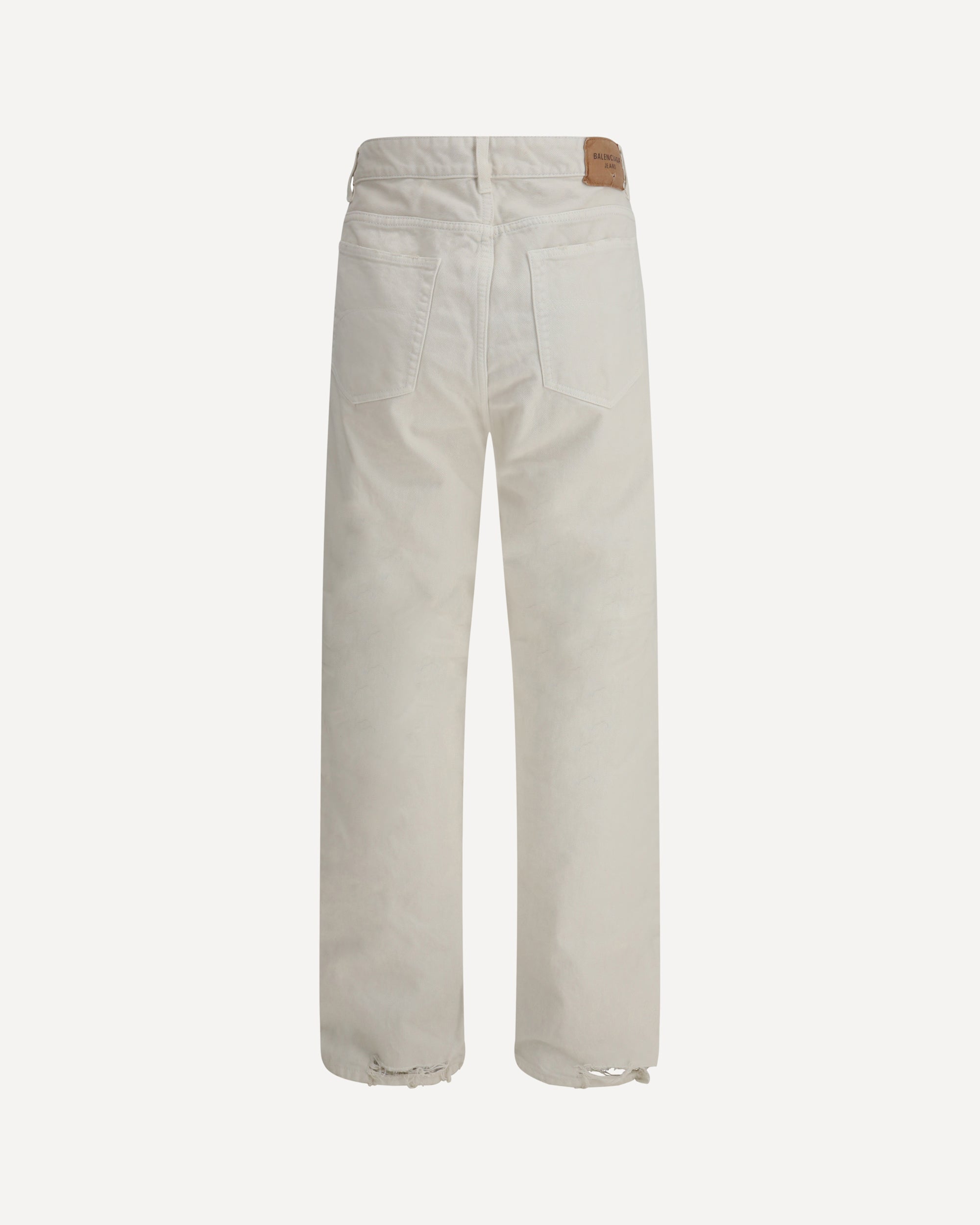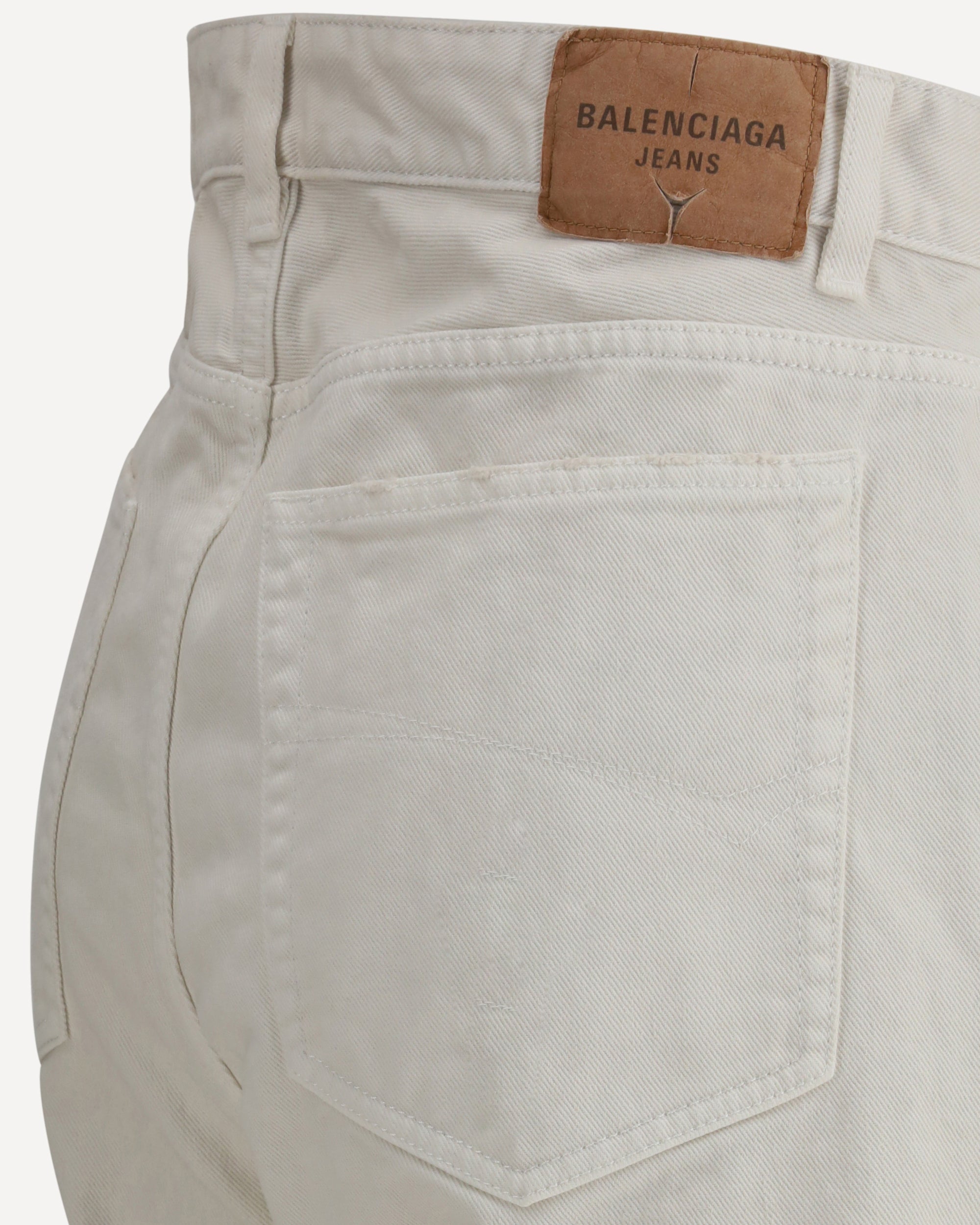 Balenciaga's loose-fit jeans offer a casual, contemporary look. With five pockets, front button and zipper closure, and belt loops, these jeans are functional and versatile. The worn worn effect lends a distinctive character to the garment, adding a touch of authenticity and style. Perfect for an urban outfit, these jeans are ideal for those seeking comfort without sacrificing a high-fashion aesthetic.