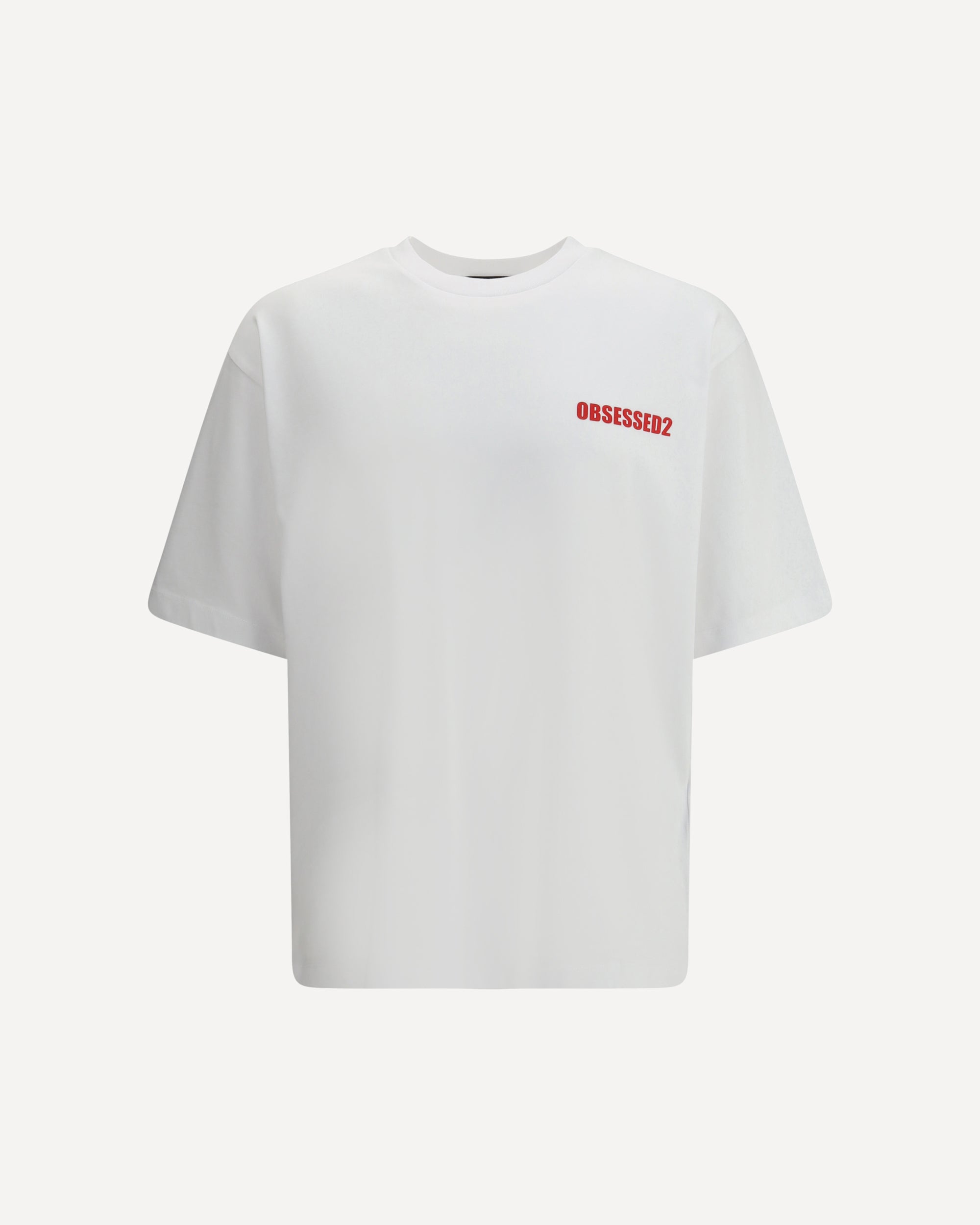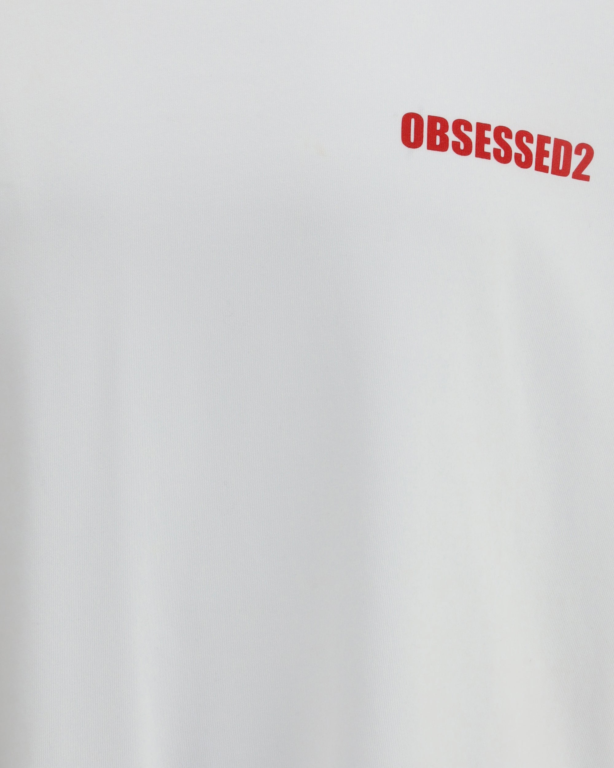 Dsquared2's T-Shirt is a casual piece with a strong character, made from cotton and finished with a classic ribbed crew neck. The contrasting Obsessed2 print stands out on the front and the iconic signature on the back adds a graphic and distinctive touch to the essential design.