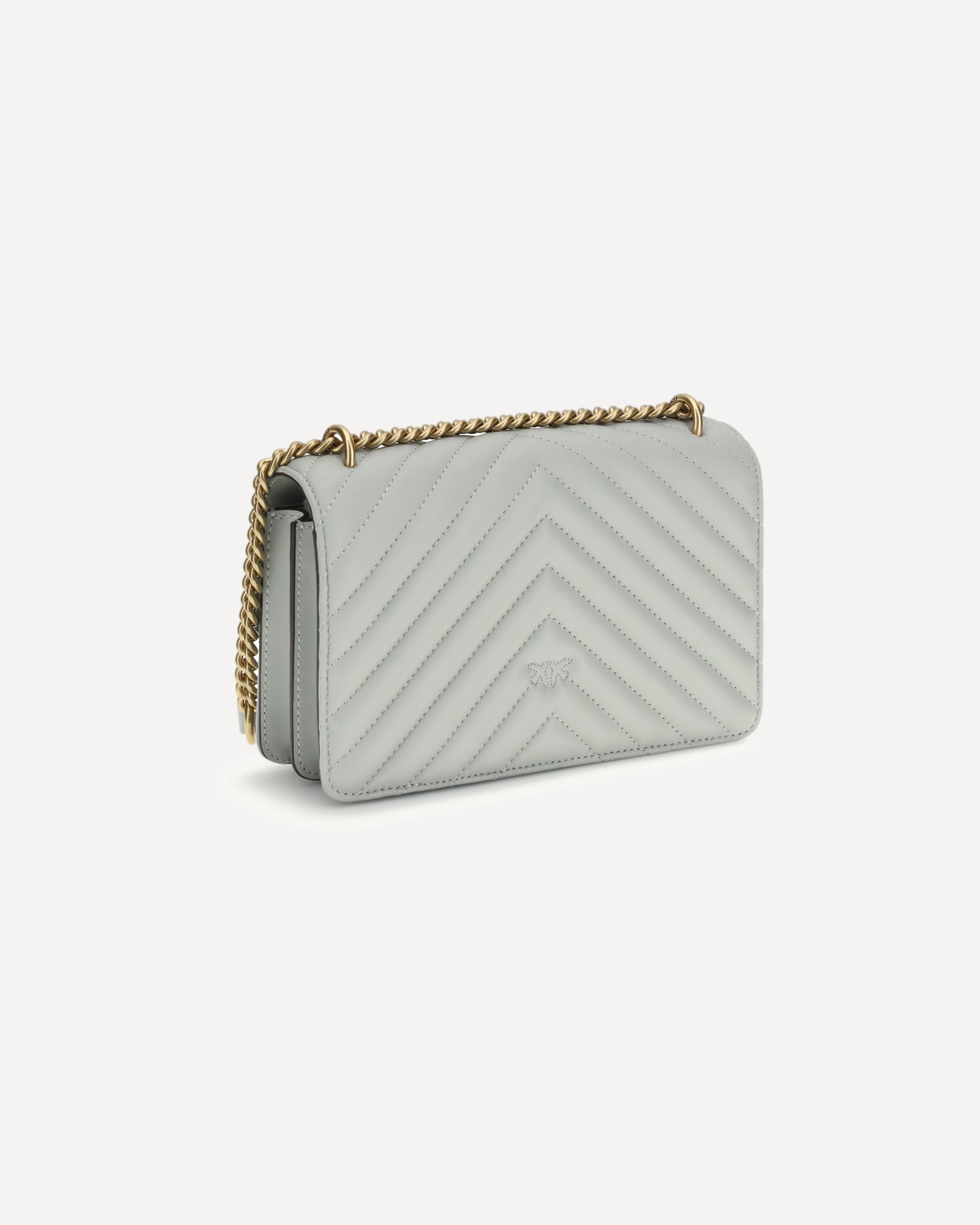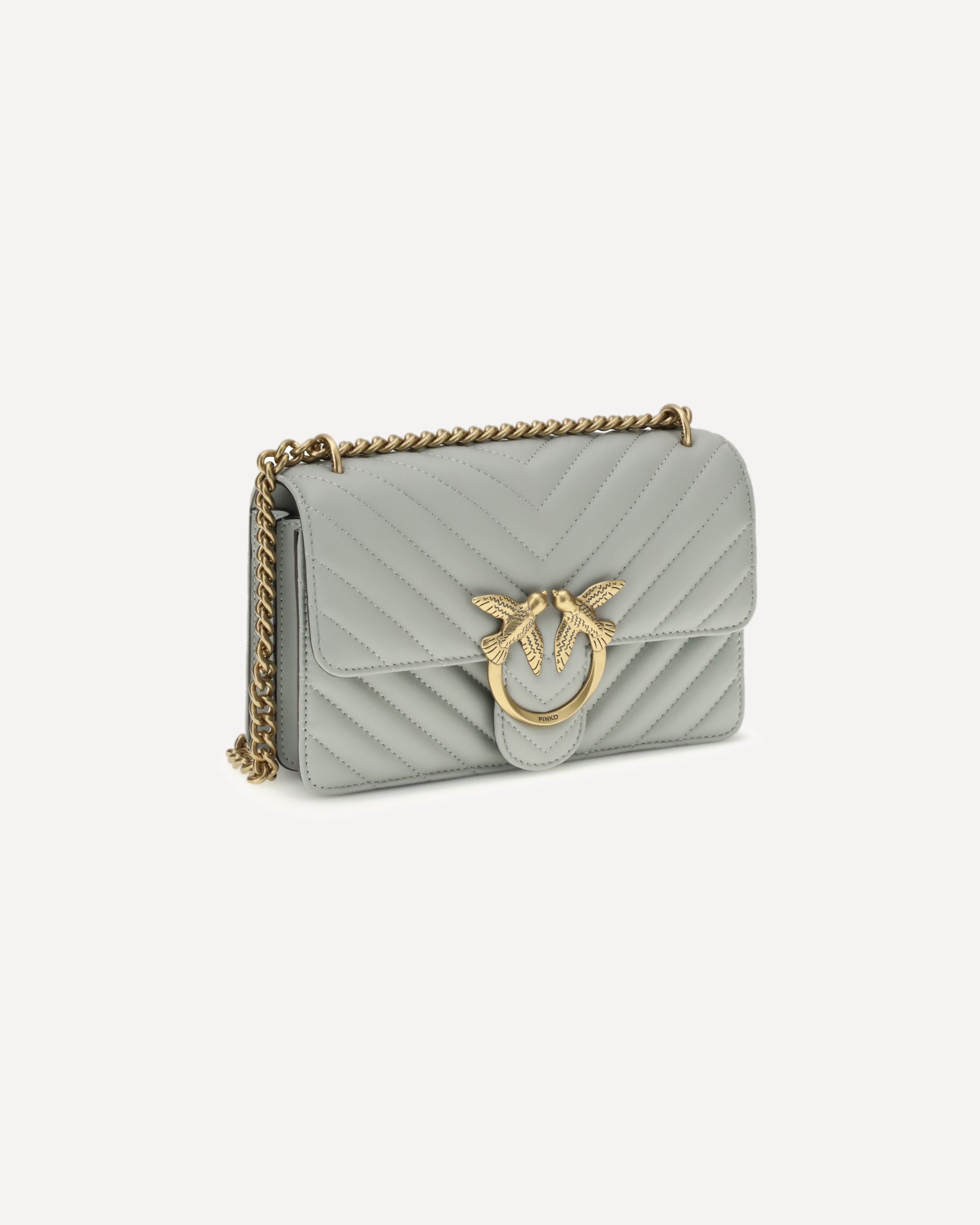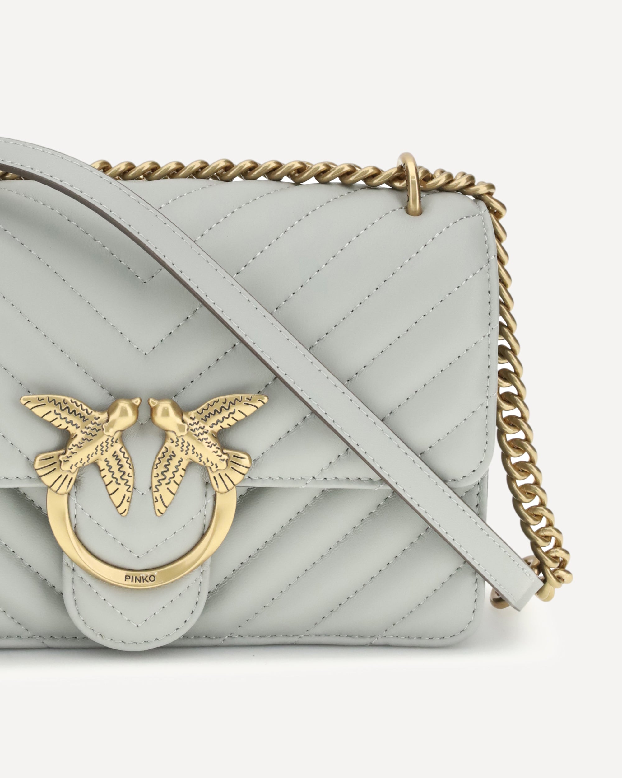 The Mini Love leather Shoulder Bag by Pinko is a perfect mix of elegance and functionality. The front closure with magnetic flap ensures safety and practicality, while the iconic gold-plated Love Birds logo embossed on the front adds a touch of distinctive luxury. The quilted and padded design is not only refined, but also gives a feeling of softness and comfort. The double internal compartment offers enough space to keep everything in order, while the sliding chain shoulder strap allows you to adjust it to your preferred height, making it perfect for any occasion. The internal slip pocket and the tone-on-tone embroidered brand monogram on the back add exclusive details that make this bag a must-have.