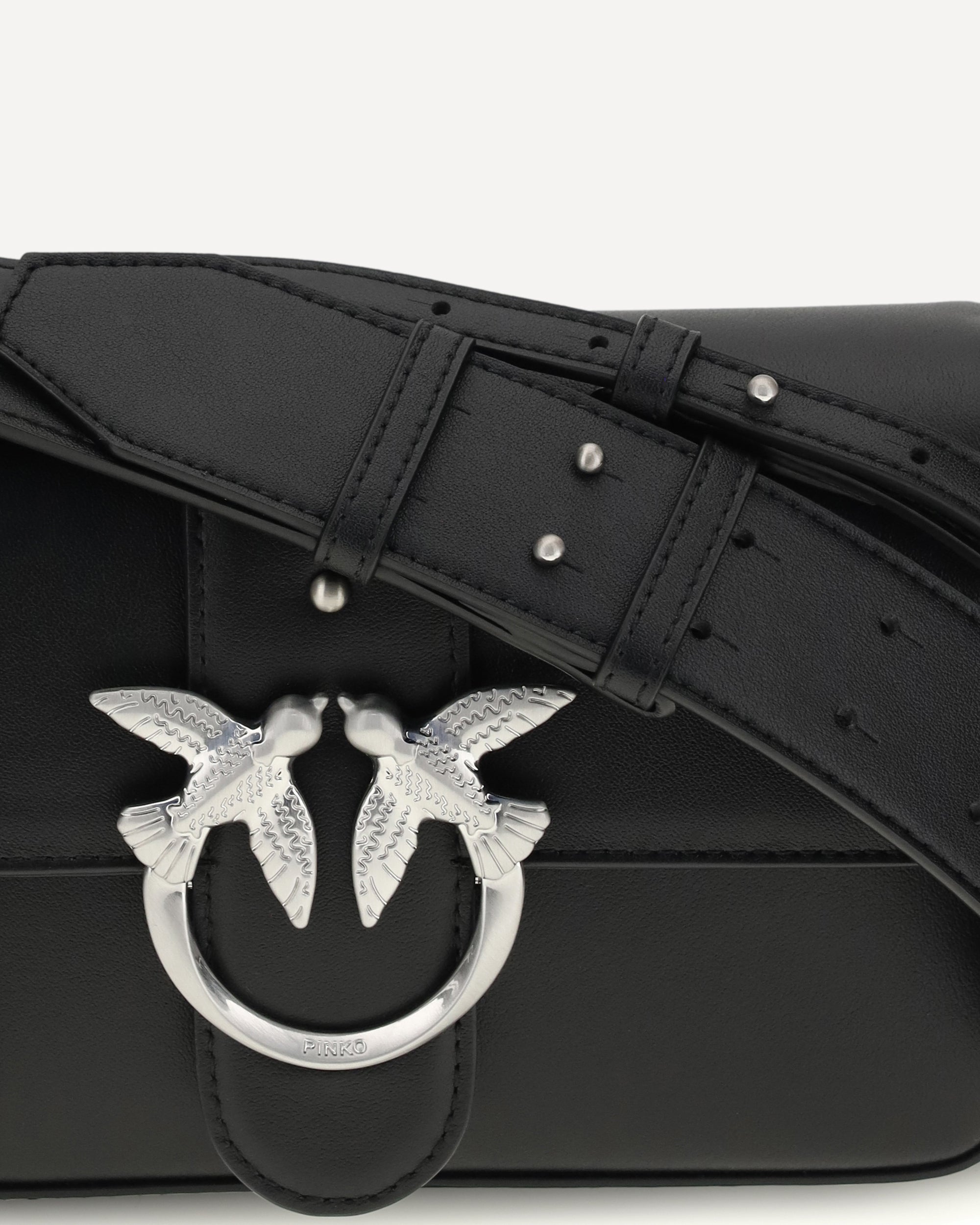 The Mini Love Shoulder Bag by Pinko is an iconic and versatile accessory featuring an adjustable leather shoulder strap with buckle and a chain strap with leather shoulder strap to suit different style needs. The flap closure is embellished with the pod and buckle featuring the iconic Love Birds Diamond Cut logo in antique gold plated metal, giving it a distinctive and elegant touch.