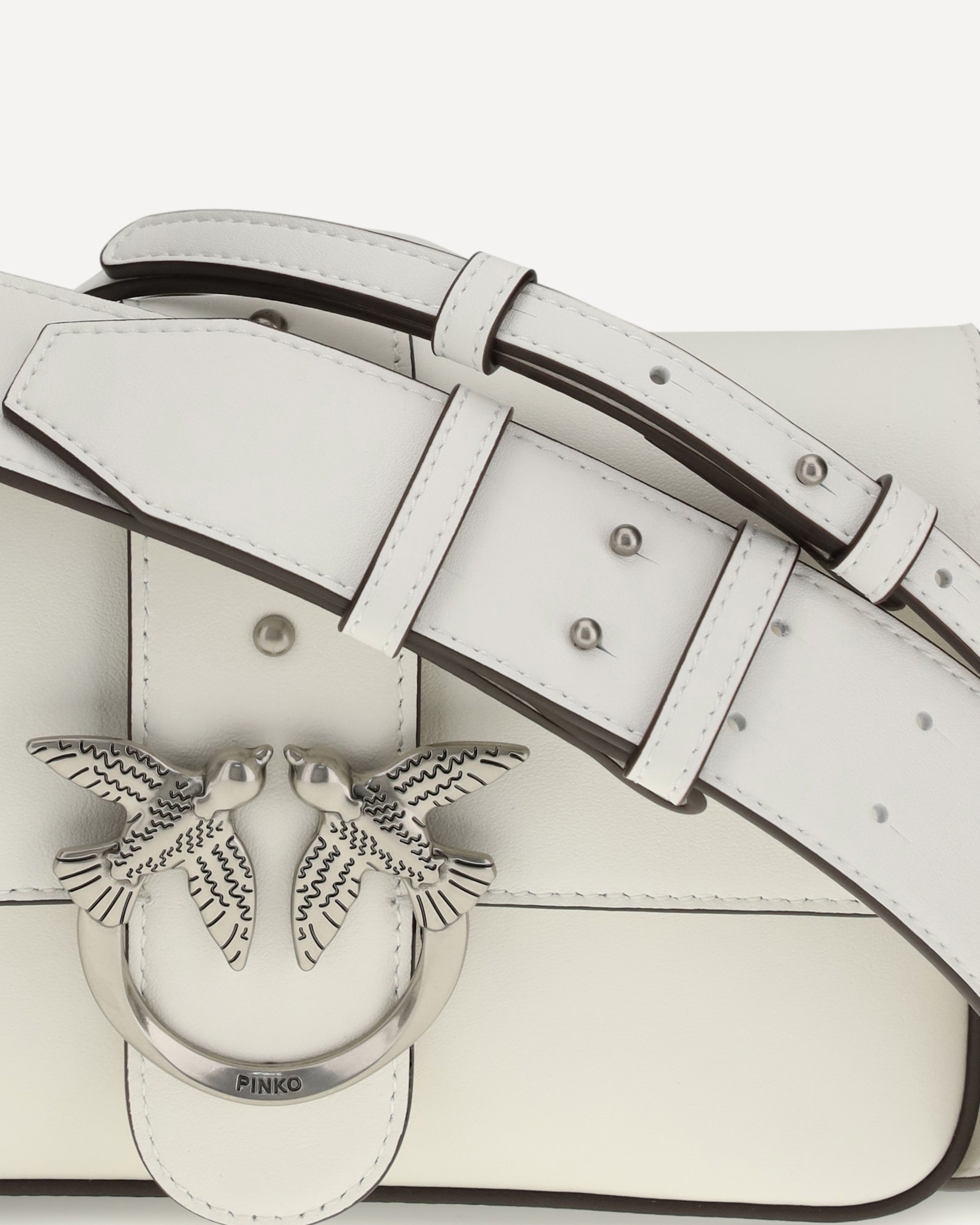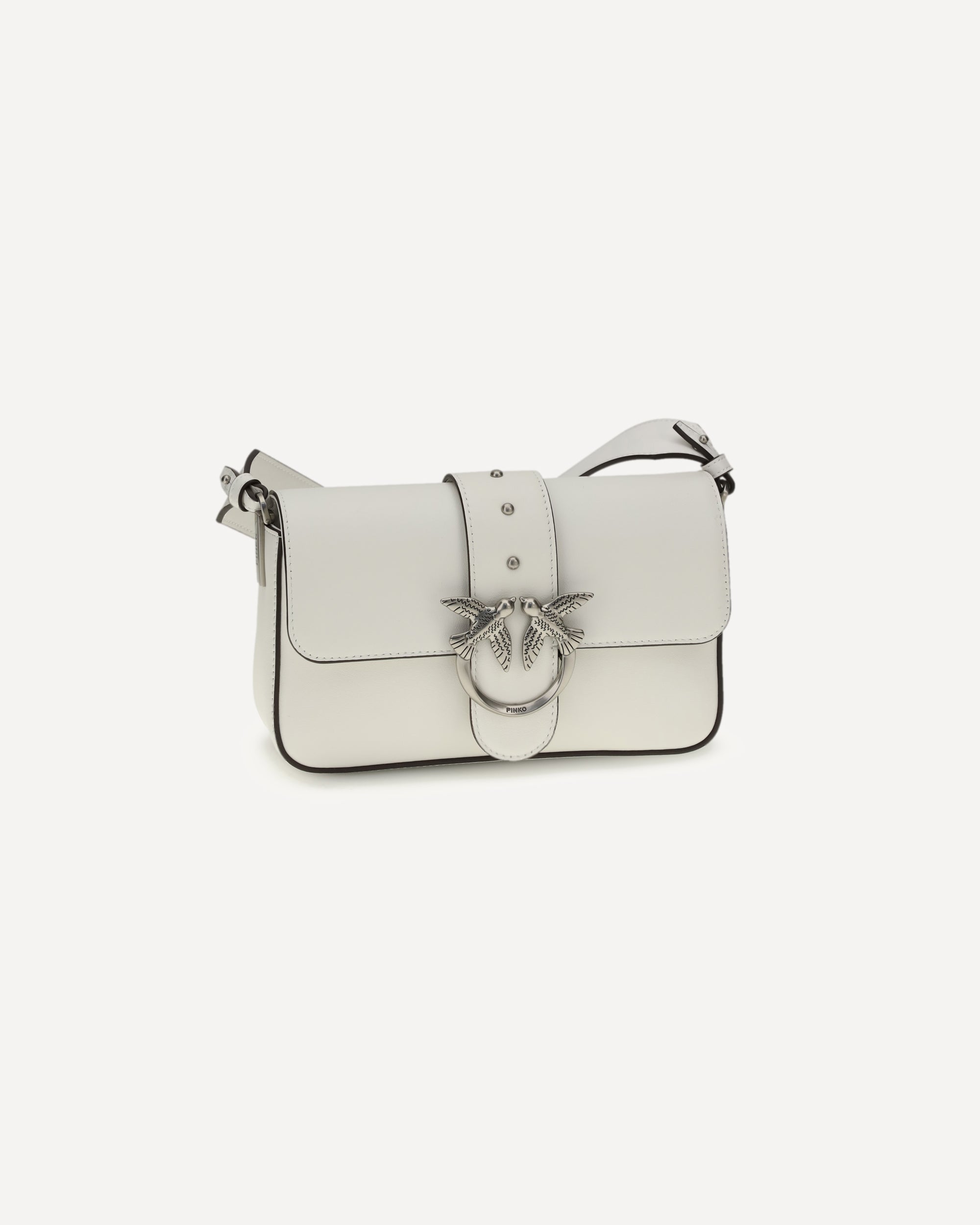 The Mini Love Shoulder Bag by Pinko is an iconic and versatile accessory featuring an adjustable leather shoulder strap with buckle and a chain strap with leather shoulder strap to suit different style needs. The flap closure is embellished with the pod and buckle featuring the iconic Love Birds Diamond Cut logo in antique gold plated metal, giving it a distinctive and elegant touch.