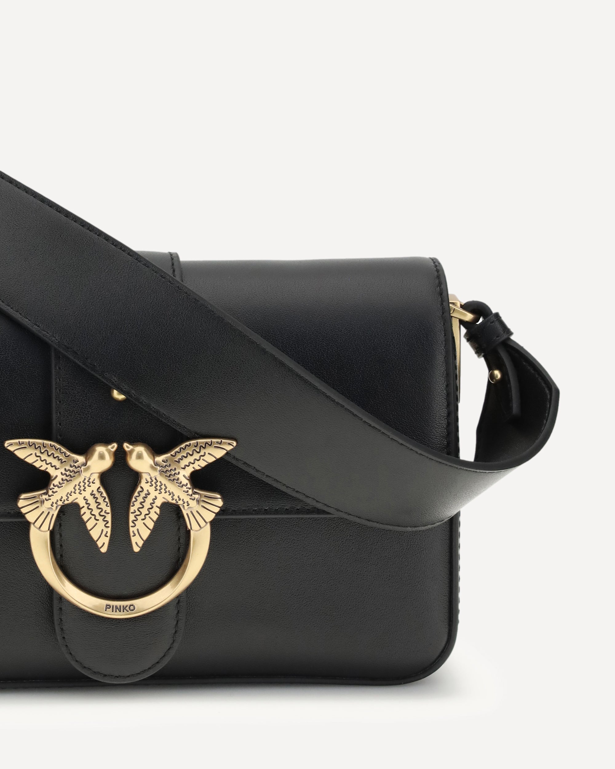 The Mini Love Shoulder Bag by Pinko is an iconic and versatile accessory featuring an adjustable leather shoulder strap with buckle and a chain strap with leather shoulder strap to suit different style needs. The flap closure is embellished with the pod and buckle featuring the iconic Love Birds Diamond Cut logo in antique gold plated metal, giving it a distinctive and elegant touch.